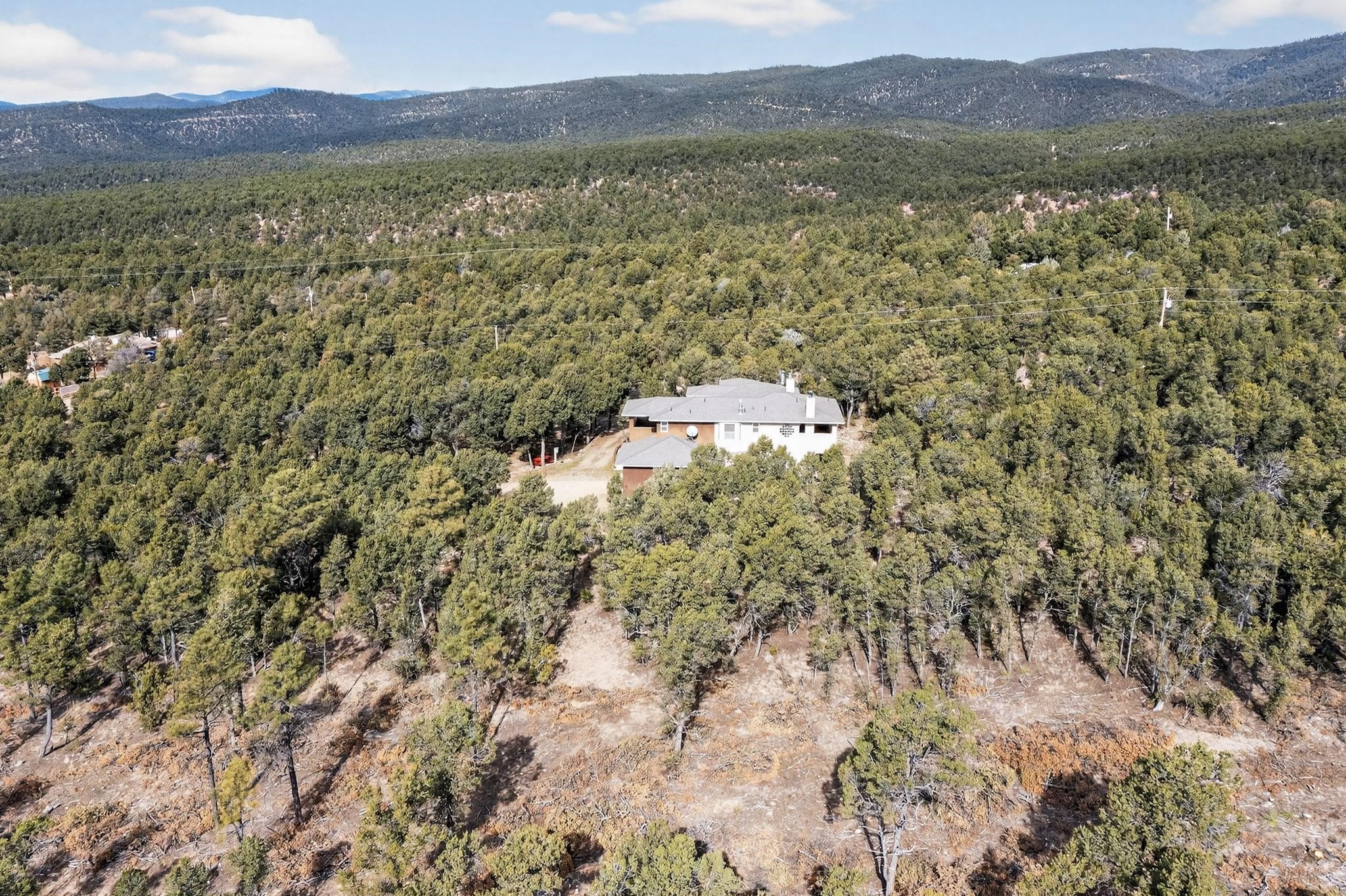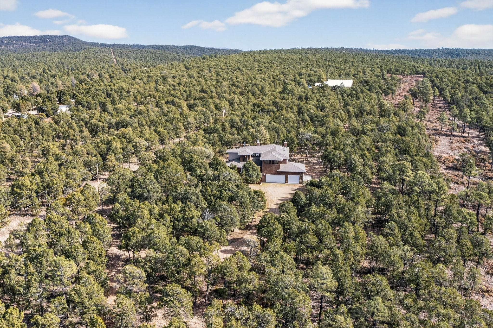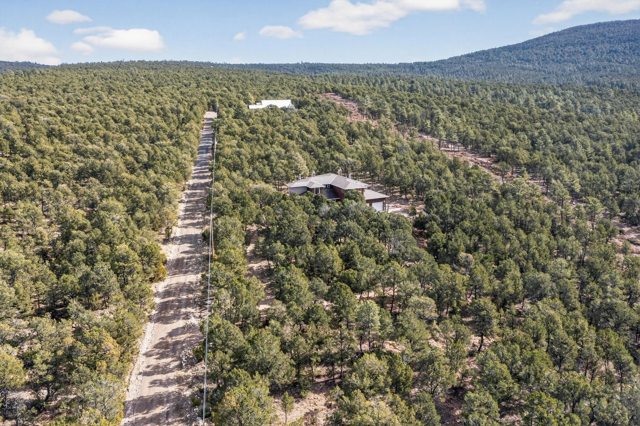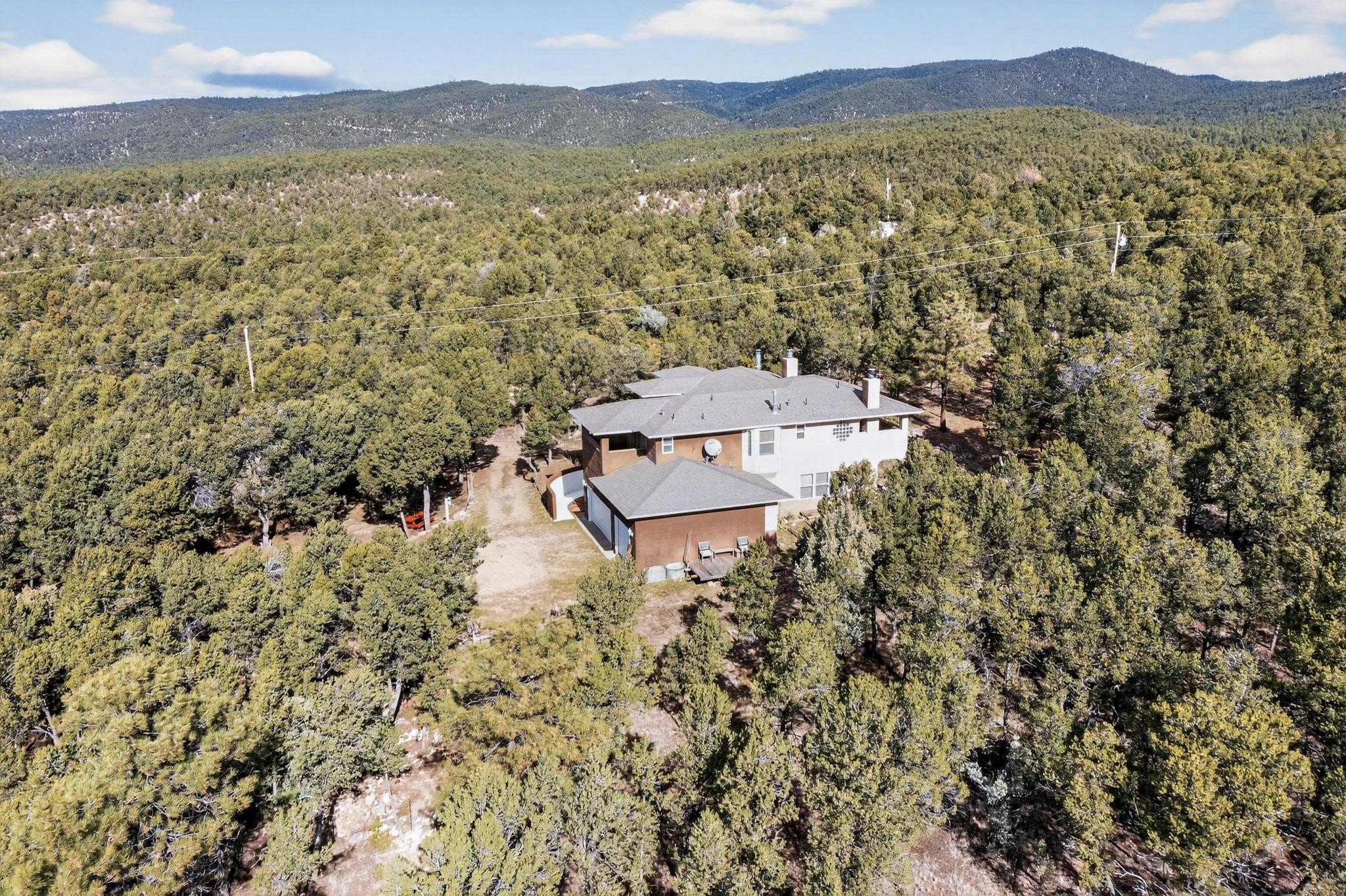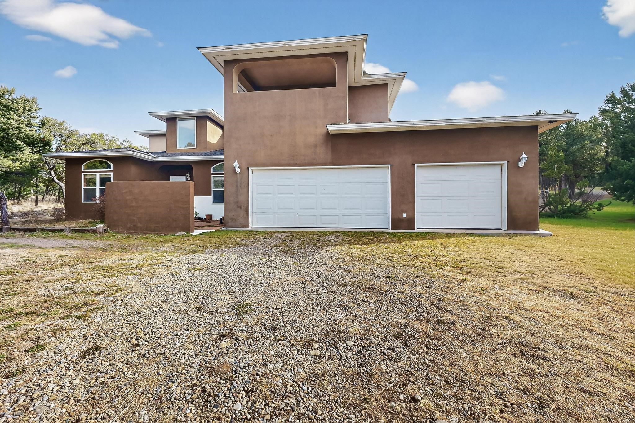 Custom 2-story home sited on 2.32 +/- fully fenced acres. The expansive floorplan includes great room with wood burning stove and tall ceilings, Chef's kitchen with breakfast nook, family room with Kiva fireplace, bonus room, 2 full baths and 3/4 bath, laundry room and oversize and finished 3 car garage. All 3 bedrooms are up stairs, primary has wood burning fireplace and view balcony, 2nd bedroom has a second view deck facing to the north with views to the Santa Fe National Forest, 2nd and 3rd bedrooms share "jack n jill" bathroom. The home boosts extensive closets, all appliances included - refrigerator, stove/oven, washer, dryer, dishwasher, French doors to back patio, 2 fireplaces and 1 wood stove, granite kitchen counters. The 2.32 +/- acres includes a circle driveway, are nicely maintained with Juniper, Pinon and a large Ponderosa Pine tree, block retaining wall, private well with 3 acre feet of domestic water rights, buried and owned propane tank, and picnic area with a picnic table. Located just beyond the Village of Pecos the property at 16 Coyote Lane has much to offer buyers.