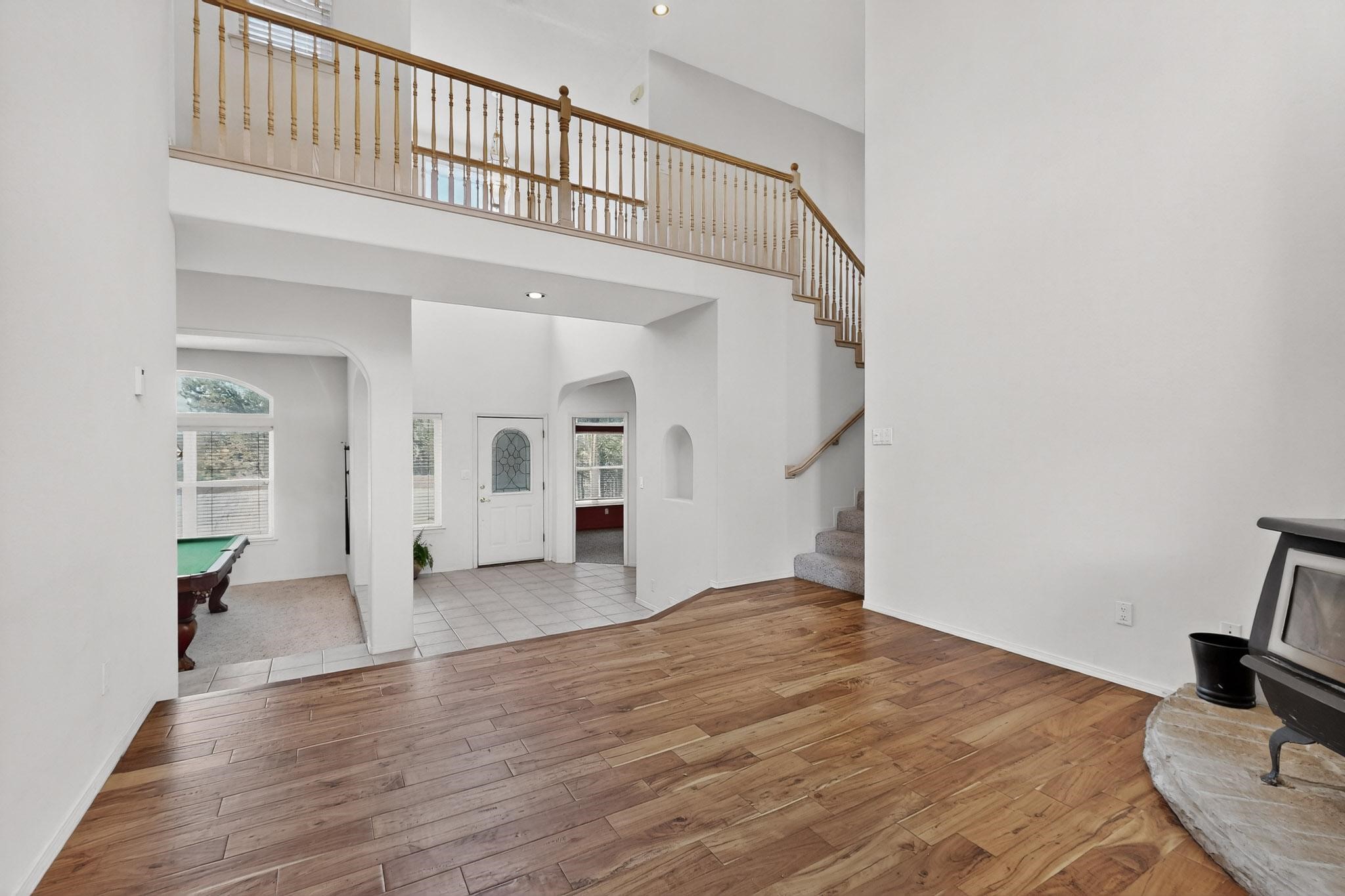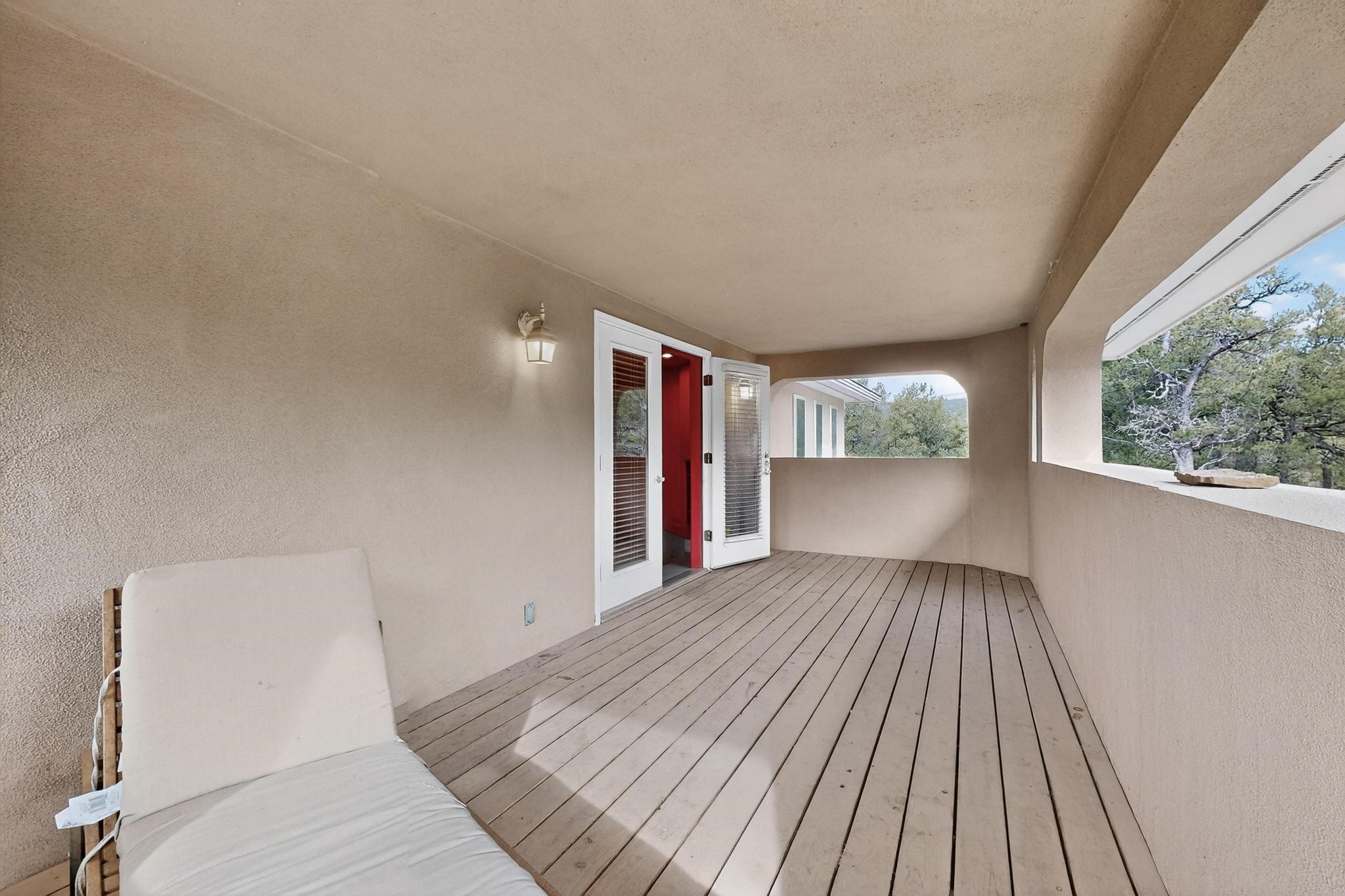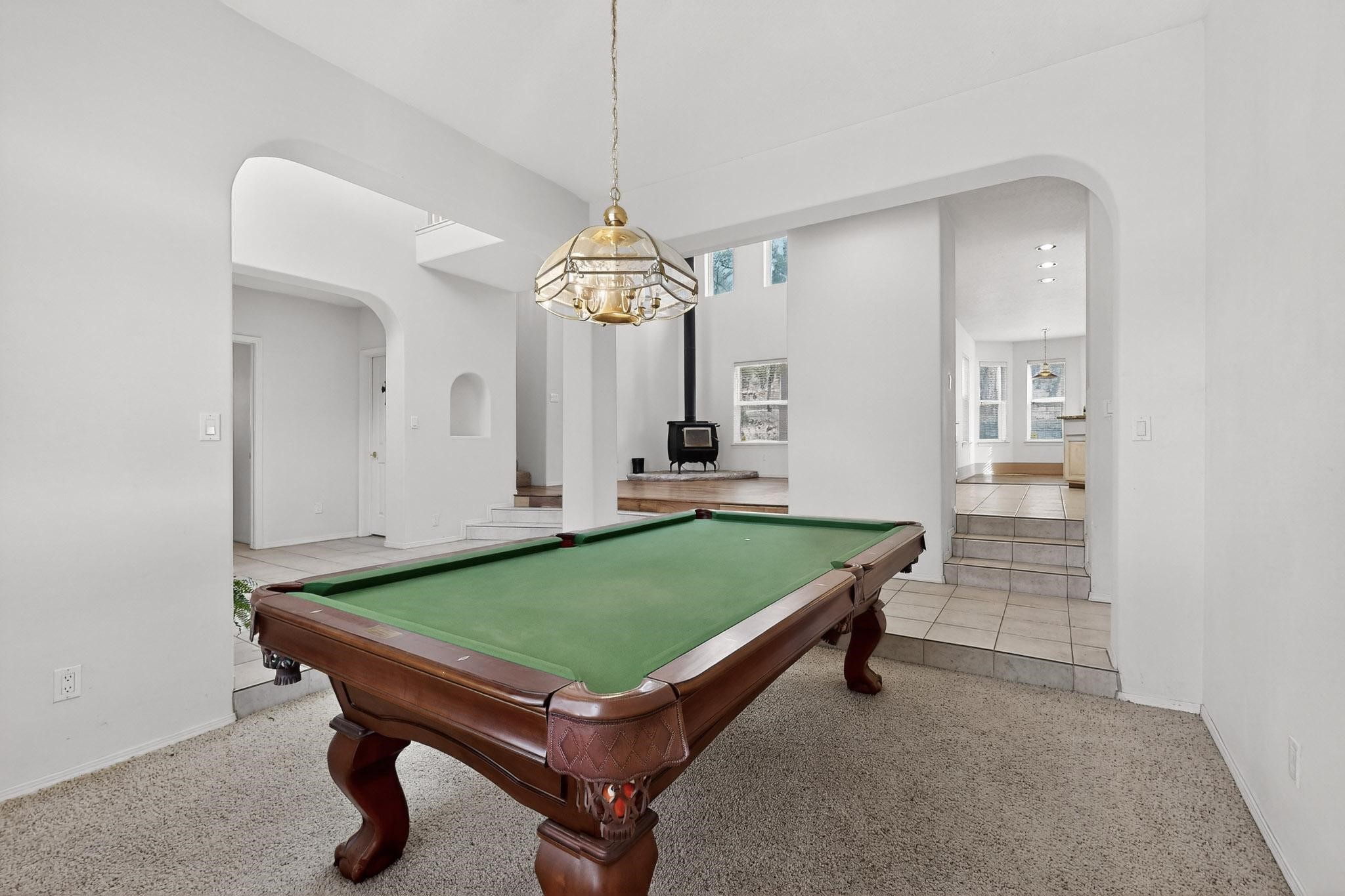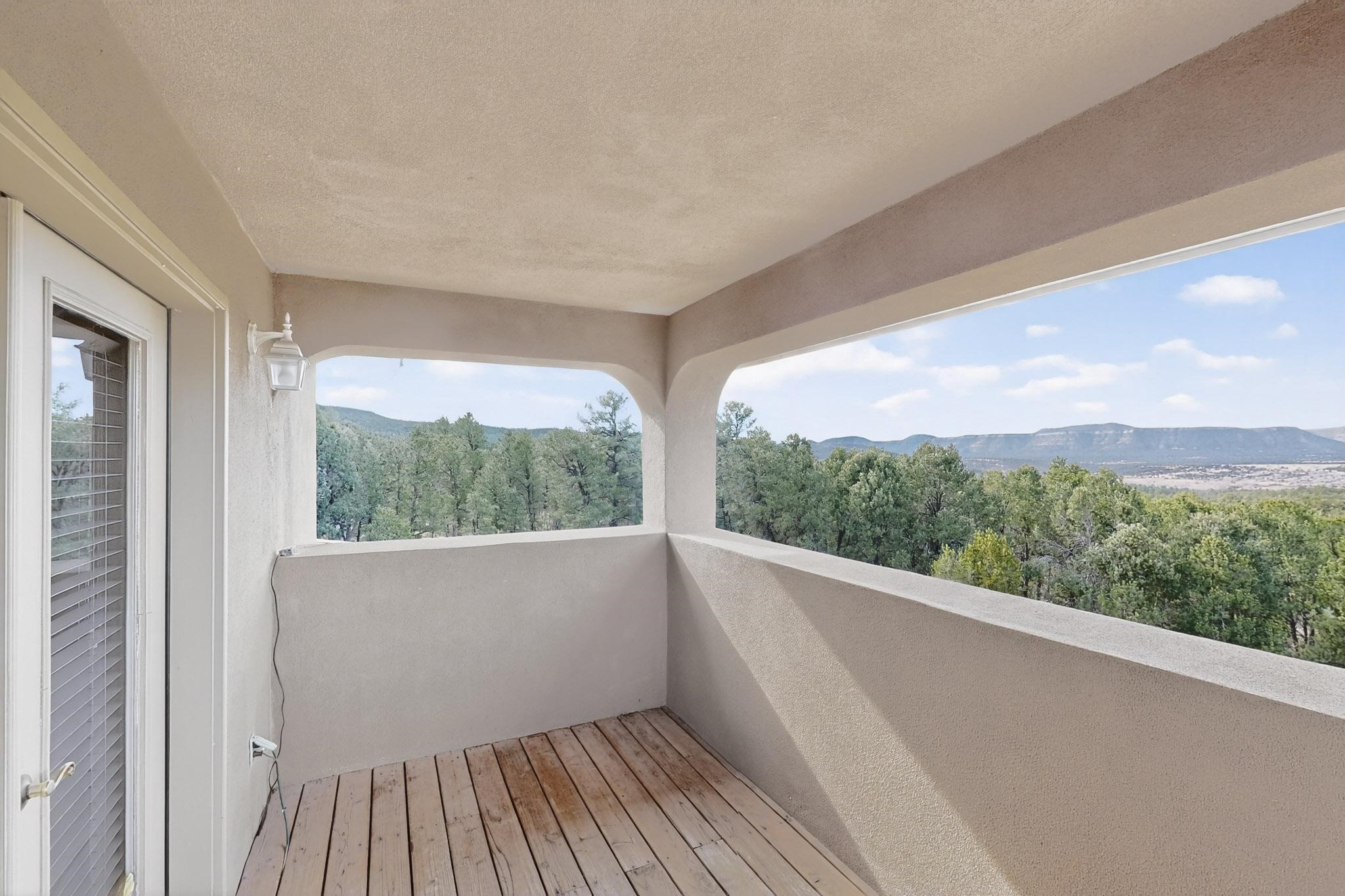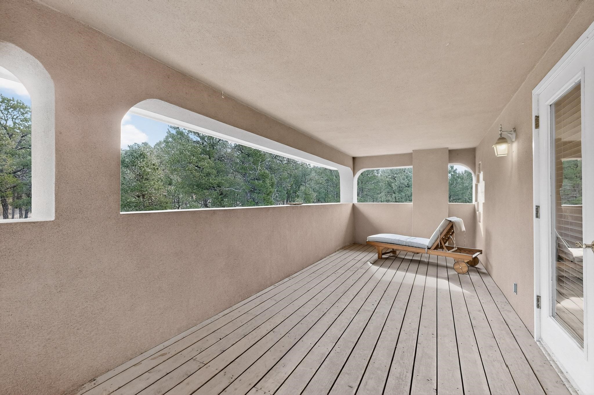 Custom 2-story home sited on 2.32 +/- fully fenced acres. The expansive floorplan includes great room with wood burning stove and tall ceilings, Chef's kitchen with breakfast nook, family room with Kiva fireplace, bonus room, 2 full baths and 3/4 bath, laundry room and oversize and finished 3 car garage. All 3 bedrooms are up stairs, primary has wood burning fireplace and view balcony, 2nd bedroom has a second view deck facing to the north with views to the Santa Fe National Forest, 2nd and 3rd bedrooms share "jack n jill" bathroom. The home boosts extensive closets, all appliances included - refrigerator, stove/oven, washer, dryer, dishwasher, French doors to back patio, 2 fireplaces and 1 wood stove, granite kitchen counters. The 2.32 +/- acres includes a circle driveway, are nicely maintained with Juniper, Pinon and a large Ponderosa Pine tree, block retaining wall, private well with 3 acre feet of domestic water rights, buried and owned propane tank, and picnic area with a picnic table. Located just beyond the Village of Pecos the property at 16 Coyote Lane has much to offer buyers.