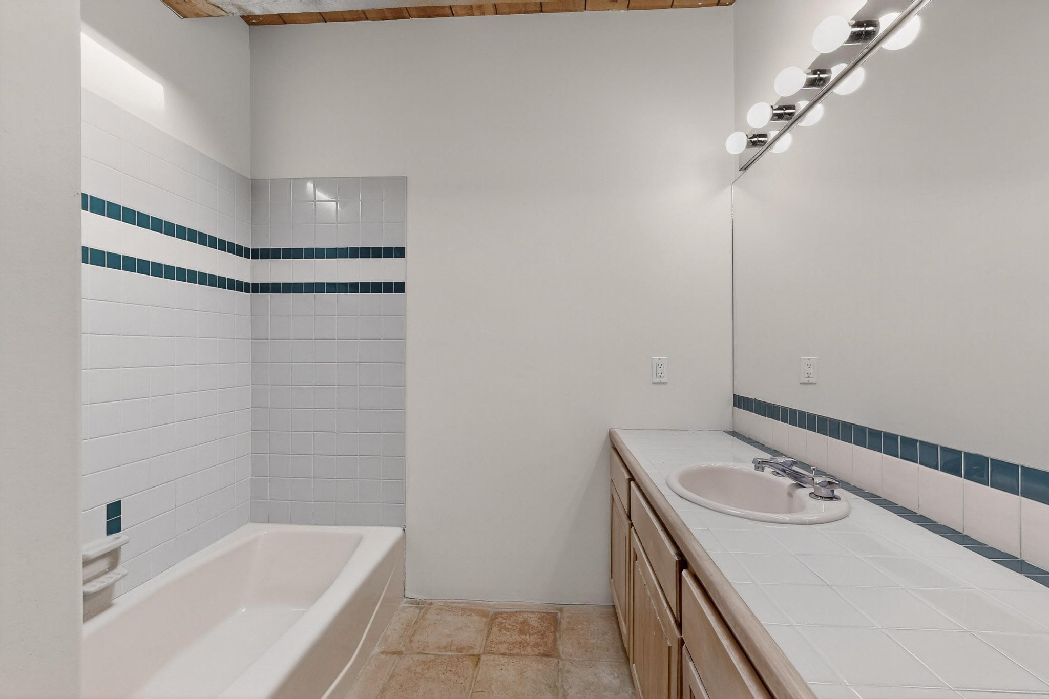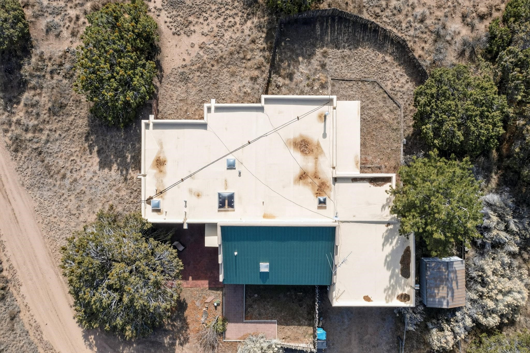 Located on an expansive Eldorado open space this is ideal for the night sky and naturalist enthusiast. Lovely traditional open plan, 1840sf passive solar design built by James Garton in 1990. The sunny split bedroom floorpan provides excellent separation for the main bedroom from the two guest bedrooms plus there is also a separate studio/den. Gleaming Santa Fe style saltillo tile and brick floors and beam ceilings throughout most rooms. Long south facing windows replaced in 2020, bring in the winter heat with overhangs adding shade in the summer.. A new TPO roof was installed in 2022. All appliances have been replaced in the last 5 years, and the hot water heater was replaced in 2020. There is a whole house filtering system, and a private front view brick patio added in 2021. here is an oversized 2 car garage plus plenty of guest parking. This home is accessed by paved roads and is within easy reach of Eldorado amenities, local shopping, schools, library and the senior center, only minutes into Santa Fe.