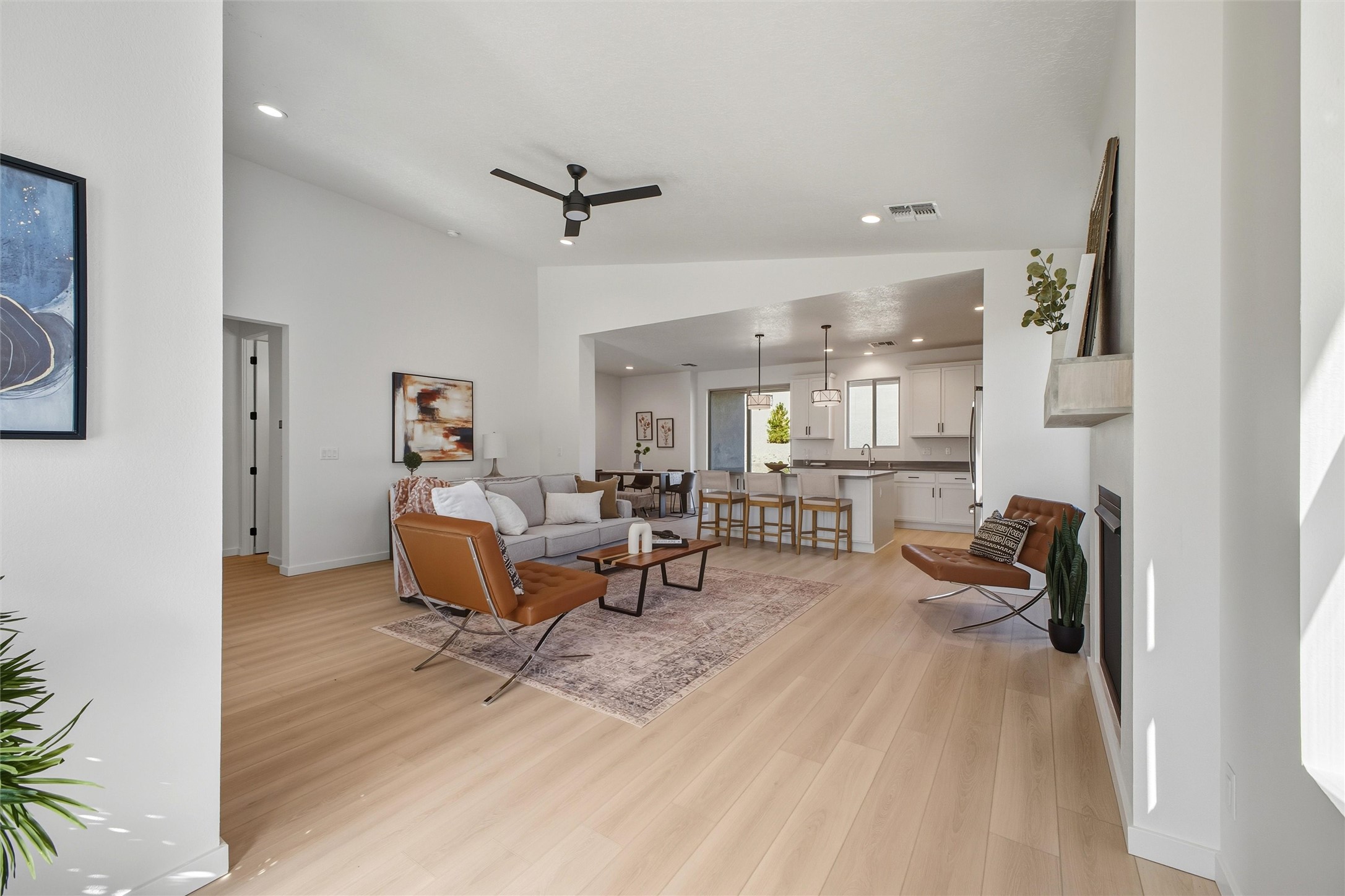 Step into modern comfort with this stunning brand-new 3 bedroom, 2 bathroom home, thoughtfully designed with energy efficiency and long-term peace of mind at the forefront. This move-in-ready residence features an open, light-filled layout with beautiful contemporary finishes, sleek fixtures, and quality craftsmanship throughout.The spacious kitchen flows seamlessly into the dining and living areas, creating an inviting space perfect for everyday living, enjoy the convenience of a 2-car garage, and the security of a 2-10 warranty. Step outside to a fully landscaped backyard--a rare turnkey treat--where you can relax and soak in the scenic views right from your own space.With modern design, efficiency, warranty, and a truly move-in-ready presentation, this home is the perfect blend of style, comfort, and value. Your new beginning starts here.