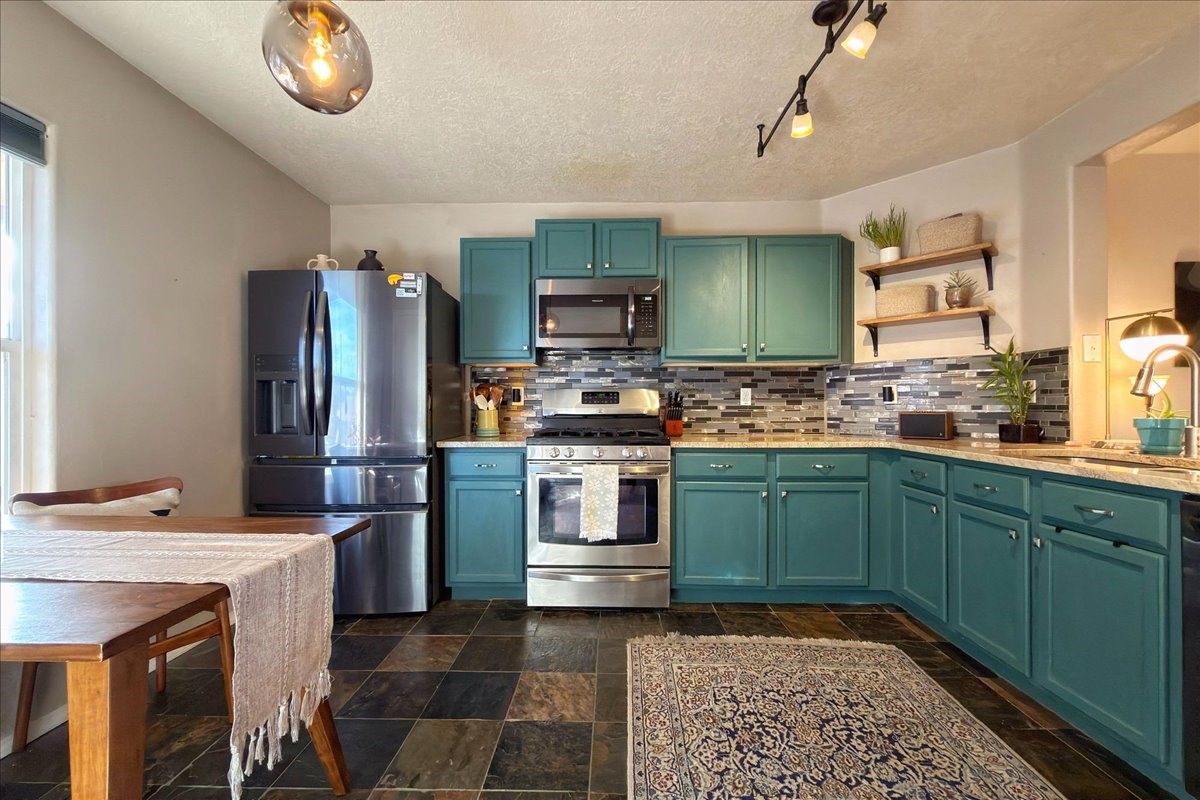 This charming single-level, three-bedroom, two-bath home is perfectly situated in a cul-de-sac, offering privacy and comfort. The spacious living area is filled with natural light, creating an open and welcoming atmosphere. The kitchen features granite countertops and new appliances. The bedrooms are spacious and versatile, ideal for guests, a home office, or a flex room. There are energy-efficient solar panels on the roof. Outside, the large lot includes beautiful rose bushes, raised garden beds, and a storage shed. Conveniently located close to highways, restaurants, and shopping.