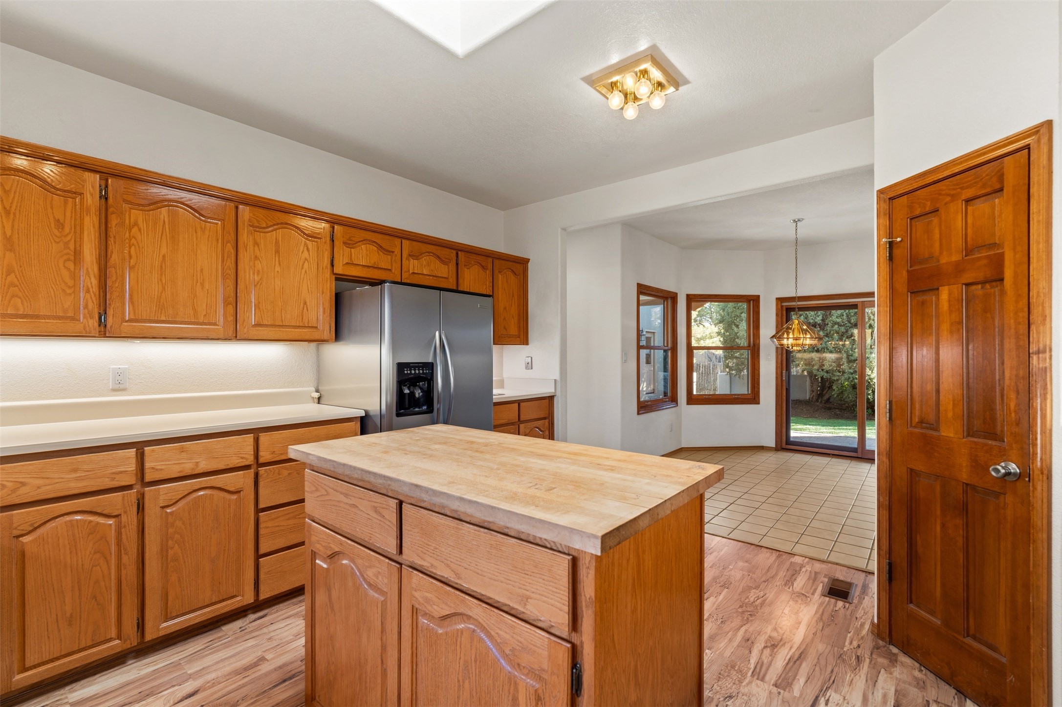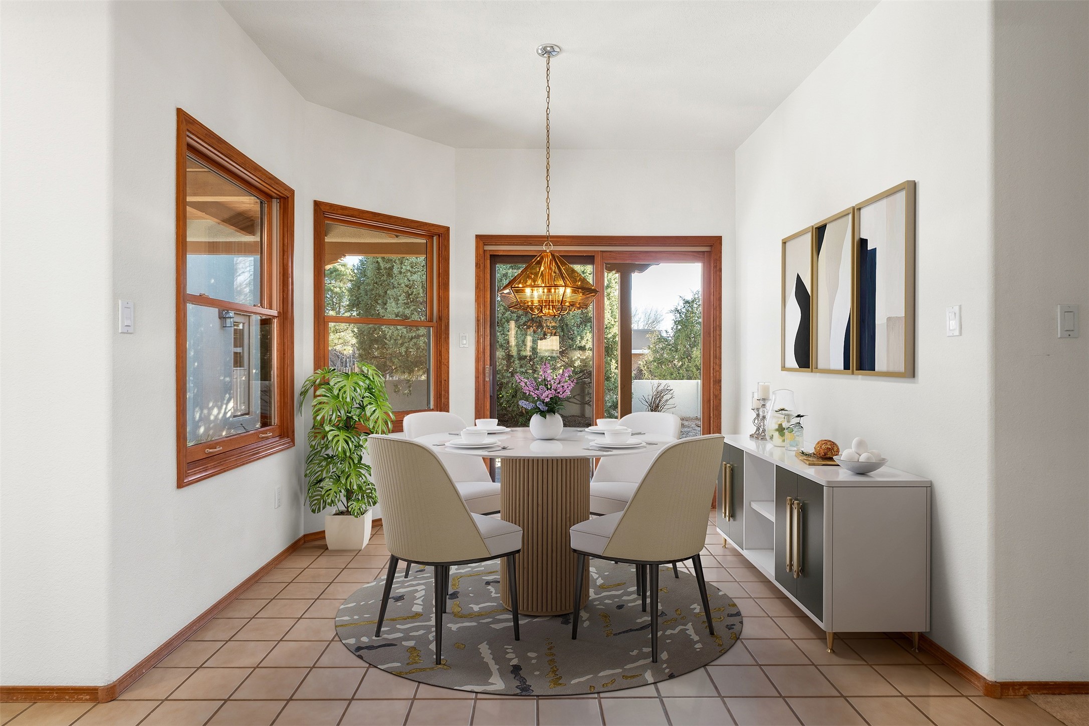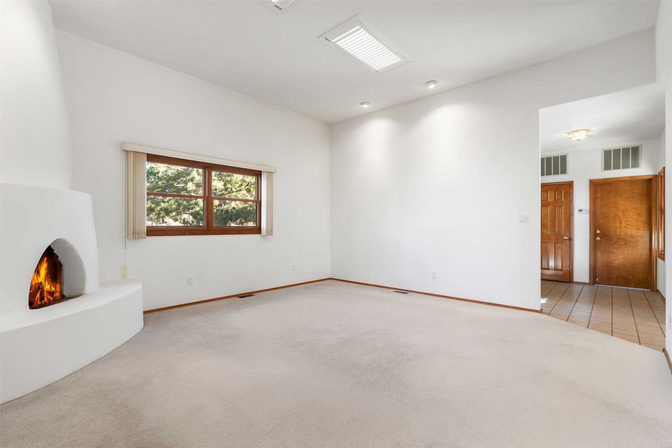 A wonderful opportunity to own a single-level home, perfectly situated in the highly desirable DeVargas Heights neighborhood. This property is an ideal canvas, ready for your personal touches to make it truly your own. Its prime location offers exceptional convenience, being close to downtown Santa Fe, various medical services, and a host of other local amenities. The home itself features a generously sized backyard with established trees, providing a private and serene side portal and courtyard. Inside, the primary suite encompasses a spacious bathroom designed with wheelchair access, ensuring comfort and accessibility. Additionally, the primary bedroom includes a dedicated sitting/office area, perfect for remote work or a quiet study space. Further enhancing this property's appeal are a three-car garage and potential parking in the side yard, offering ample space for vehicles and storage.This home combines an excellent location with practical features and the potential for customization. The type of cooling and its operation will need to be verified.