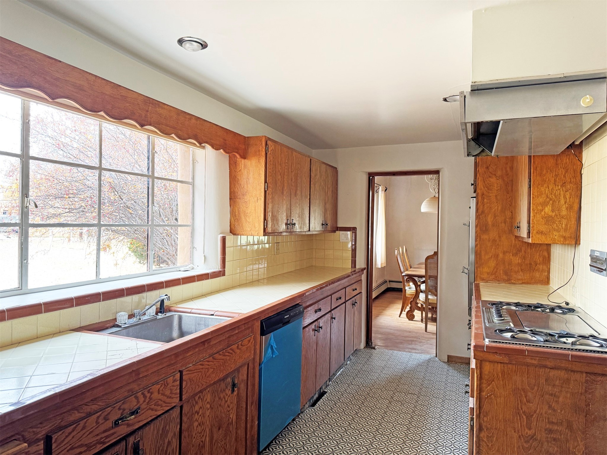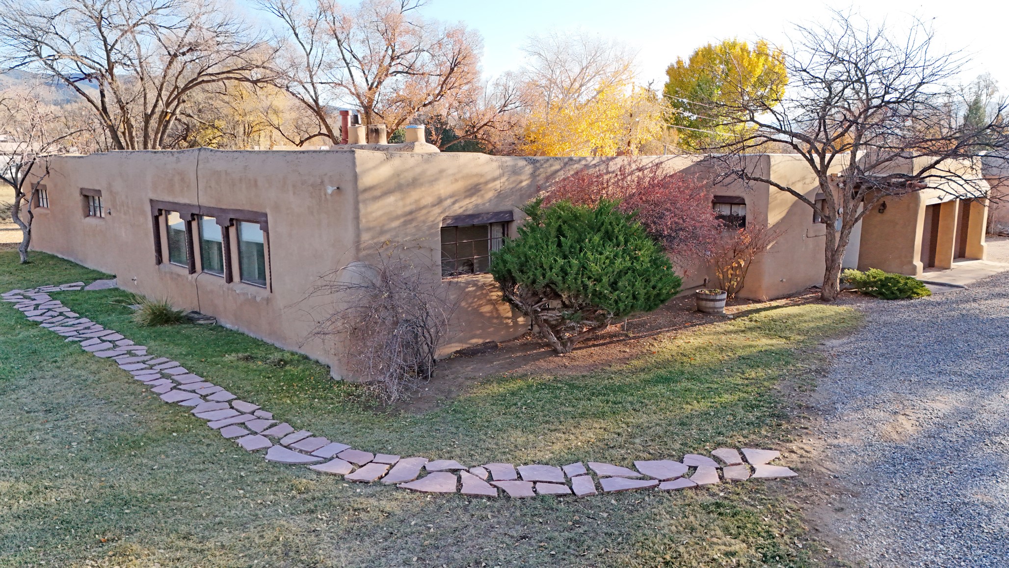 A walk to Taos Plaza estate sited on approximately one, park-like acre of land rarely comes to market! 315 Theodora Street is an authentic 2,365 square feet mid-century adobe structure located on one of Taos' premiere streets with views of Taos Mountain and the Sangre de Cristo foothills. This property offers such flexibility...move in now and complete cosmetic renovations over time; create a spectacular Northern New Mexican period renovation, or use it as a canvas to re-imagine a contemporary mid-century modern rebirth. Whatever choice, this property promises a smart investment with prospective equity gain in a sought after location. A traditional zaguan entry into a private courtyard through a winding portal is reminiscent of a hacienda main house. Inside double doors entry lies a stone floored foyer with a cozy fireplace study to the side, leading into a very spacious Living/Dining area with a stacked rock fireplace. Off the Living Area and Study is a kitchen with eat-in bar and a Butler's Pantry/Utility Room with separate entry. From the kitchen are stairs to an additional 484 square feet basement.