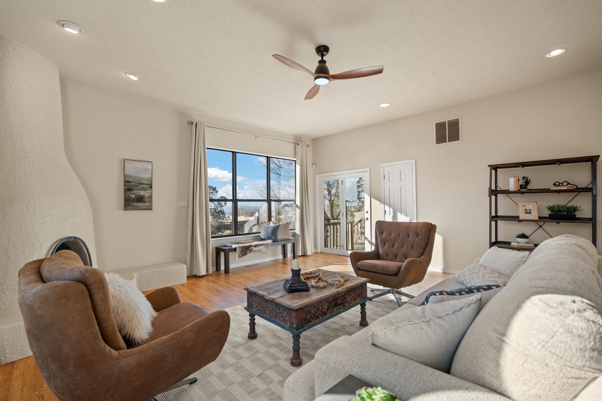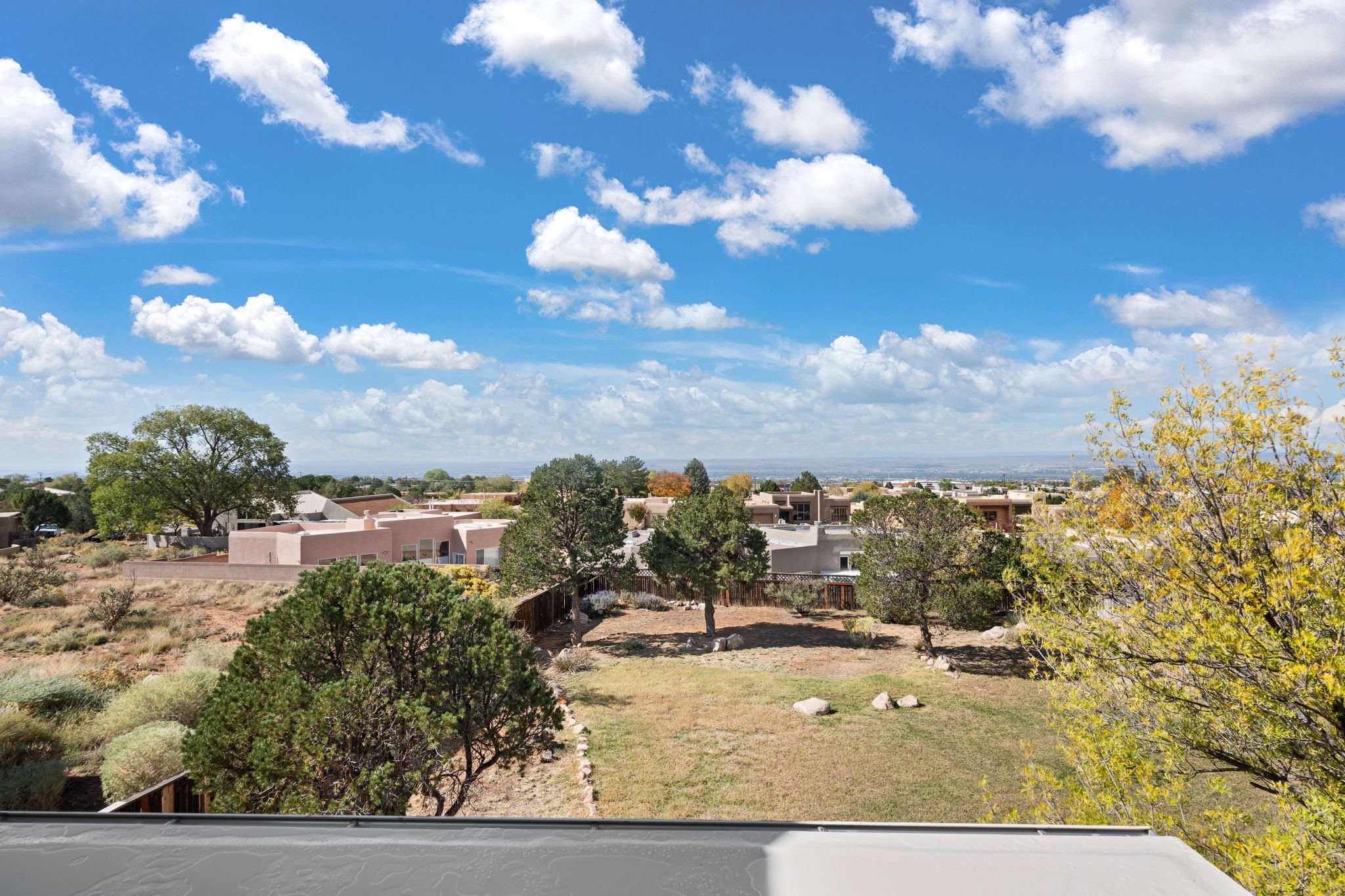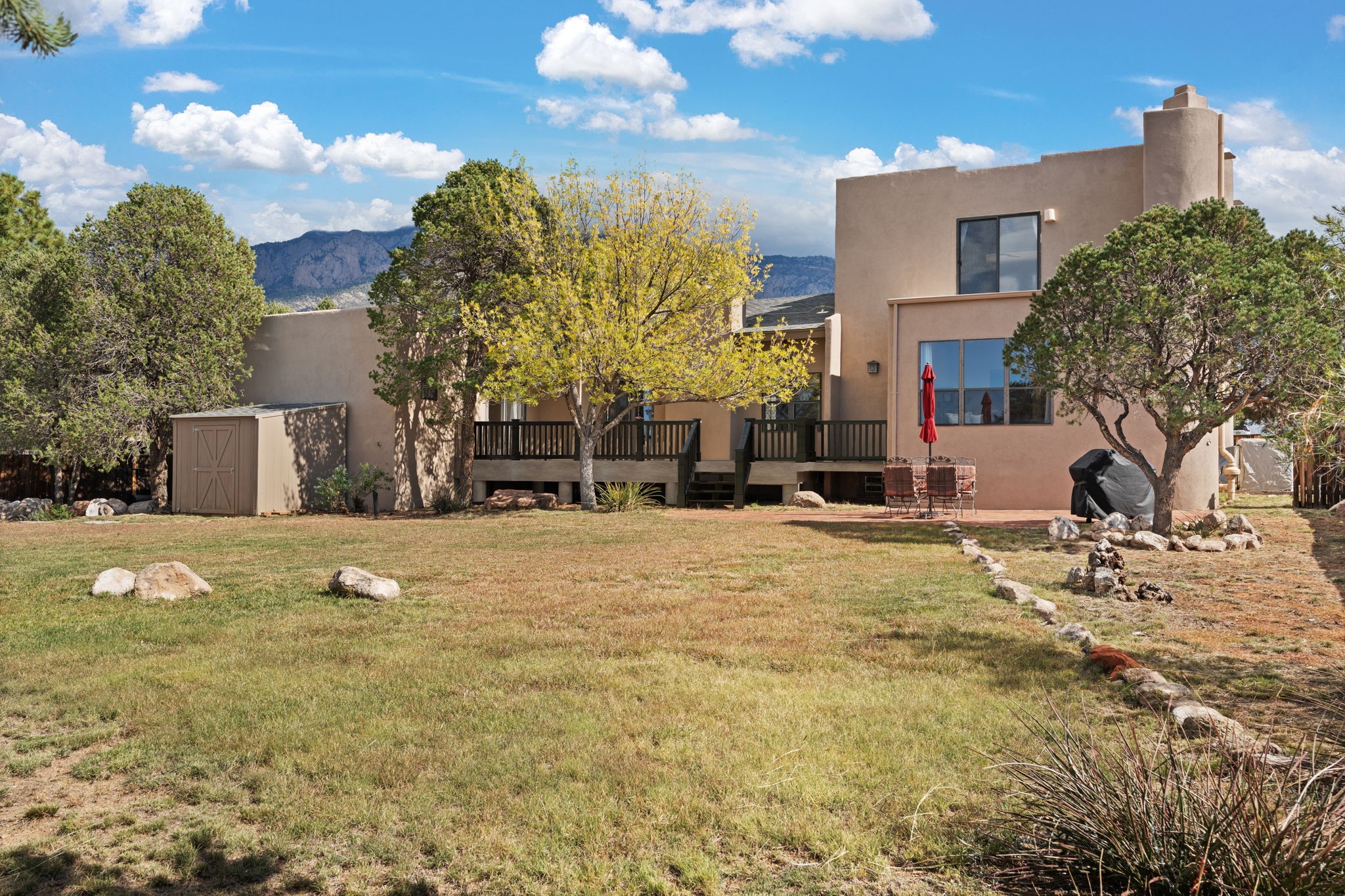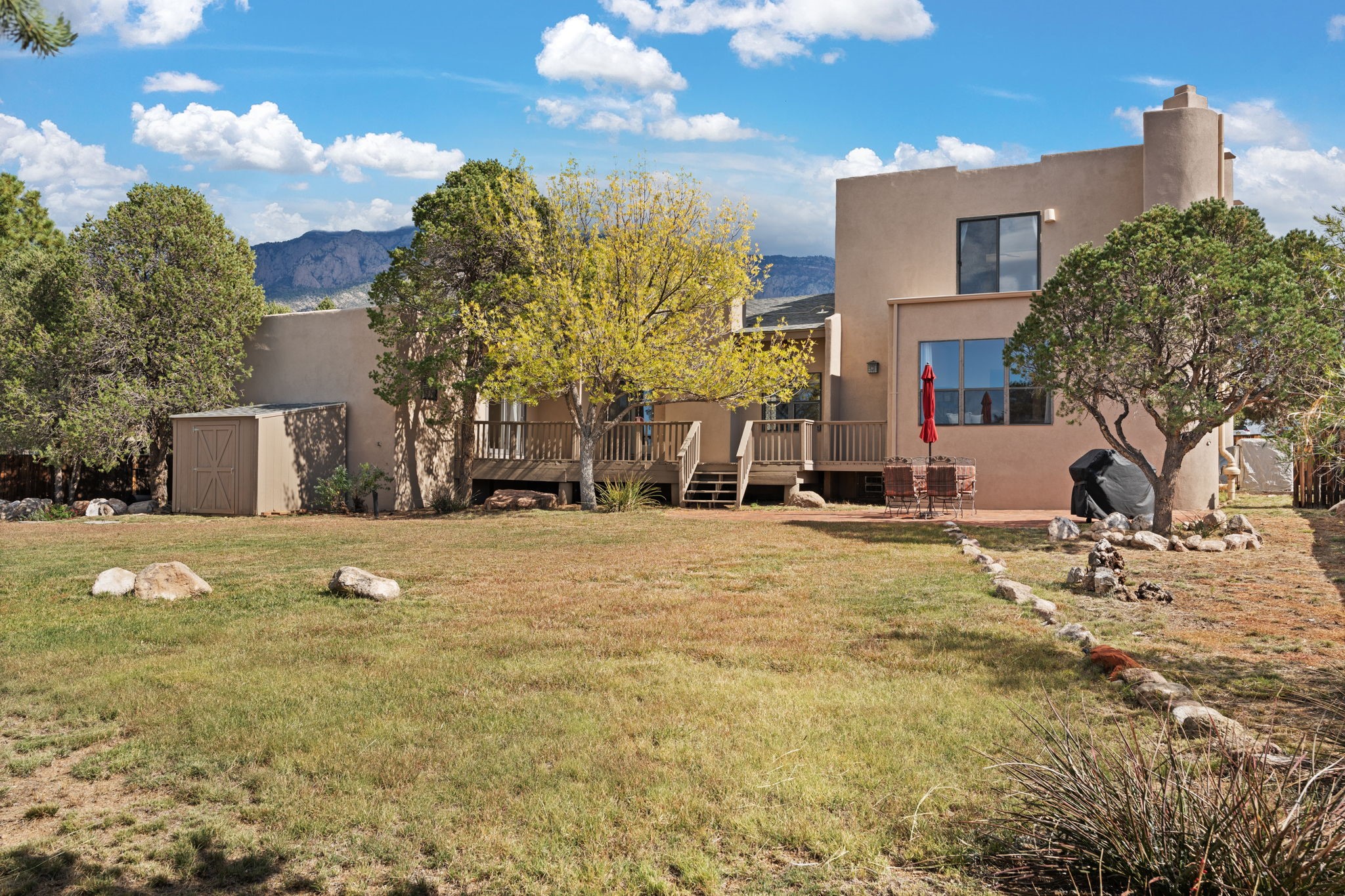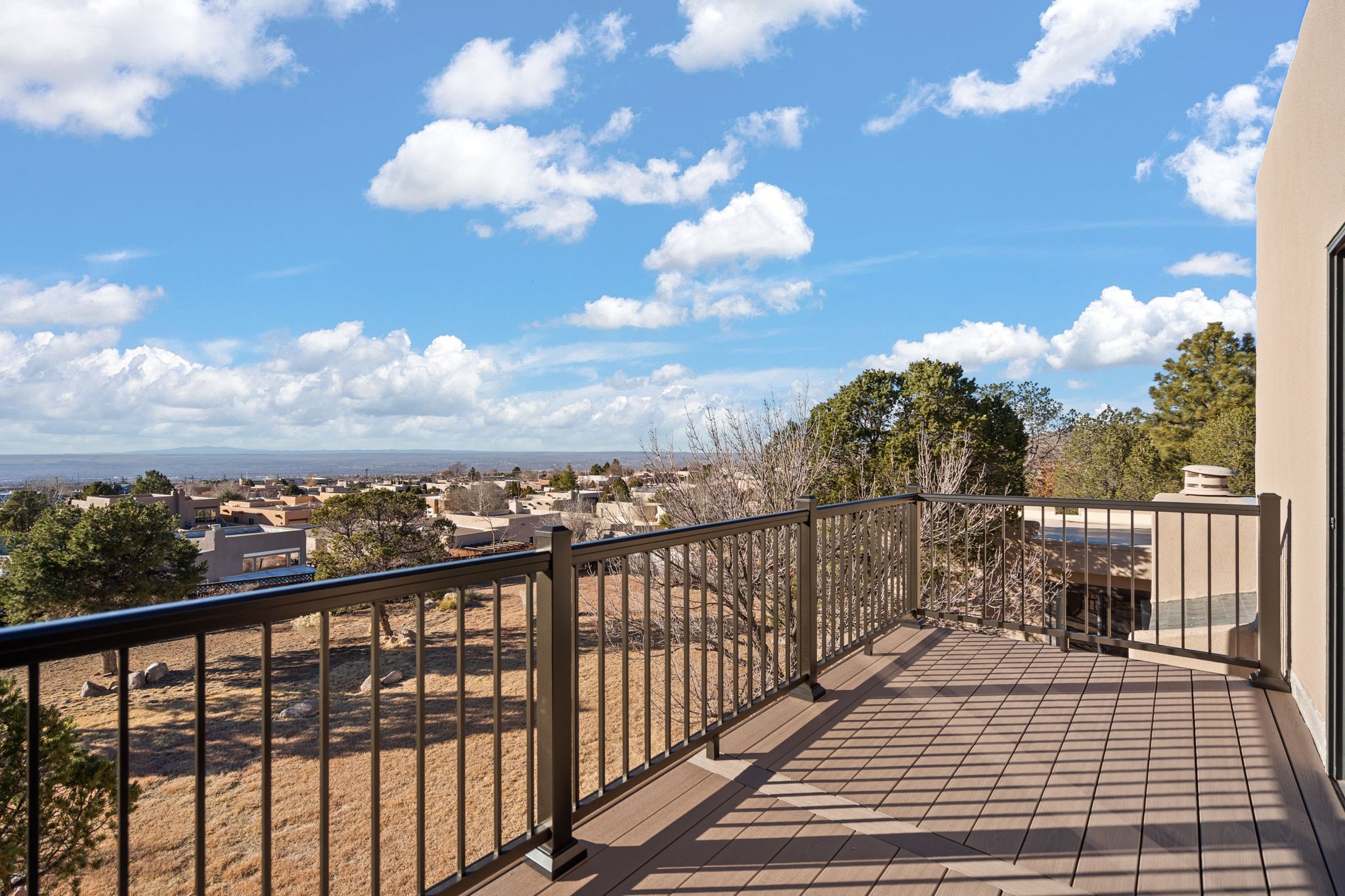 Move-in ready with major upgrades already complete! This stunning Sandia Heights home impresses with new stucco, two brand-new furnaces, a new water heater, newer evaporative coolers, radon mitigation, a whole-house water softener with dechlorinator and potassium treatment system, and a recently passed septic inspection--delivering comfort, efficiency, and true peace of mind. Brand-new decks extend living space off the primary suite as well as into the backyard, ideal for morning coffee, fiery sunsets, and starlit evenings. Inside, gleaming hardwood floors and an open, light-filled layout create an inviting setting for everyday living and entertaining. The chef-inspired kitchen features granite countertops, a gas cooktop island, generous cabinetry, and reverse osmosis filtration, flowing into a welcoming great room complemented by a classic Kiva fireplace. The luxurious upper-level owner's retreat offers a spa-like bath, sitting area, private balcony, and breathtaking Sandia Mountain and city light views. Enjoy nearby hiking and biking trails, peaceful deer crossings, and the serenity of Sandia Heights living, all set on a .58-acre lot with endless backyard potential- your ABQ Dream Home awaits.