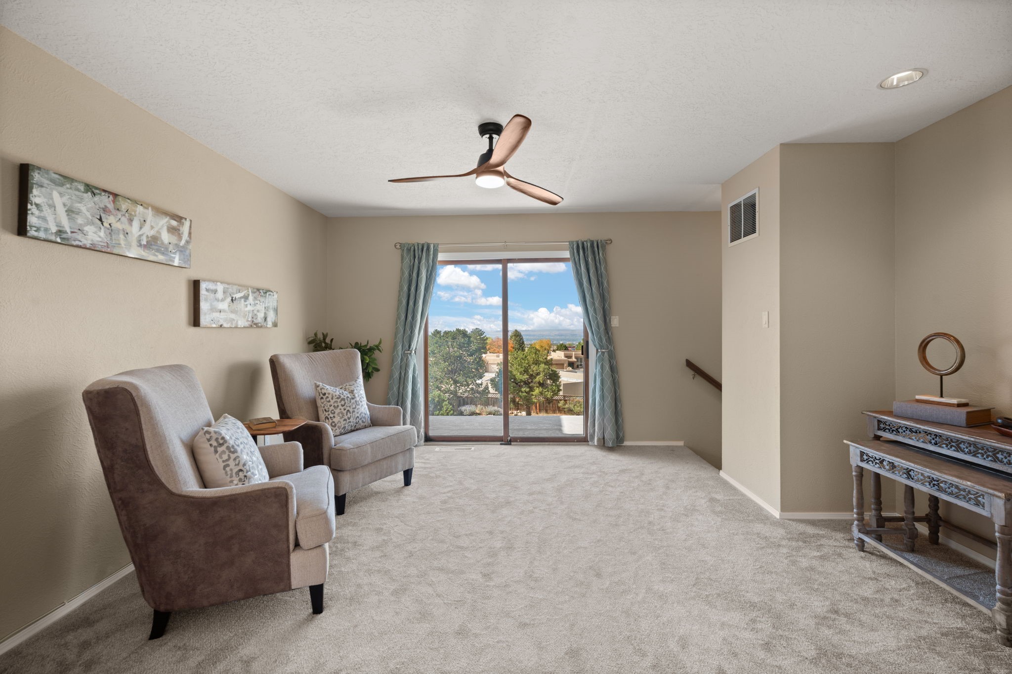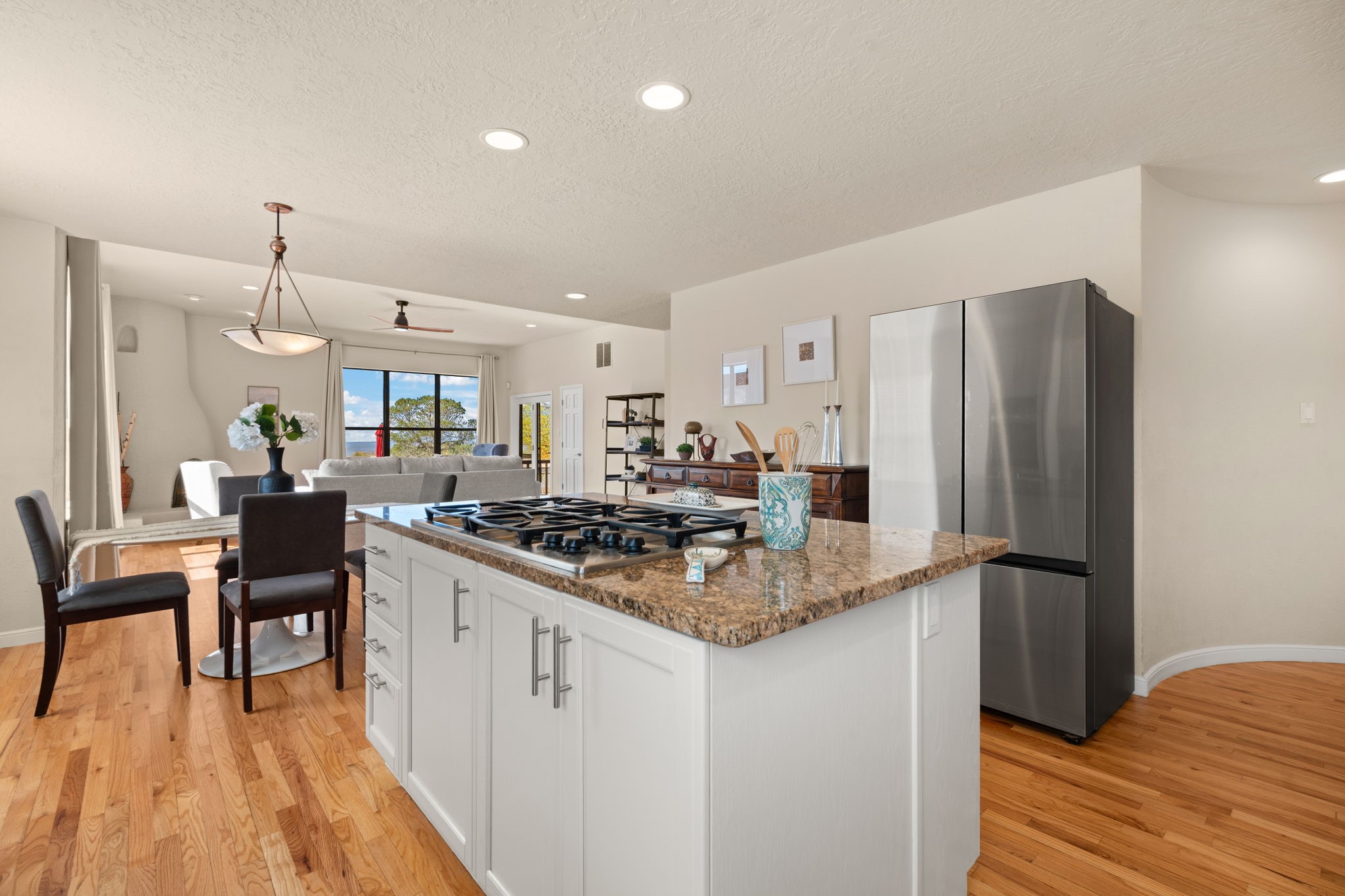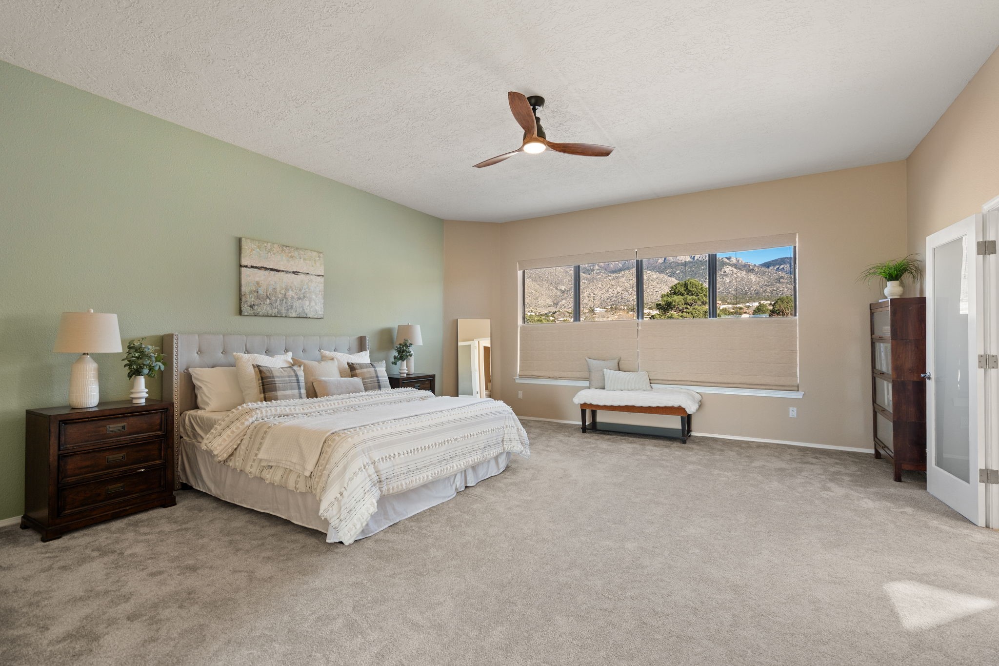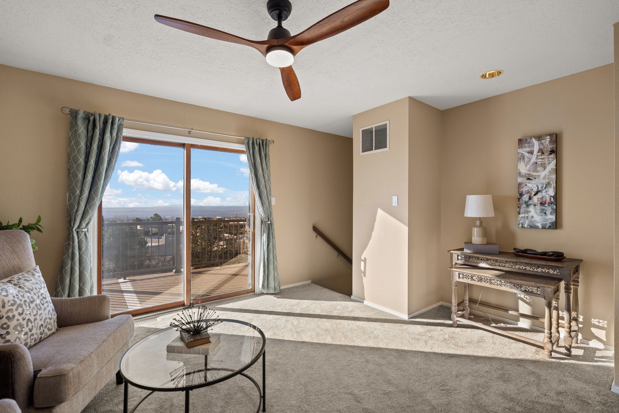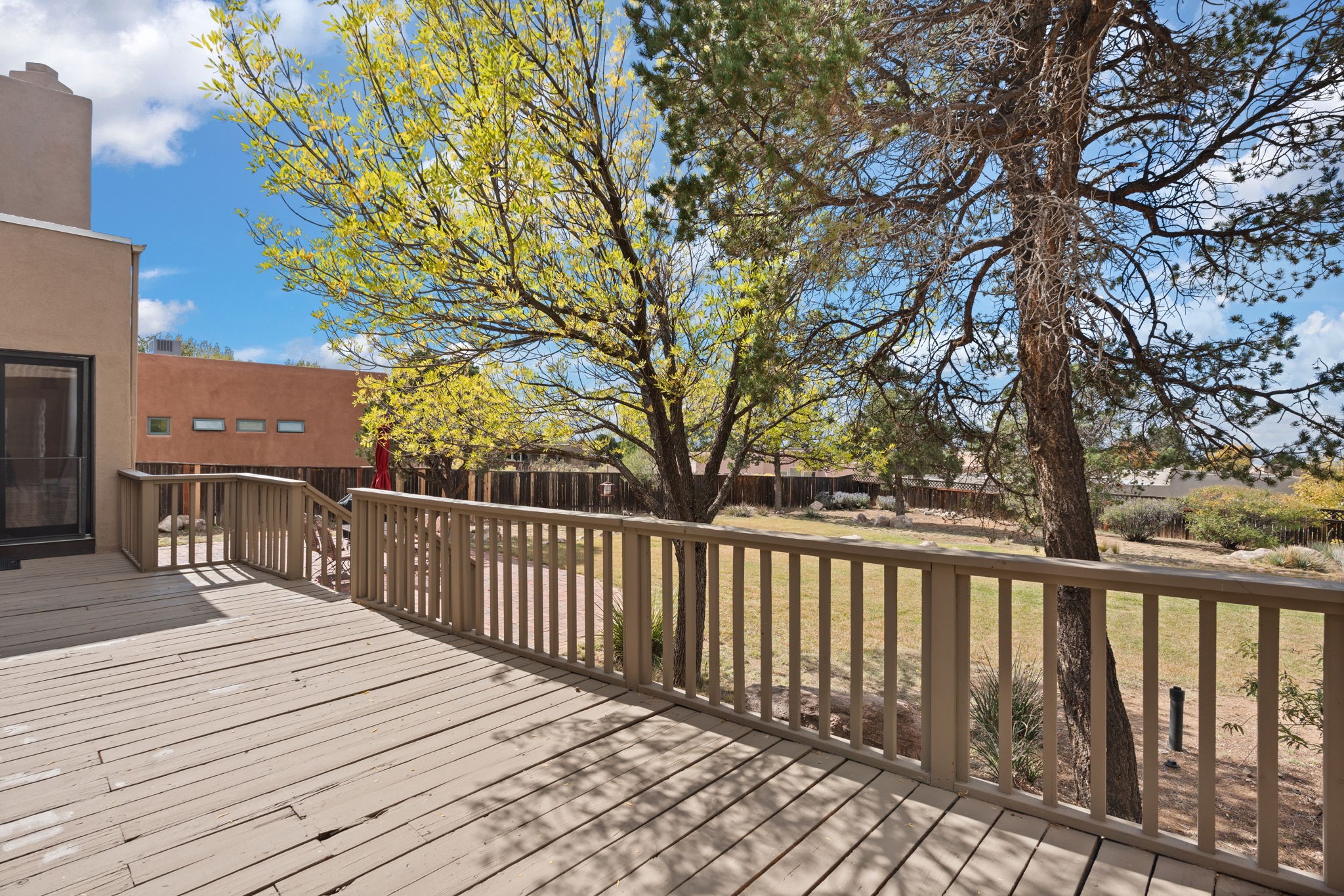 Move-in ready with major upgrades already complete! This stunning Sandia Heights home impresses with new stucco, two brand-new furnaces, a new water heater, newer evaporative coolers, radon mitigation, a whole-house water softener with dechlorinator and potassium treatment system, and a recently passed septic inspection--delivering comfort, efficiency, and true peace of mind. Brand-new decks extend living space off the primary suite as well as into the backyard, ideal for morning coffee, fiery sunsets, and starlit evenings. Inside, gleaming hardwood floors and an open, light-filled layout create an inviting setting for everyday living and entertaining. The chef-inspired kitchen features granite countertops, a gas cooktop island, generous cabinetry, and reverse osmosis filtration, flowing into a welcoming great room complemented by a classic Kiva fireplace. The luxurious upper-level owner's retreat offers a spa-like bath, sitting area, private balcony, and breathtaking Sandia Mountain and city light views. Enjoy nearby hiking and biking trails, peaceful deer crossings, and the serenity of Sandia Heights living, all set on a .58-acre lot with endless backyard potential- your ABQ Dream Home awaits.