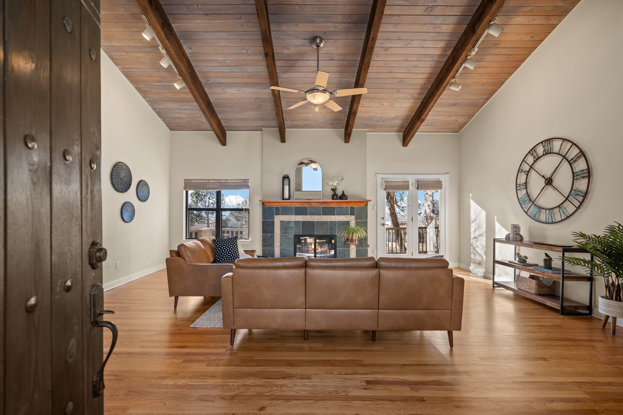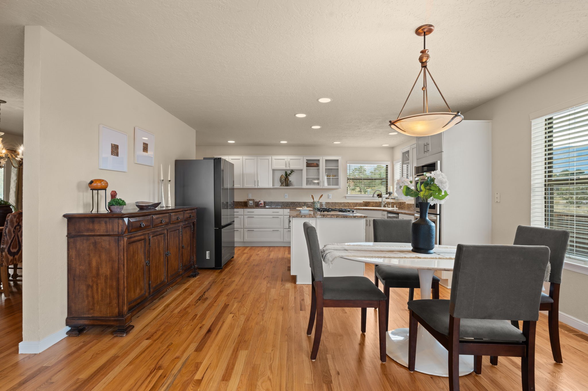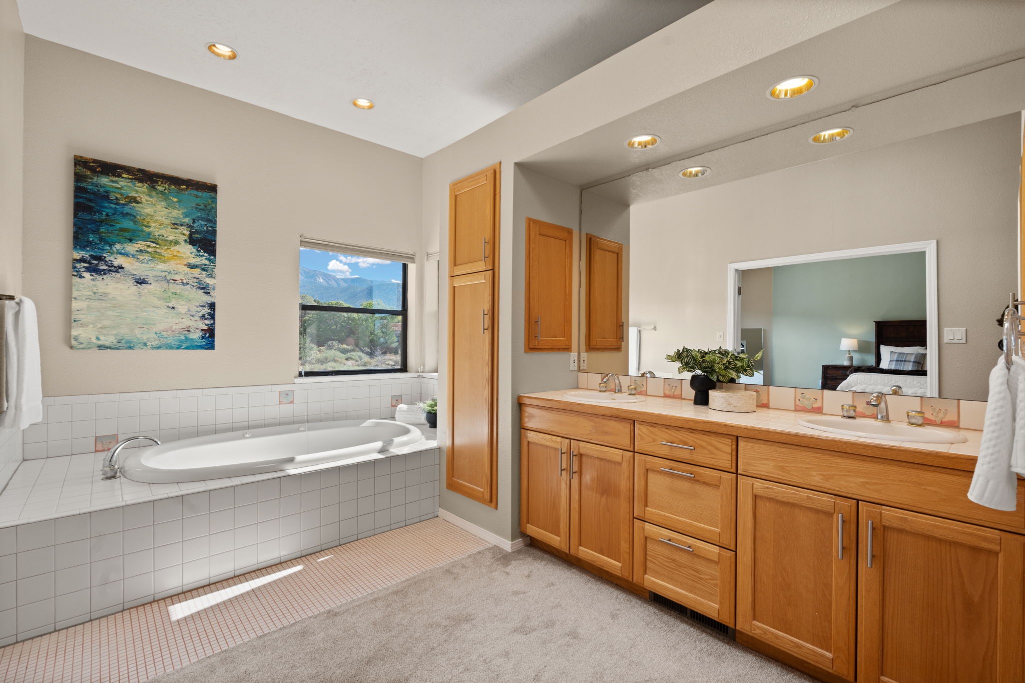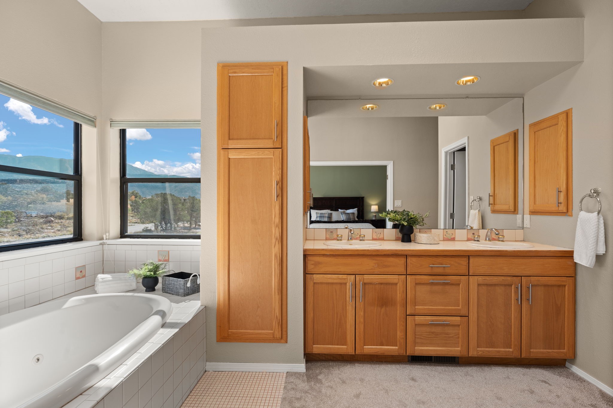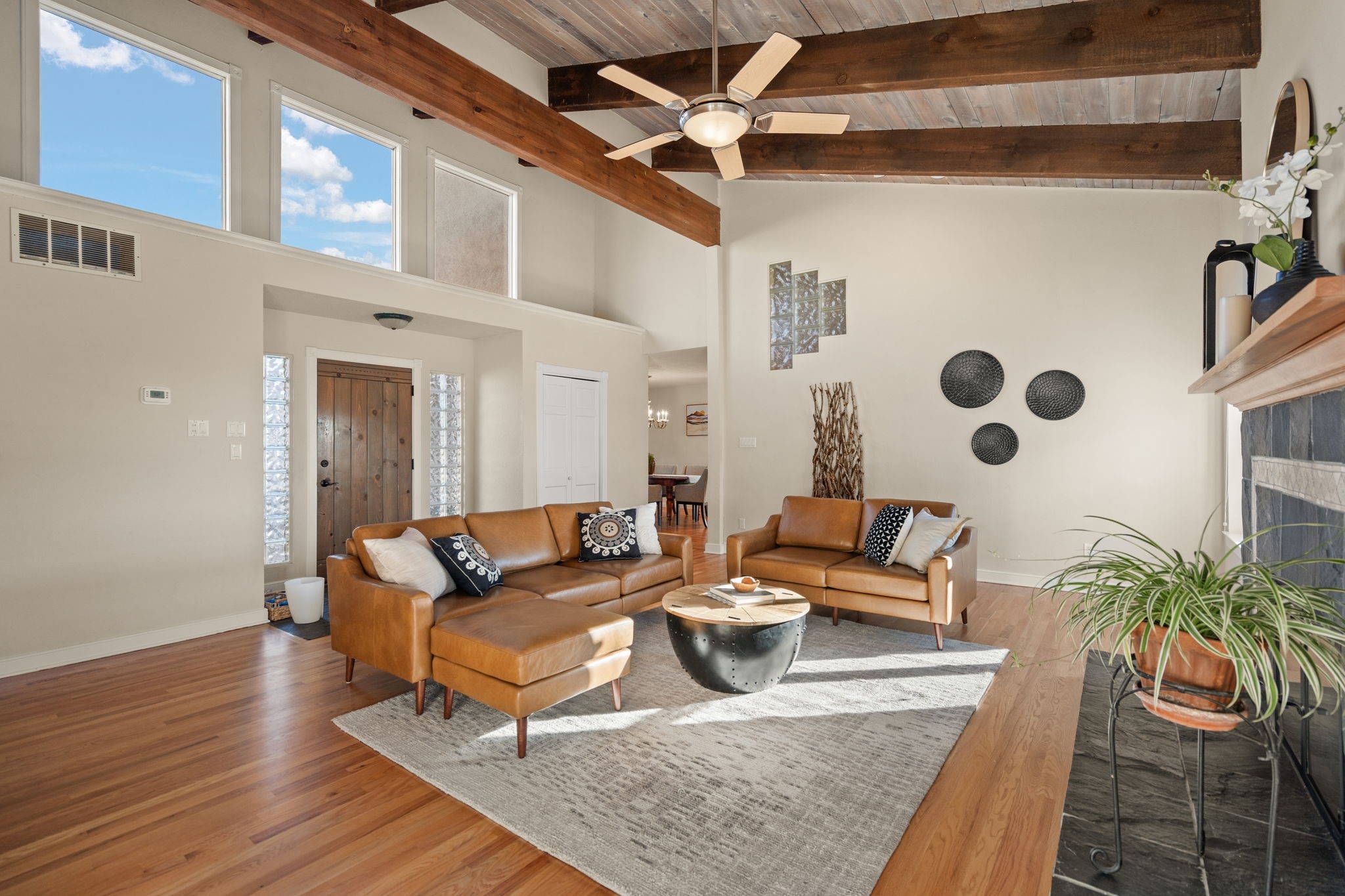 Move-in ready with major upgrades already complete! This stunning Sandia Heights home impresses with new stucco, two brand-new furnaces, a new water heater, newer evaporative coolers, radon mitigation, a whole-house water softener with dechlorinator and potassium treatment system, and a recently passed septic inspection--delivering comfort, efficiency, and true peace of mind. Brand-new decks extend living space off the primary suite as well as into the backyard, ideal for morning coffee, fiery sunsets, and starlit evenings. Inside, gleaming hardwood floors and an open, light-filled layout create an inviting setting for everyday living and entertaining. The chef-inspired kitchen features granite countertops, a gas cooktop island, generous cabinetry, and reverse osmosis filtration, flowing into a welcoming great room complemented by a classic Kiva fireplace. The luxurious upper-level owner's retreat offers a spa-like bath, sitting area, private balcony, and breathtaking Sandia Mountain and city light views. Enjoy nearby hiking and biking trails, peaceful deer crossings, and the serenity of Sandia Heights living, all set on a .58-acre lot with endless backyard potential- your ABQ Dream Home awaits.