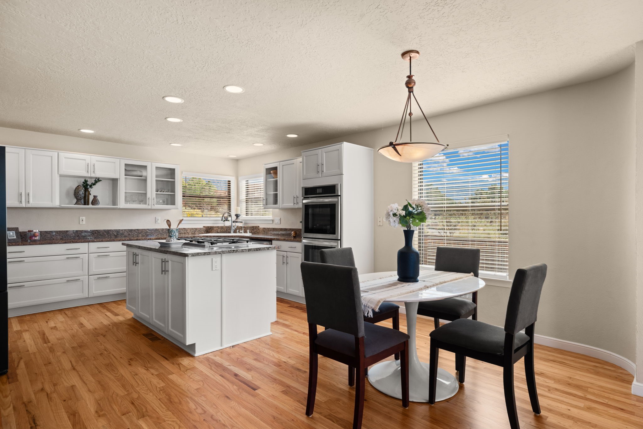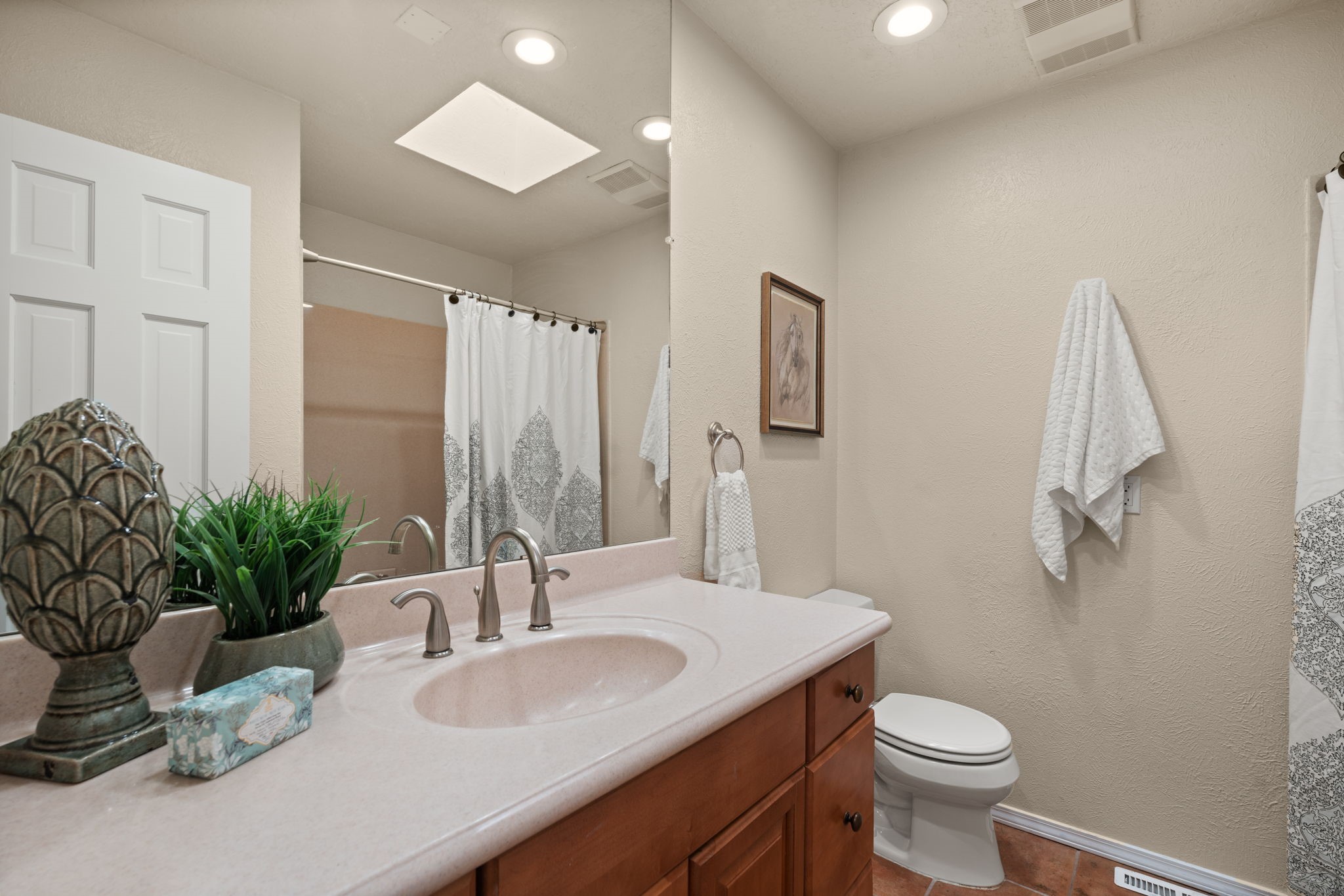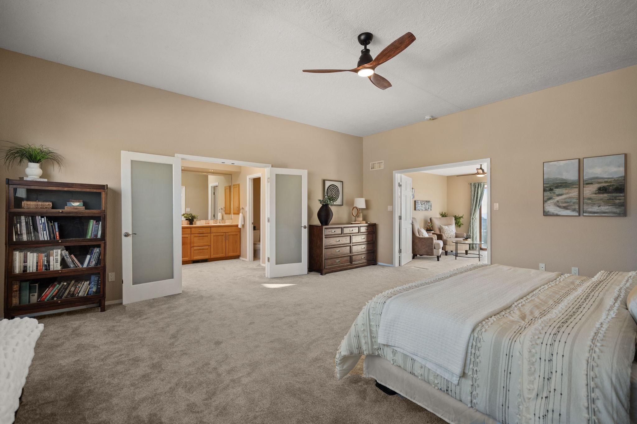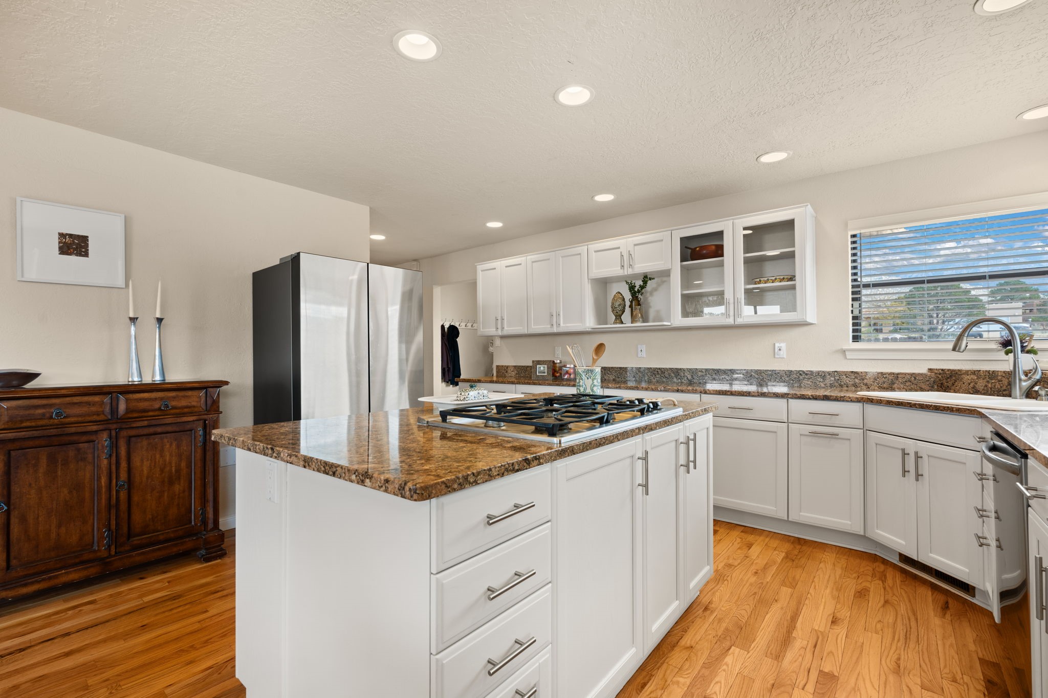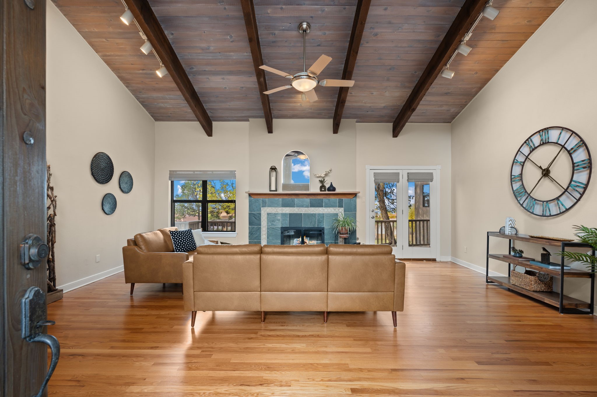 Move-in ready with major upgrades already complete! This stunning Sandia Heights home impresses with new stucco, two brand-new furnaces, a new water heater, newer evaporative coolers, radon mitigation, a whole-house water softener with dechlorinator and potassium treatment system, and a recently passed septic inspection--delivering comfort, efficiency, and true peace of mind. Brand-new decks extend living space off the primary suite as well as into the backyard, ideal for morning coffee, fiery sunsets, and starlit evenings. Inside, gleaming hardwood floors and an open, light-filled layout create an inviting setting for everyday living and entertaining. The chef-inspired kitchen features granite countertops, a gas cooktop island, generous cabinetry, and reverse osmosis filtration, flowing into a welcoming great room complemented by a classic Kiva fireplace. The luxurious upper-level owner's retreat offers a spa-like bath, sitting area, private balcony, and breathtaking Sandia Mountain and city light views. Enjoy nearby hiking and biking trails, peaceful deer crossings, and the serenity of Sandia Heights living, all set on a .58-acre lot with endless backyard potential- your ABQ Dream Home awaits.