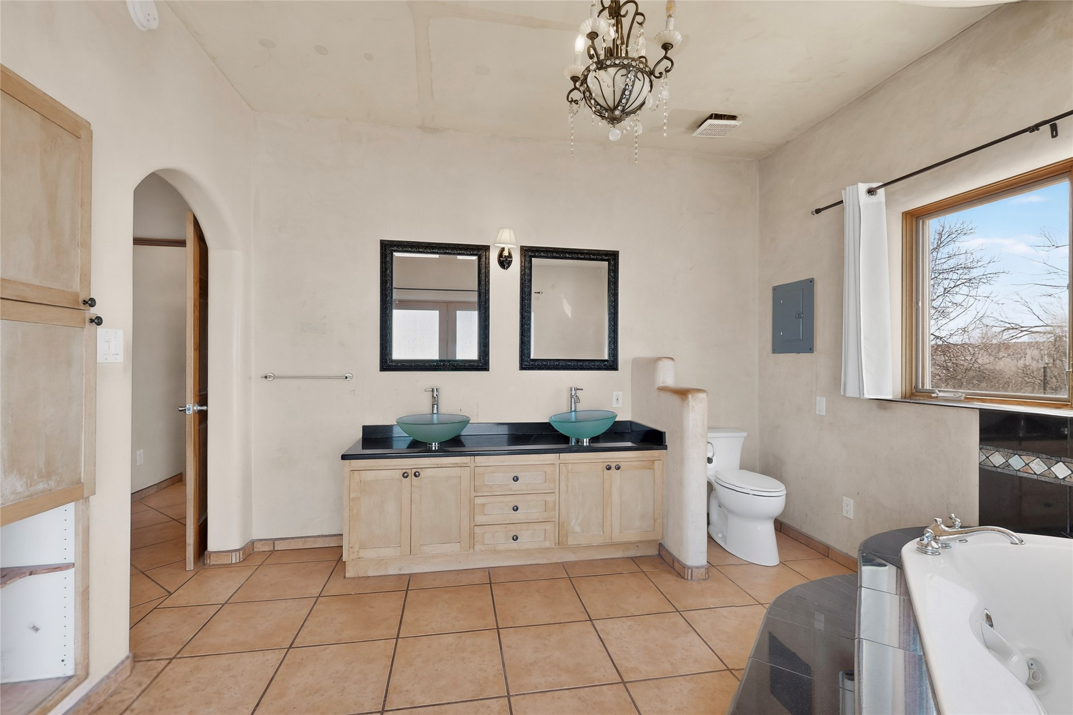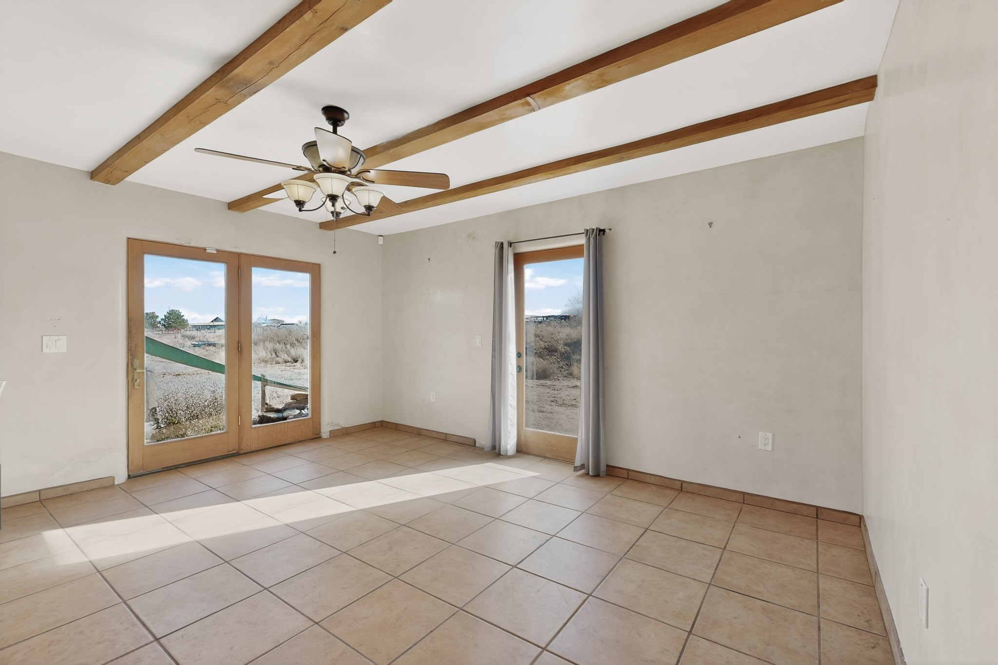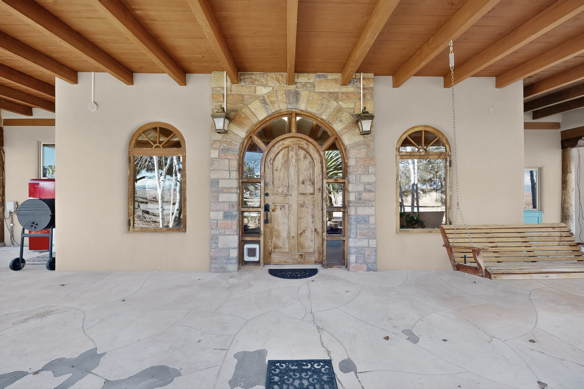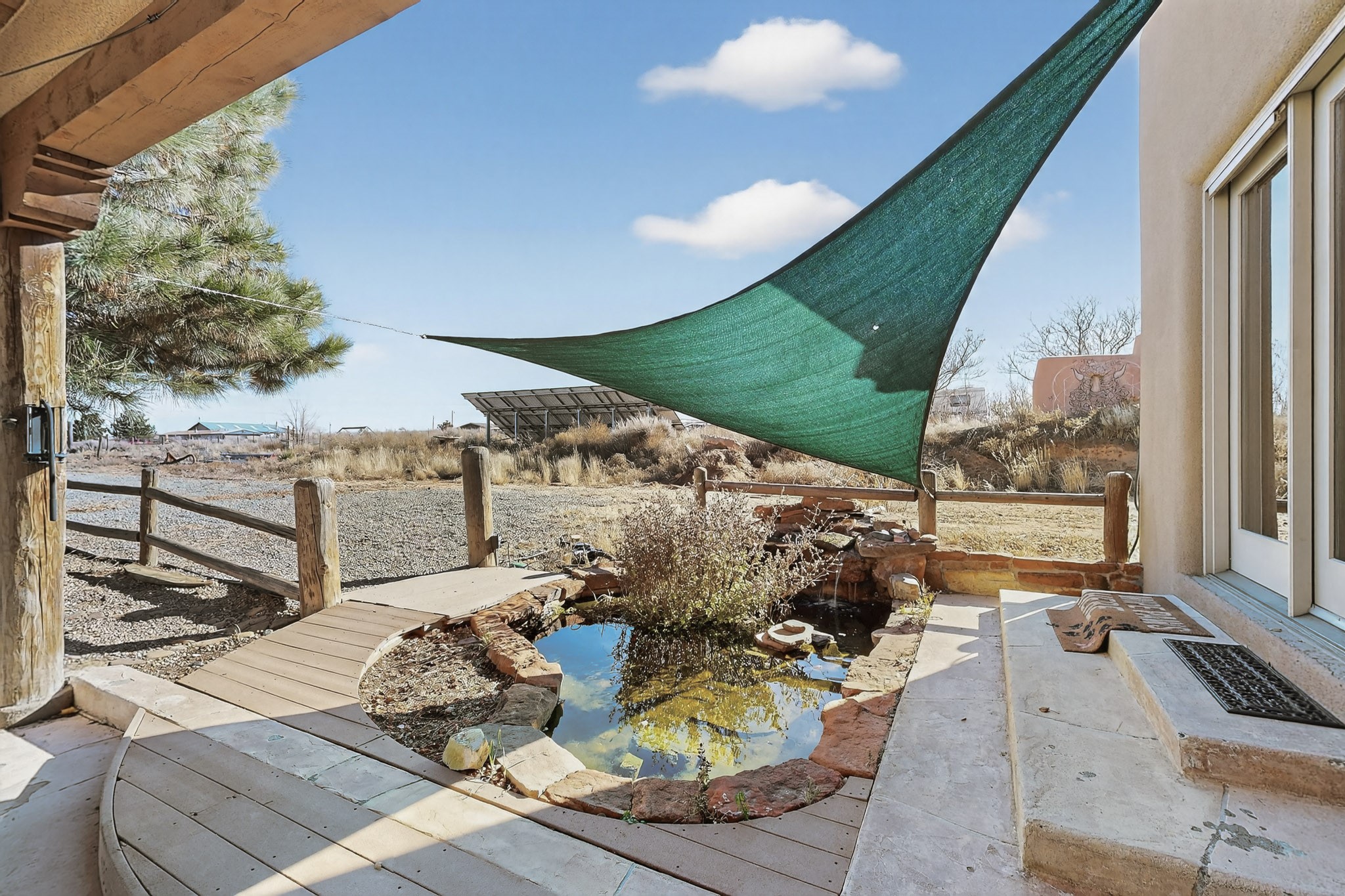 Experience Northern New Mexico living at its finest on this exceptional 2.5-acre property featuring a spacious 4-bedroom, 2-bath, 2,800 sq ft main home and a fully equipped 3-bedroom, 2-bath manufactured guest house. The impressive, custom-built main residence highlights timeless Southwest charm with plaster walls, vigas, a kiva fireplace, beautiful artistic touches, and warm, inviting living spaces.Sustainable living is built right in with a fully paid-off solar panel system, offering energy efficiency and long-term savings. Outdoors, enjoy incredible views of the mountains, peaceful moments by the tranquil koi pond, or explore the expansive grounds. You can also take advantage of the versatile detached shop/garage--ideal for projects, hobbies, or additional storage.An exceptionally productive private well provides reliable water for both homes and the acreage, enhancing the property's self-sufficiency. Potentially providing as high as 40 to 50 gallons per minute, the pump has been governed to produce at 25 GPM, which easily accounts for any residential, or even livestock need. Additionally, an in-ground 1200 gallon tank provides water to the pressure tanks through an automatic softener. Water is absolutely not an issue at this incredible property. Perfect for multi-generational living, rental income, or extended-stay guests, this rare offering blends comfort, functionality, ample space, and true Southwest appeal. Schedule your private tour today!