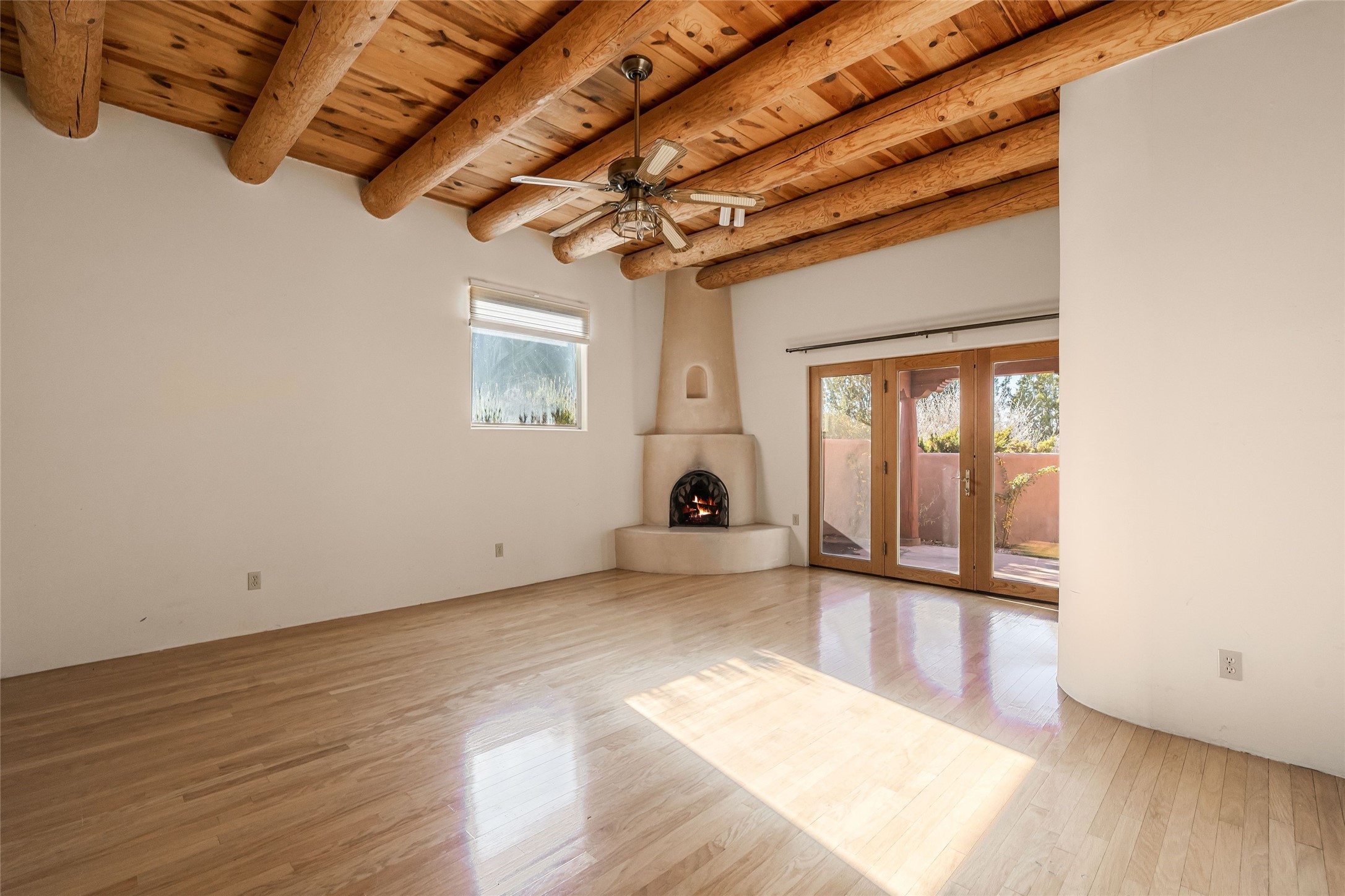 Sited within the serene landscapes of Santa Fe, this 3-bedroom 3 bath home offers a blend of comfort, style, and sustainability. This 2.5-acre property, surrounded by the natural beauty of Tres Arroyos, is within easy access to the vibrant energy of Santa Fe Plaza, allowing you to enjoy both tranquility and the lively culture of the city. The open living and dining area features exquisite Saltillo tile floors, wood beams, and a cozy wood-burning fireplace, creating a warm and inviting atmosphere. The kitchen is equipped with a center island and breakfast bar, double sink, and ample storage space. Retreat to the primary bedroom, which features beautiful wood floors, a kiva fireplace, direct access to the back portal and ensuite bath. A standout feature of this property is the small, attached studio, complete with a propane gas fireplace. This space can serve as an art studio, or home office, providing flexibility to suit your needs. The exterior of the home features two outdoor fireplaces and a pizza oven--perfect for hosting gatherings under the stars. Embrace eco-friendly living with green features that include solar panels, an instant hot water heater, and a drip irrigation system. Two-car garage. Easy access to NM-599, Santa Fe Regional Airport, restaurants, shopping, and medical.
