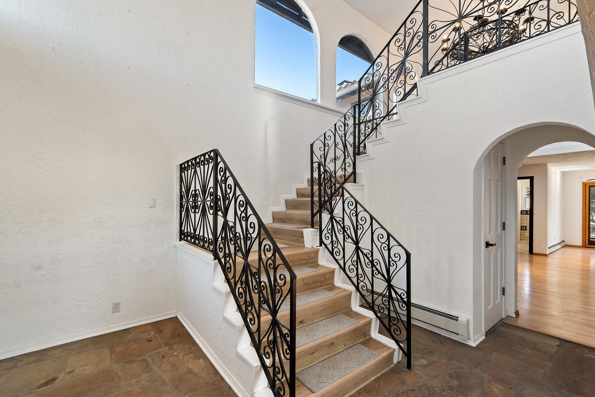 Experience Northern New Mexico living in this beautifully crafted 4-bedroom, two-story stucco home on .83 acres in Velarde. A classic Spanish tile roof, mature landscape, and a welcoming spacious foyer set the tone the moment you walk in. The home offers an ideal layout with a formal dining room for gatherings, a bright kitchen with a cozy breakfast nook, and three fireplaces that create warmth and ambiance throughout.Upstairs, step out onto the rooftop deck and enjoy sweeping valley and mountain views--perfect for stargazing or evening relaxation. The oversized 2-car garage provides ample storage and includes two EV circuits, making it future-ready for modern living.With nearly an acre of space to spread out, this property offers privacy, charm, and room for gardens, outdoor living, or simply enjoying the peaceful surroundings. This Velarde gem blends character, comfort, and a touch of historic style--you'll want to see this one in person.