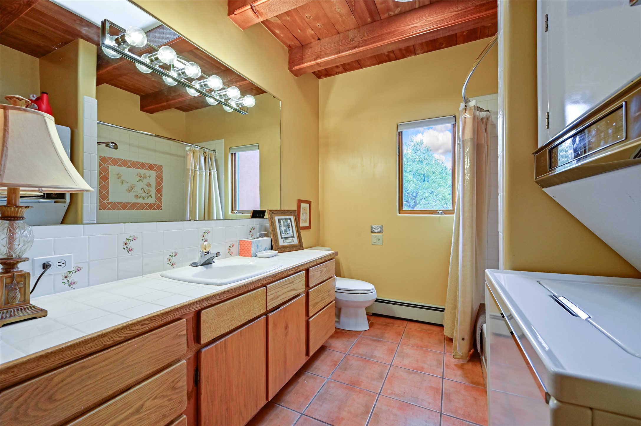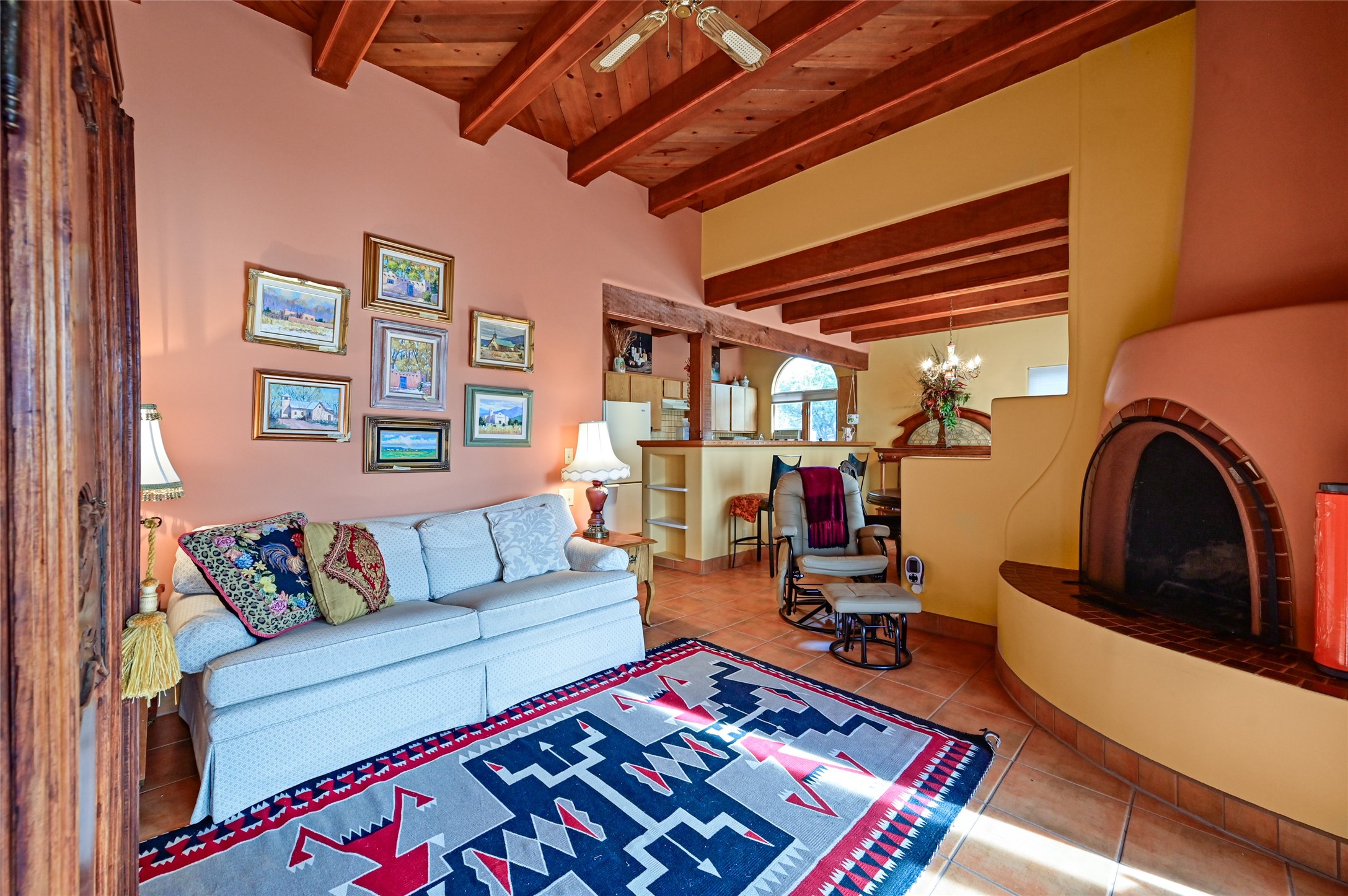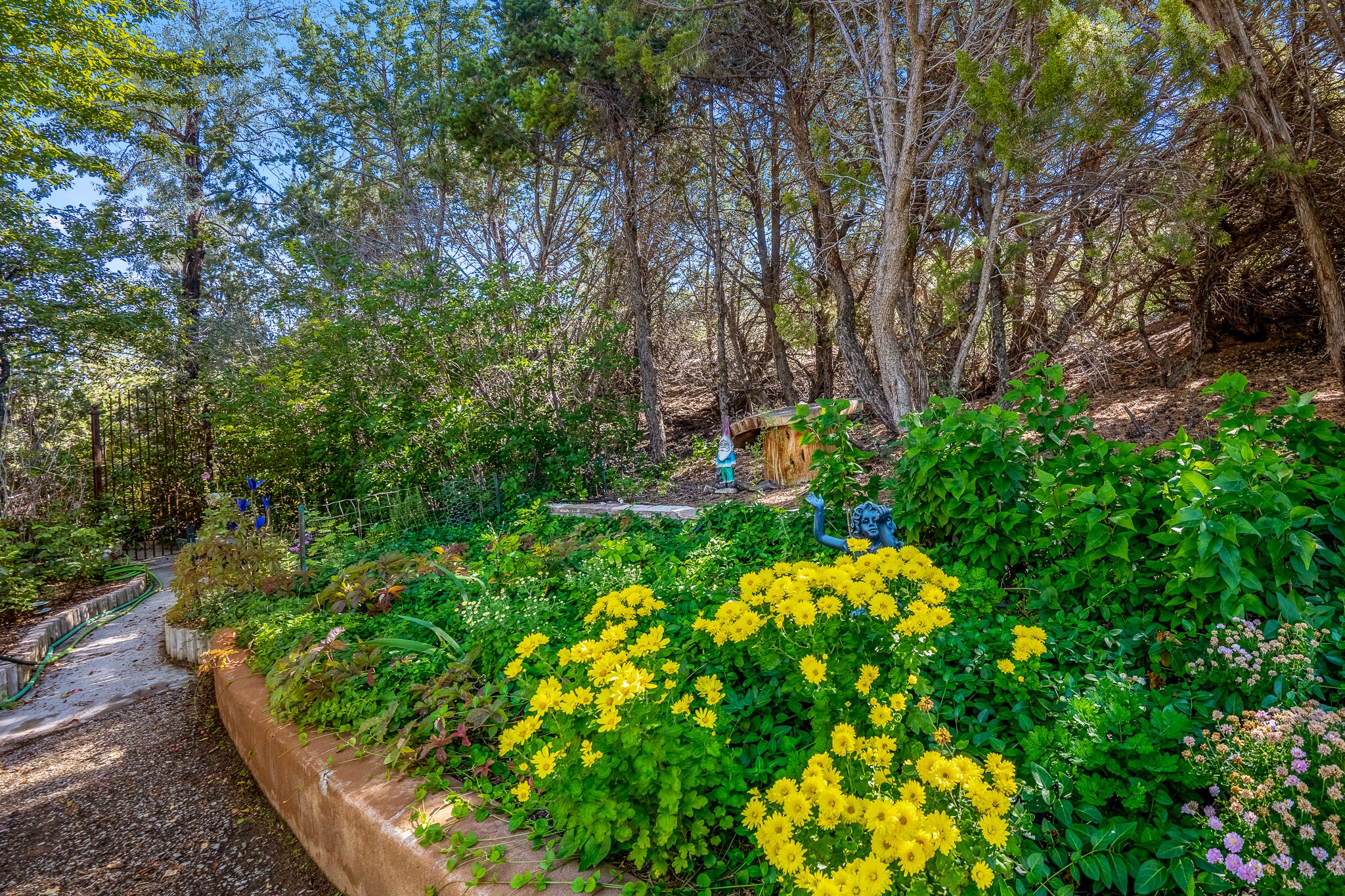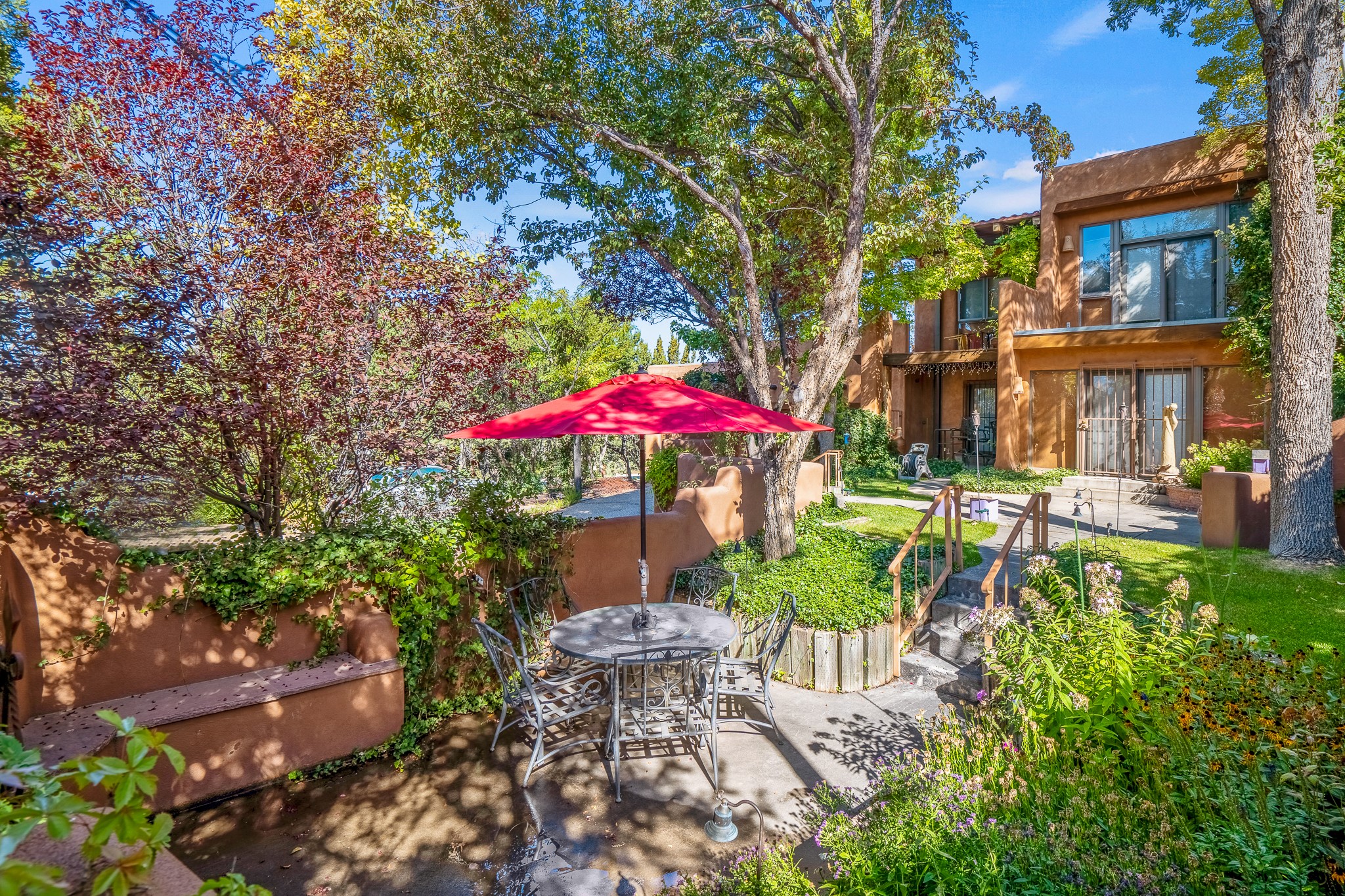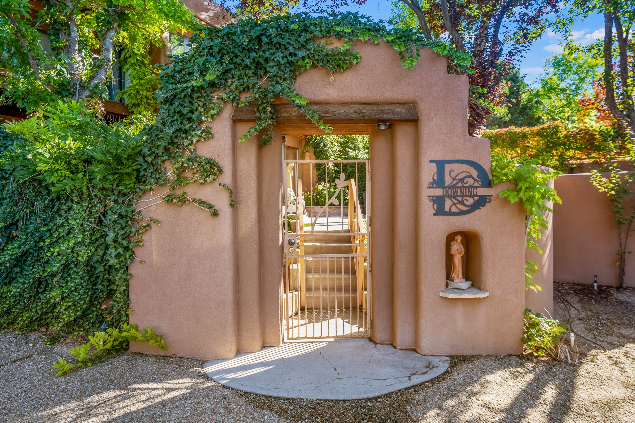 This is a fabulous opportunity to live in a great area and location of the NE side of town that is just minutes to the Plaza and downtown area. Fabulous and long westerly views which includes a beautiful main house, attached guest house, plus attached studio. A large RV Garage plus 3 additional garage bays and lots of additional parking spaces. Private Security entry gate. This home does need some minimal TLC to make it the pristine and cozy home that it is now. The natural light that it has is rarely found in many homes and adds so much to it's charm and character. Easy fit for an on the go professional couple, artist, crafts person, gardener, writer and certainly perfect for entertaining, On City water and has its own Private Well on site.