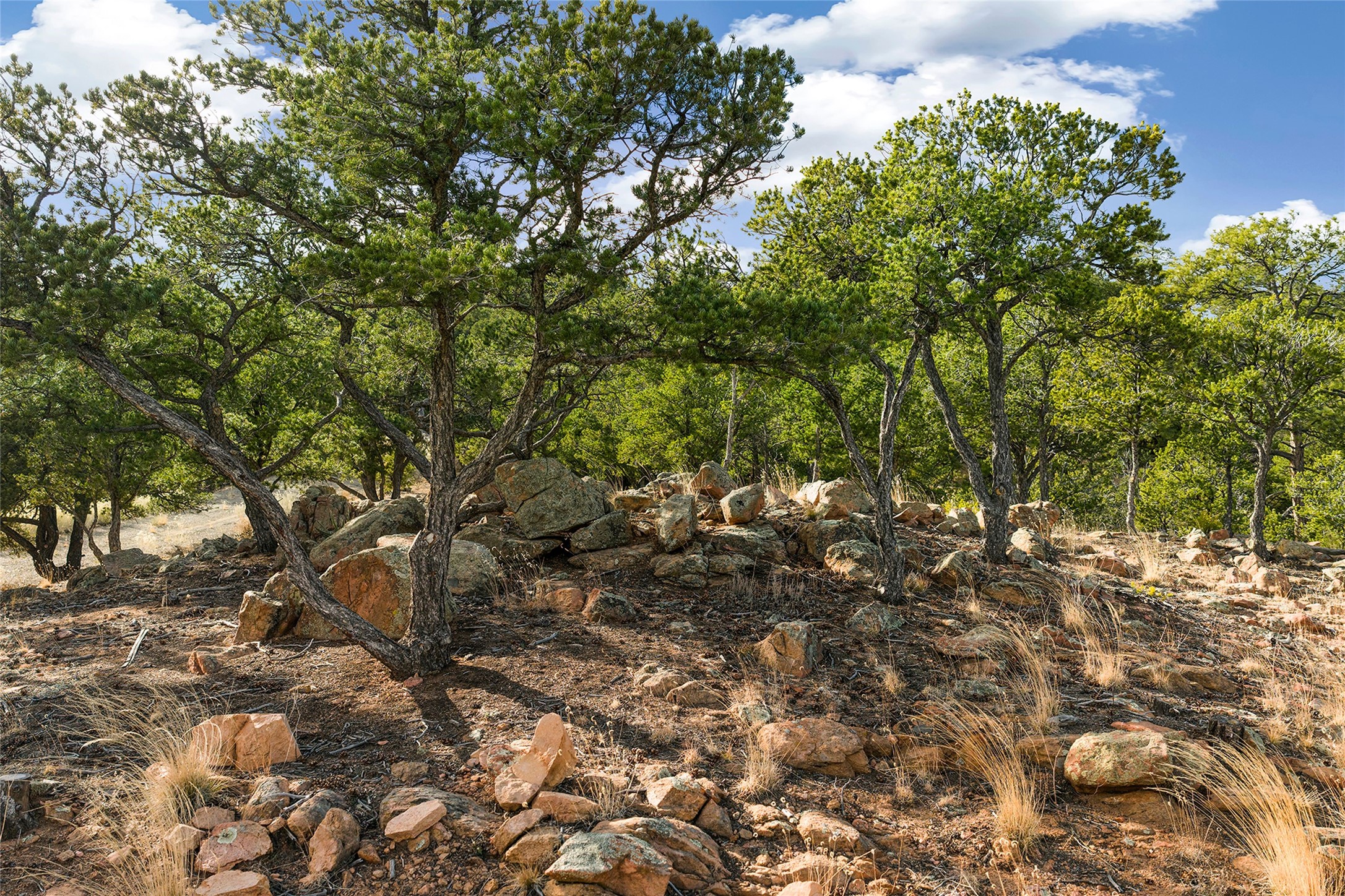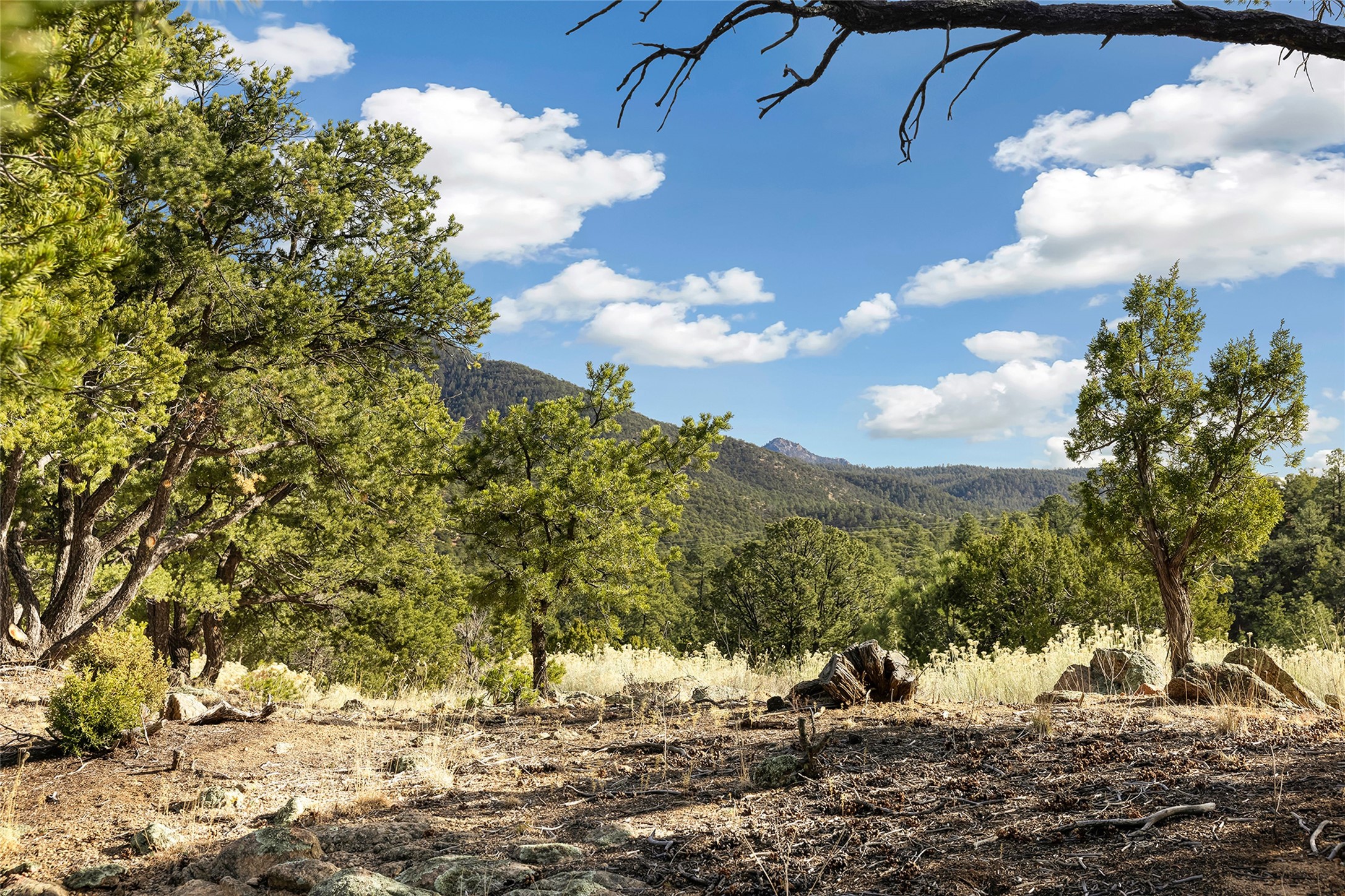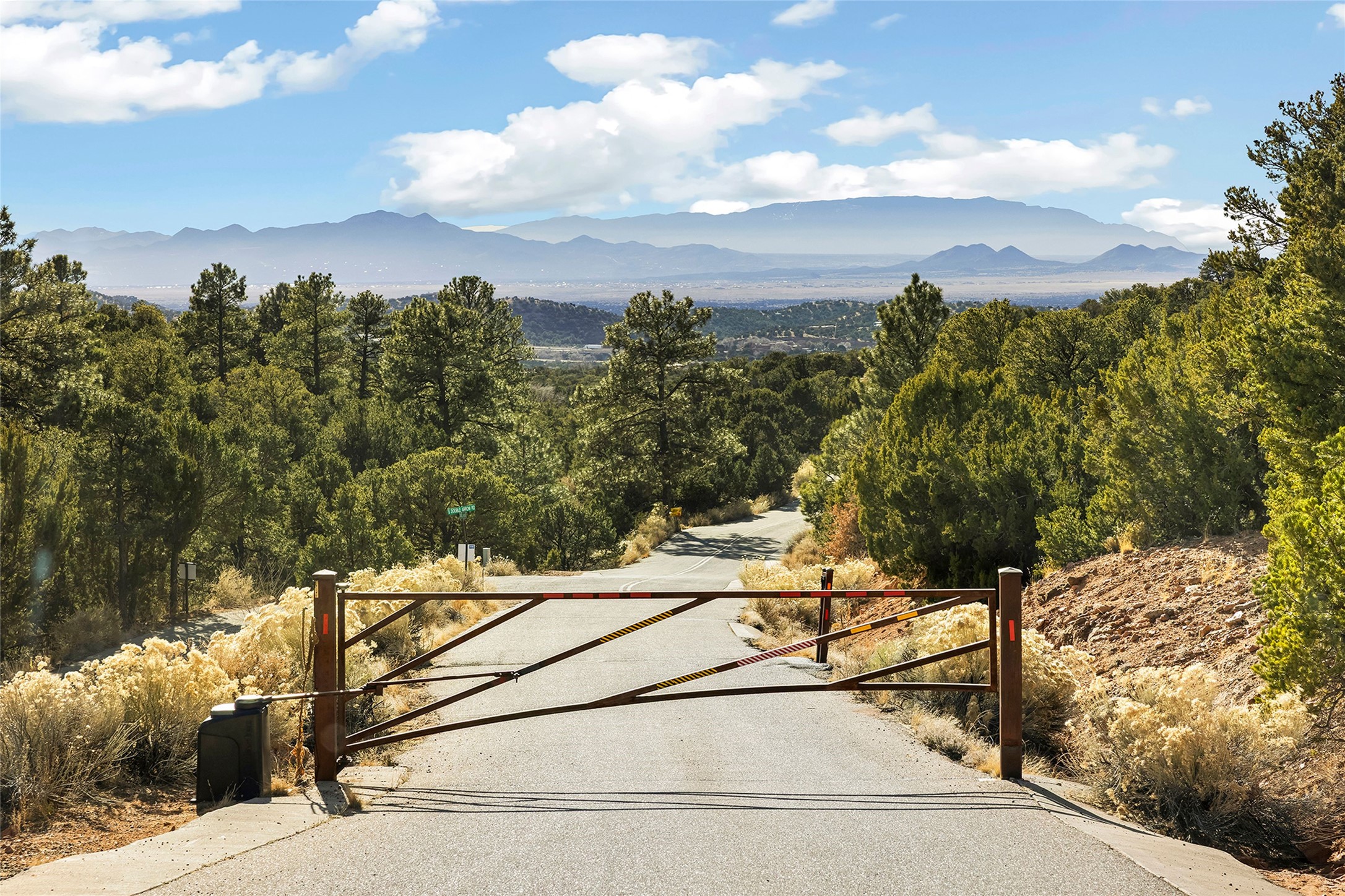 Located at the top of gated Double Arrow Road in the Abajo del Cielo subdivision, this approximately 7.5-acre residential parcel offers exceptional privacy, serenity, and sweeping unblock-able treetop, valley, and high-mountain views. The land features beautiful natural rock formations and Ponderosa Pines, mature pion trees, creating a rich, quintessentially Santa Fe landscape. The building site has been partially cleared to maximize vistas while preserving the wooded terrain, offering an ideal setting for a custom home. Valuable improvements include a septic system and a shared well with one neighbor, providing a significant head start for future construction. Access is convenient, with the road paved nearly to the property; only the last few hundred feet transition to the gravel driveway leading to the homesite. With generous acreage and varied terrain, the property supports thoughtful site design, and outdoor living spaces. Minutes from St. John's College, Museum Hill, and surrounding trail systems, this location blends peaceful seclusion with quick access to the Santa Fe Plaza, Canyon Road, shops, dining, and cultural amenities. A rare opportunity to build in a gated mountain setting off of Old Santa Fe Trail with natural beauty, infrastructure already in place, and no HOA fees, with the exception of shared road maintenance.