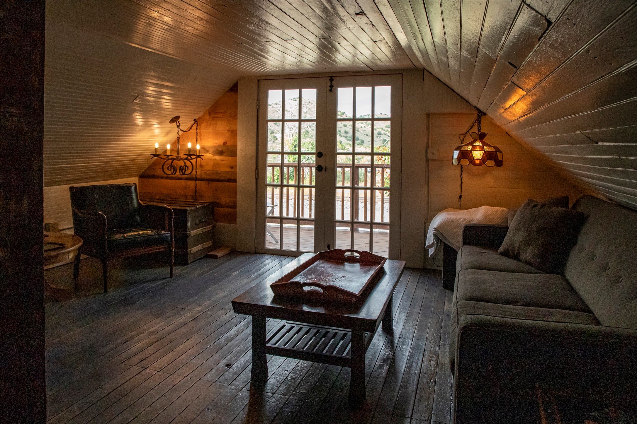 10 Rail Road/45 Main Street is up for sale. This historically rich property sits on the site that was home to the first telegraph and printing office that connected early residents of Los Cerillos with the rest of the world. Predating Columbus , the area has been the the source of the turquoise that traded as far north as modern day Canada, and south, deep into Central America. Later discoveries of gold, silver, coal, and other precious minerals brought in miners by the thousands. A short drive from Santa Fe on the The Turquoise Trail, the residence at 10 Rail Road is a gleaming facet of this lustrous history. Sure to delight those with a taste for adventure, the property also includes an undeveloped address abutting Main Street- ready for a savvy buyer to create with.Lovingly renewed by skilled area craftsmen, and in keeping with the neighborhood flavor, noteworthy emphasis has been placed in the use of original and reclaimed materials while delivering the overdue updating and renovation that leaves the home ready to fulfill the needs of the modern era. Substantial upgrades include new electrical from top to bottom, new plumbing from the meter to the fixtures, a Jotul wood stove and 3 unit GE minisplit system, and new pitched metal roofing to shed our summer monsoons with ease. The layout is conducive to living and working, with the kitchen, bathroom, dining, living room, and two bedrooms downstairs. Upstairs holds the third bedroom/flex room with french doors opening to a deck overlooking the historic railroad that helped shape the region. The Amtrack passenger train still runs twice a day, and the view out to the Cerillos Hills State Park is breathtaking. The back lot with its own county address, is ample, large enough to split off for separate development or to add complementary structures to the existing property. Studio? Workshop? Garages? Gardens? Gallery? With your vision, this property will continue to flourish.