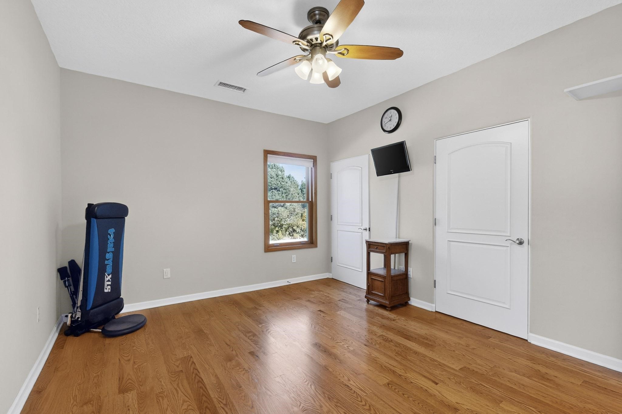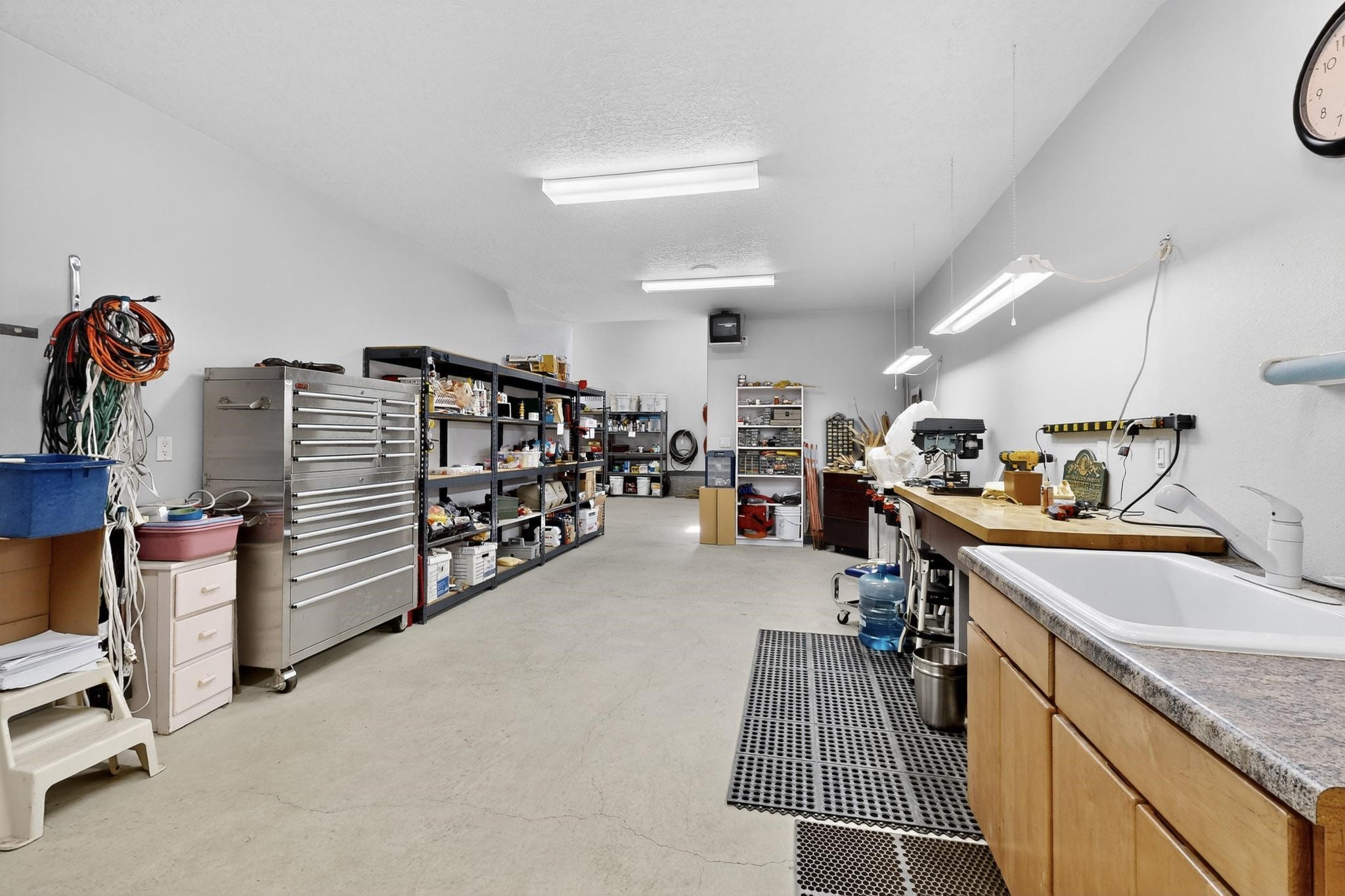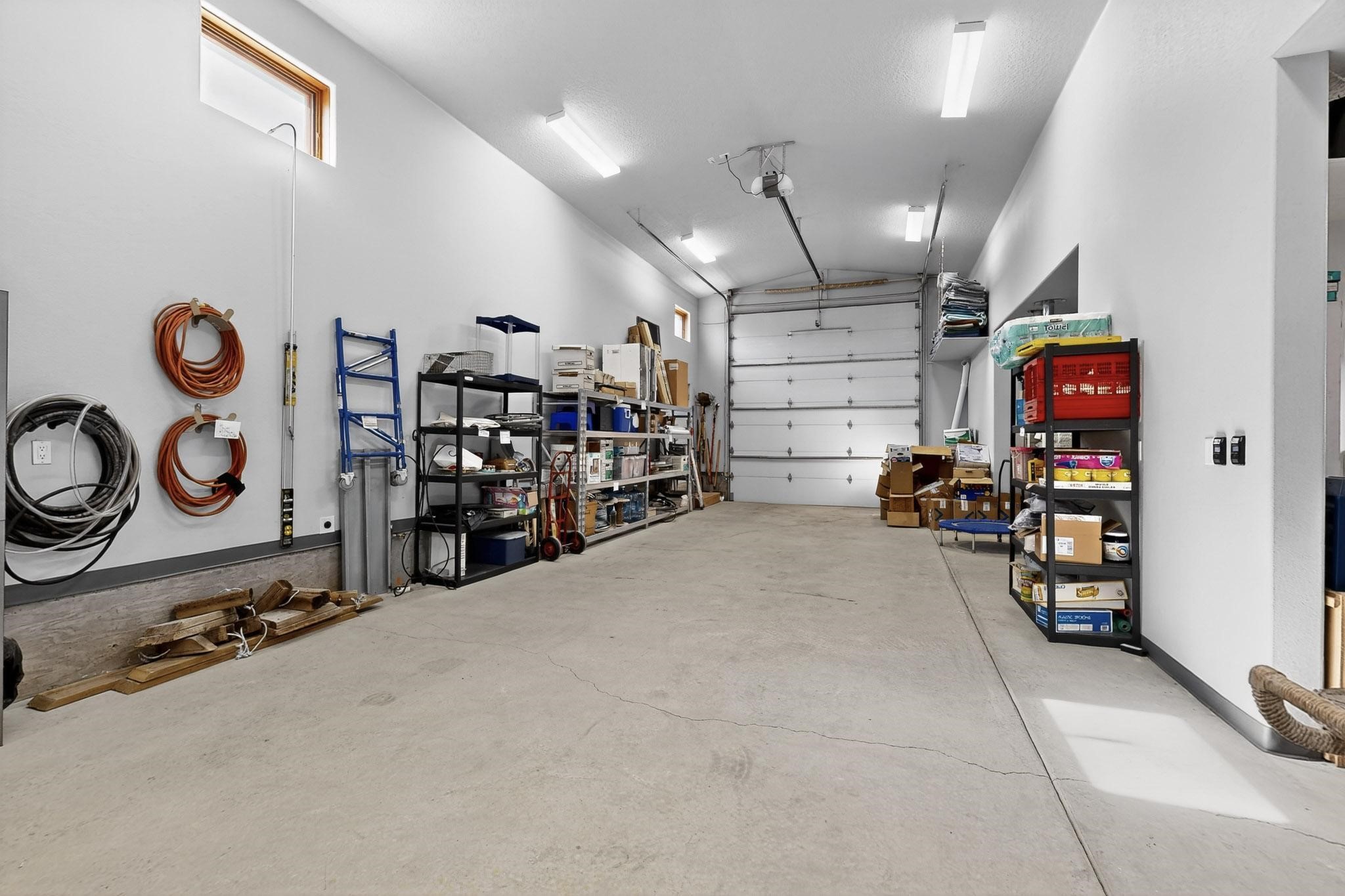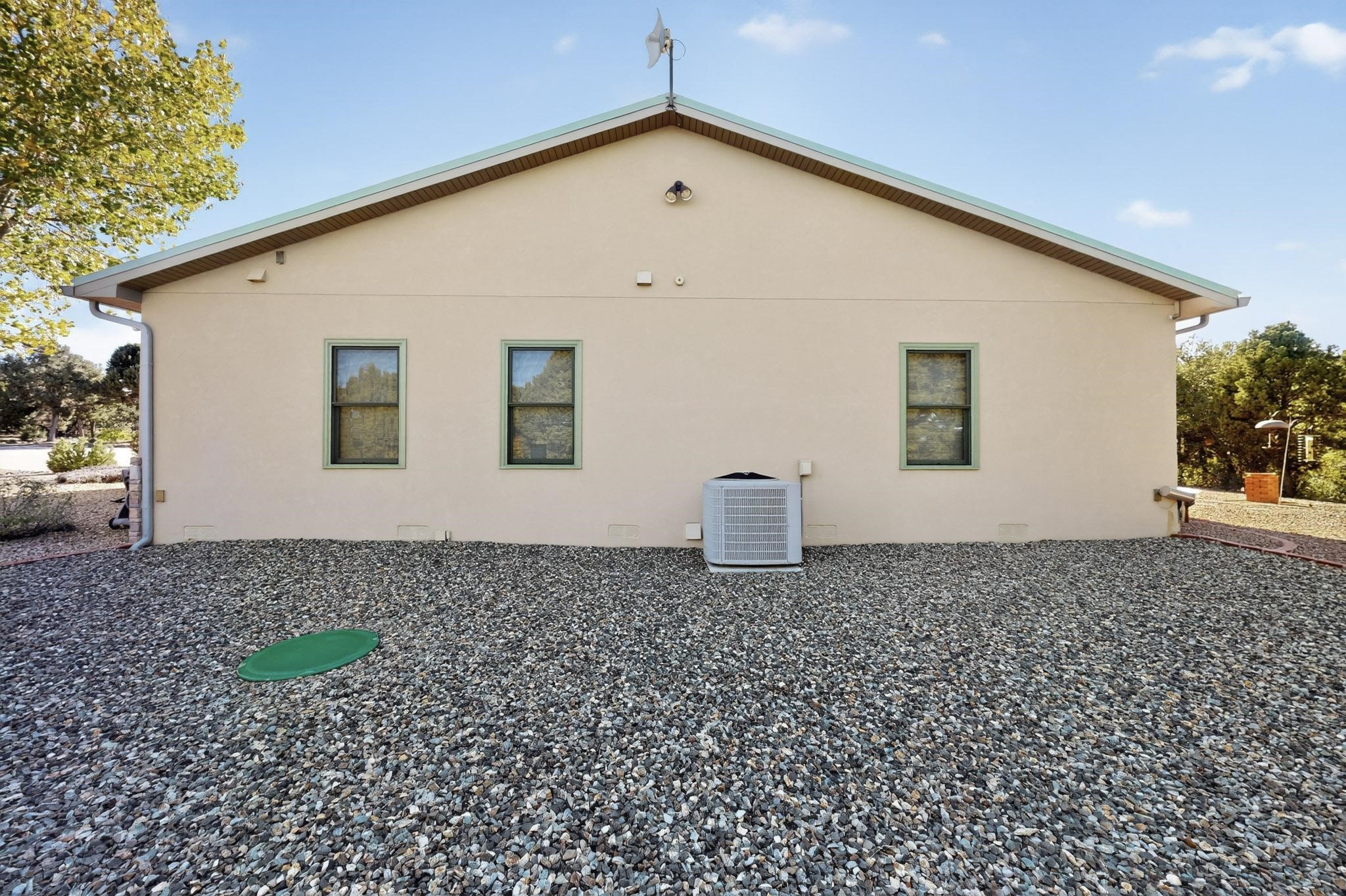 Rare opportunity in Sandia Mountain Ranch for this one-owner, single-level custom beauty on 2 acres, just minutes from Albuquerque. 3634 SF, 3BR + Office, 3 baths and a 2204 finished and insulated garage, workshop and 60' X 17.75' RV garage. The owner spared no expense when building this home - it has so many incredible features. Large cook's kitchen with Kitchen Aid appliances, convection ovens, custom cabinetry with full-extension pull-out drawers, warming drawer, 2 pantries, 3 cm thick granite countertops and a large center island. 3/4'' solid red oak floors in main living areas, dining, halls and bedrooms, natural cork in the kitchen and ceramic tile in wet areas and entry. No carpet in home. Solid wood doors and Eagle thermal, double-paned aluminum clad exterior and wood interior windows throughout.Primary bath features his & hers double sinks, an Aquatic Infinity jetted tub and a large, walk-in/roll-in shower with double showerheads and shower massage units. Large walk-in closets in every bedroom and tons of storage in the entire home. Junior suite with a private bath and walk-in shower.10 kW seller-owned, grid-connected solar power generation system and 18KWh battery backup system makes electric bills non-existent. All new metal Pro-Panel roof and colorguard snow stop system, gutters, downspouts and skylights installed in 2022. High efficiency heating and refrigerated cooling system w/ humidfier, tankless water heaters, and reverse osmosis systems in the kitchen and laundry. Floor warming system under ceramic tile in primary bath, laundry room and garage entry into home. RV garage features 50 amp electrical & water/sewer connection both inside and outside and 12'W x 13'H doors on both ends for easy entrance and exit. Home was thoughtfully designed to be fully handicap accessible. It has been landscaped using Firewise design techniques to create defensible space around the home. Entrances to the property off of both Western Trail Dr. (front) and Sedillo.