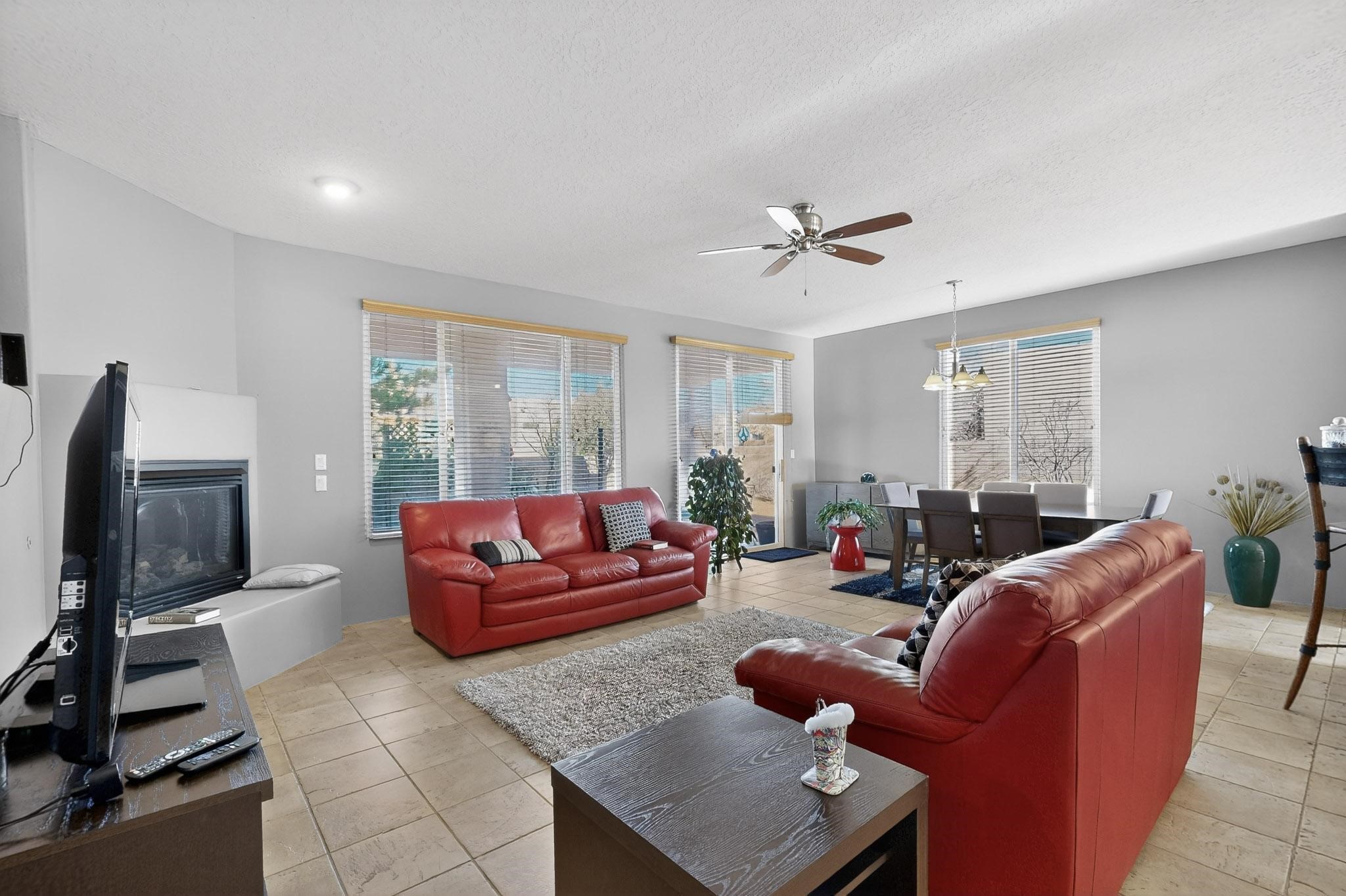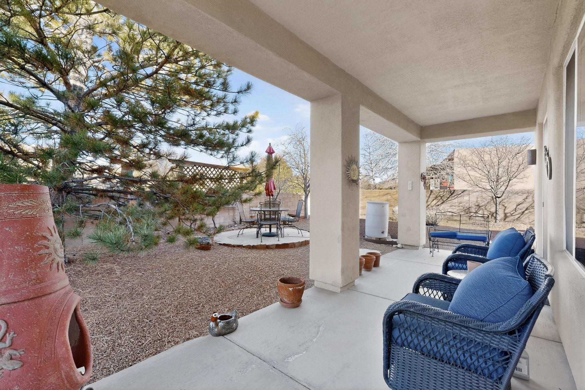 Welcome to this delightful single-level home, thoughtfully cared for and gently lived in. As you step into the inviting foyer, you'll be greeted by an open, airy layout that immediately creates a sense of warmth and comfort. The living area offers a cozy fireplace and a view to the back patio, making it the perfect spot to unwind and enjoy your time at home. The home's neutral color palette compliments tile flooring throughout the main spaces. Adjacent to the living area, you'll find a flexible office or den, ideal for working from home or relaxing with a good book. Home has two well-separated bedrooms plus an office or sitting room. The spacious kitchen features a cozy eat-in nook, perfect for casual meals and morning coffee. Step outside to the beautifully landscaped, low-maintenance yard. The private patio offers a serene outdoor retreat to savor wonderful summer days and evenings. Conveniently located to Santa Fe Community College, dining and shopping amenities. Just a short drive to Highway 599--this location is perfect for commuters to Los Alamos. Santa Fe Downtown Plaza is only about 20 minutes away.