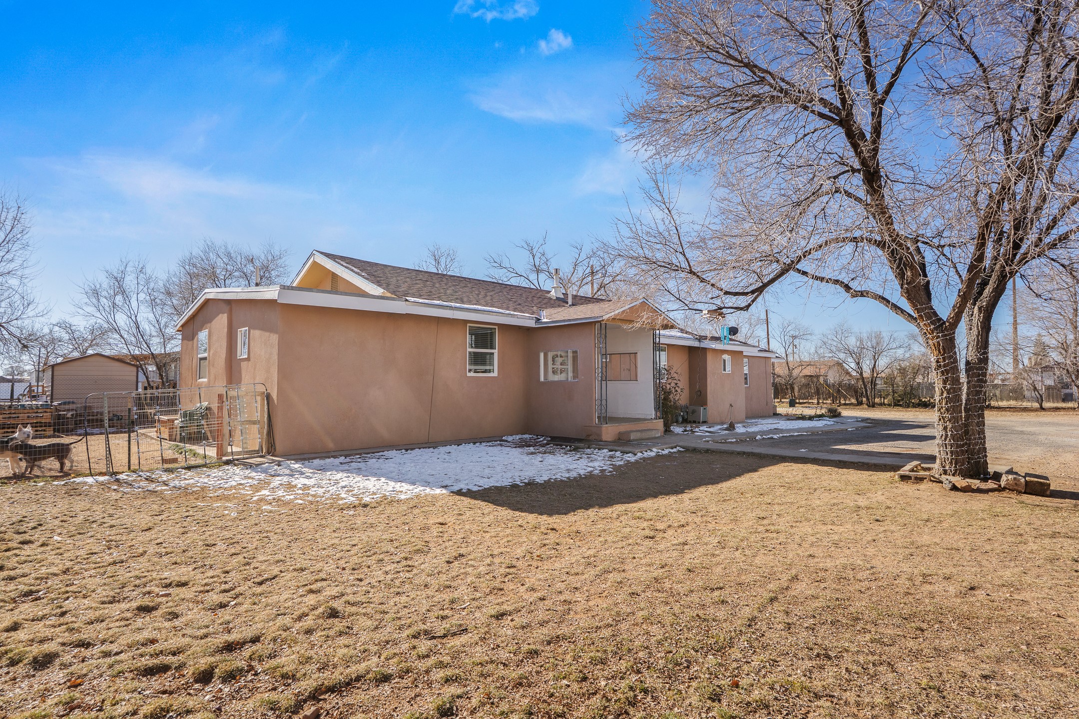 Investor opportunity or multi-generational living on a spacious 0.50-acre lot! This versatile duplex at 4949 Calle Pico offers two well-designed units, each with private outdoor space and strong rental or owner-occupant potential. Unit A (922 sq ft) features 2 bedrooms and 2 baths with a thoughtful split-level layout. Three steps down lead to the kitchen, second bedroom, second bath, and a dedicated laundry room. The unit also includes a fenced backyard, perfect for pets, gardening, or relaxing outdoors. Unit B (1,144 sq ft) offers 4 bedrooms and 2 baths, providing generous space for larger households or strong rental appeal. This unit enjoys a large fenced backyard, ideal for entertaining, play, or future landscaping possibilities. Set on a half-acre lot, this property offers privacy, flexibility, and room to grow, whether you're looking to live in one unit and rent the other, accommodate extended family, or expand your investment portfolio. A rare find with space, function, and opportunity all in one.