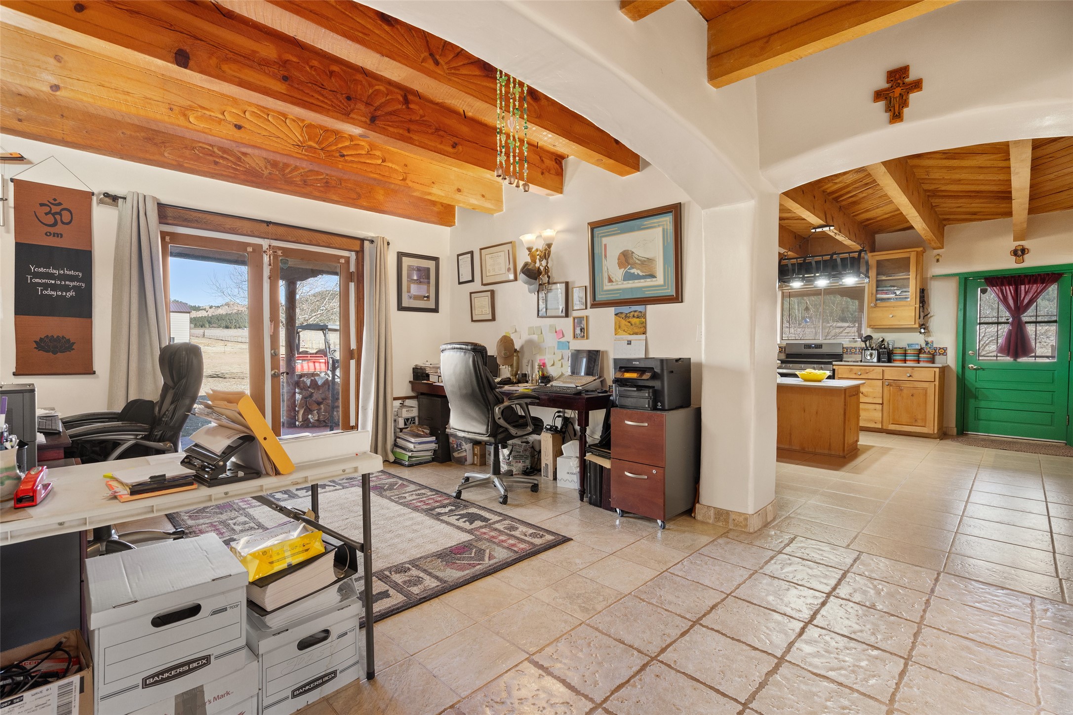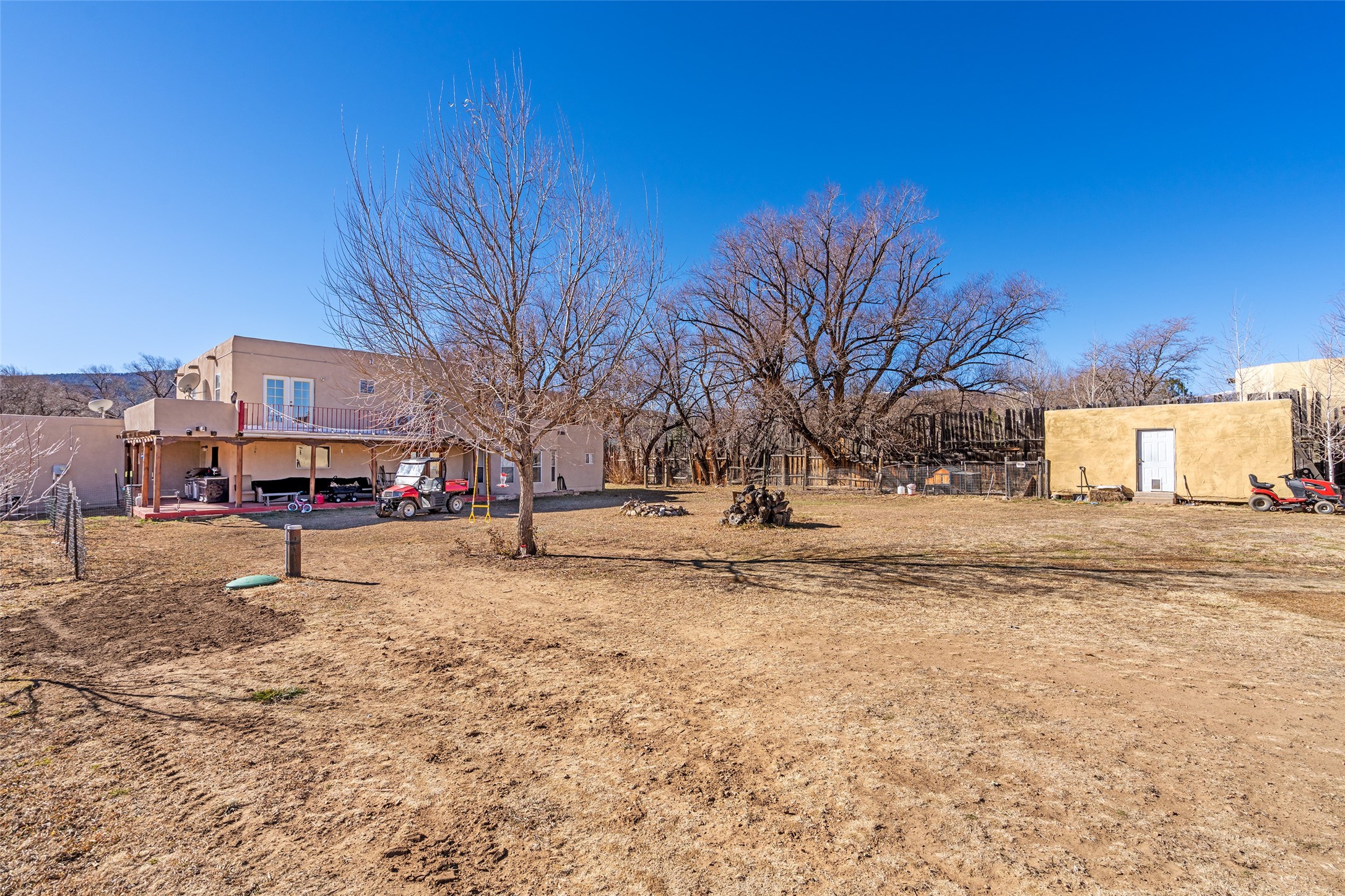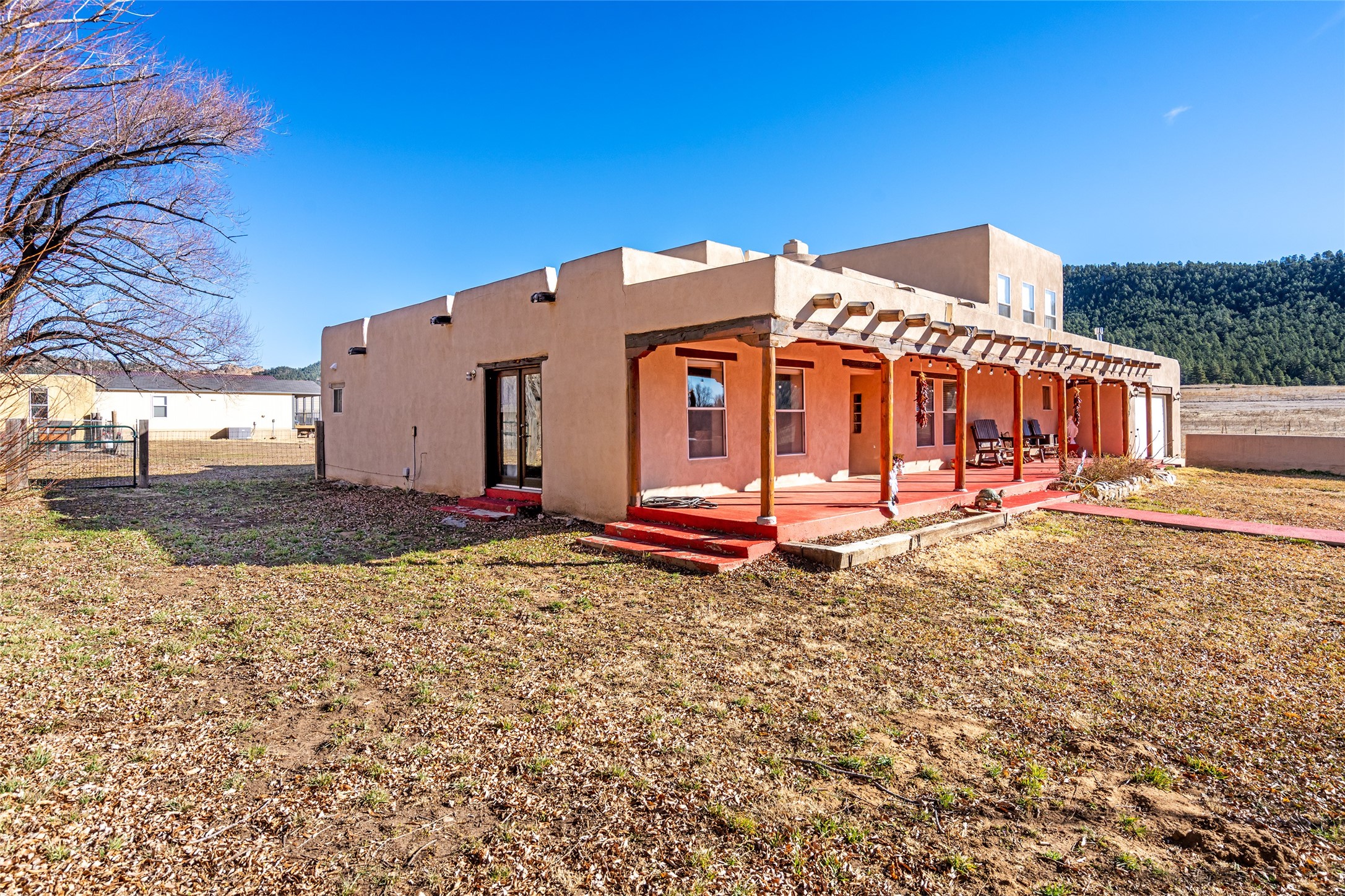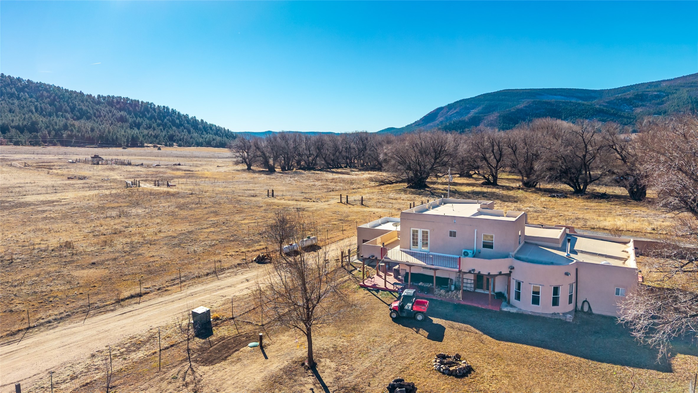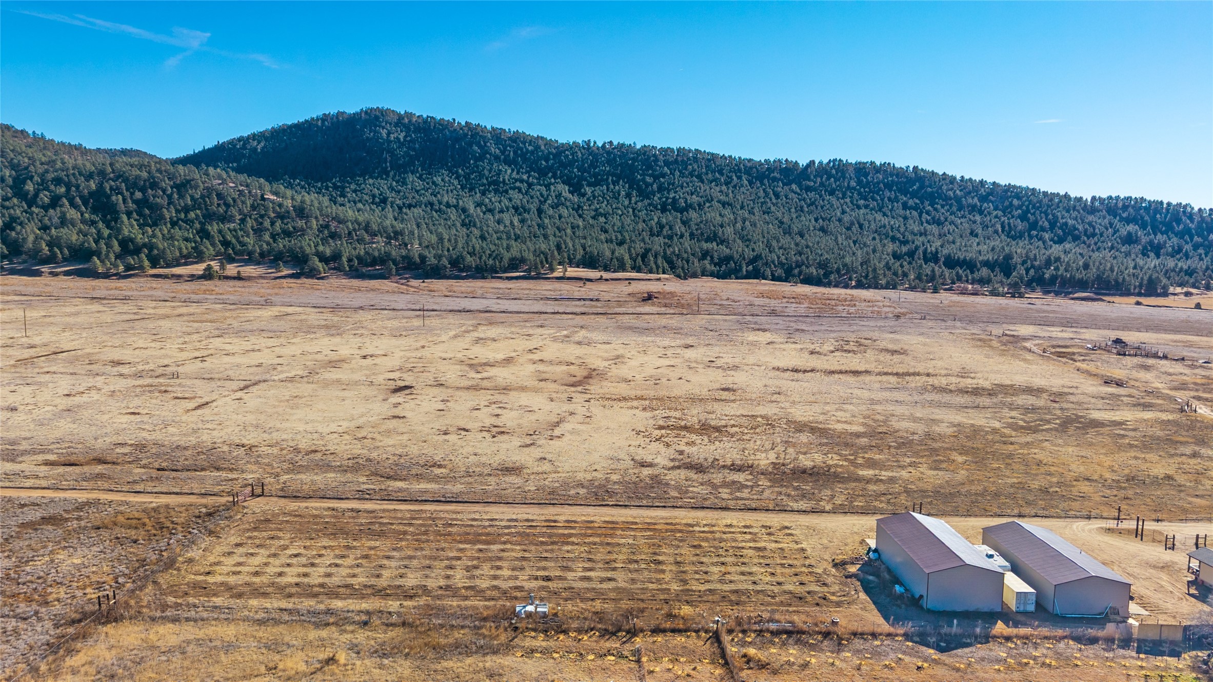 Located in Ledoux, this modern two-story Santa Fe-style estate pairs refined living with a true, working agricultural setup. The main residence spans approximately 3,046 square feet and offers 3 bedrooms and 3 baths, a welcoming front courtyard, and a two-car garage. Thoughtful design elements and elevated views create a home that feels private, open, and built for everyday comfort as well as entertaining. Beyond the main house, the property is equipped for serious, year-round operations. A separate manufactured guest home provides 1 bedroom and 1 baths--ideal for extended family, staff housing, or flexible rental use. Two commercial-grade barns one with climate control and one with dedicated administrative areas support efficient production, storage, and management in every season. The land is flat, usable, and well-suited for equipment access, planting, and expansion. A permitted agricultural well anchors the property's long-term utility and makes this more than a beautiful residence-it's a rare opportunity to own a one-of-a-kind agricultural compound with infrastructure already in place. Enjoy wide-open skies, space to grow, and the convenience of being within reach of Northern New Mexico's towns, recreation, and culture. Properties with this combination of home, guest quarters, and commercial AG facilities are exceptionally hard to find.