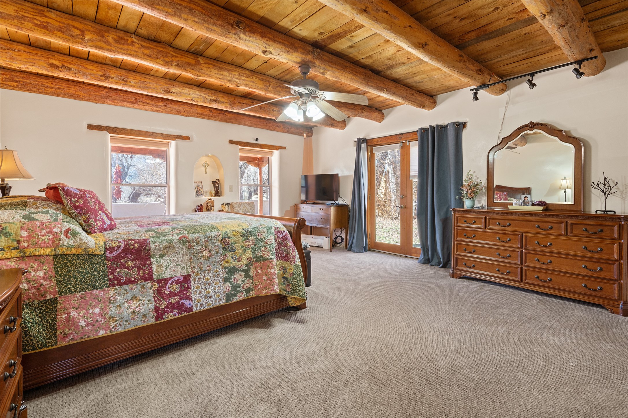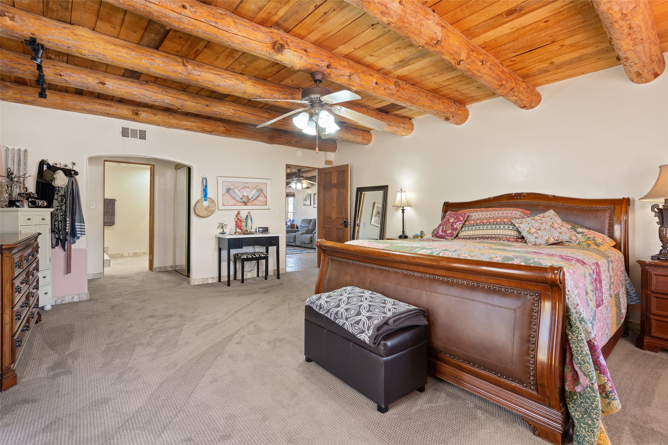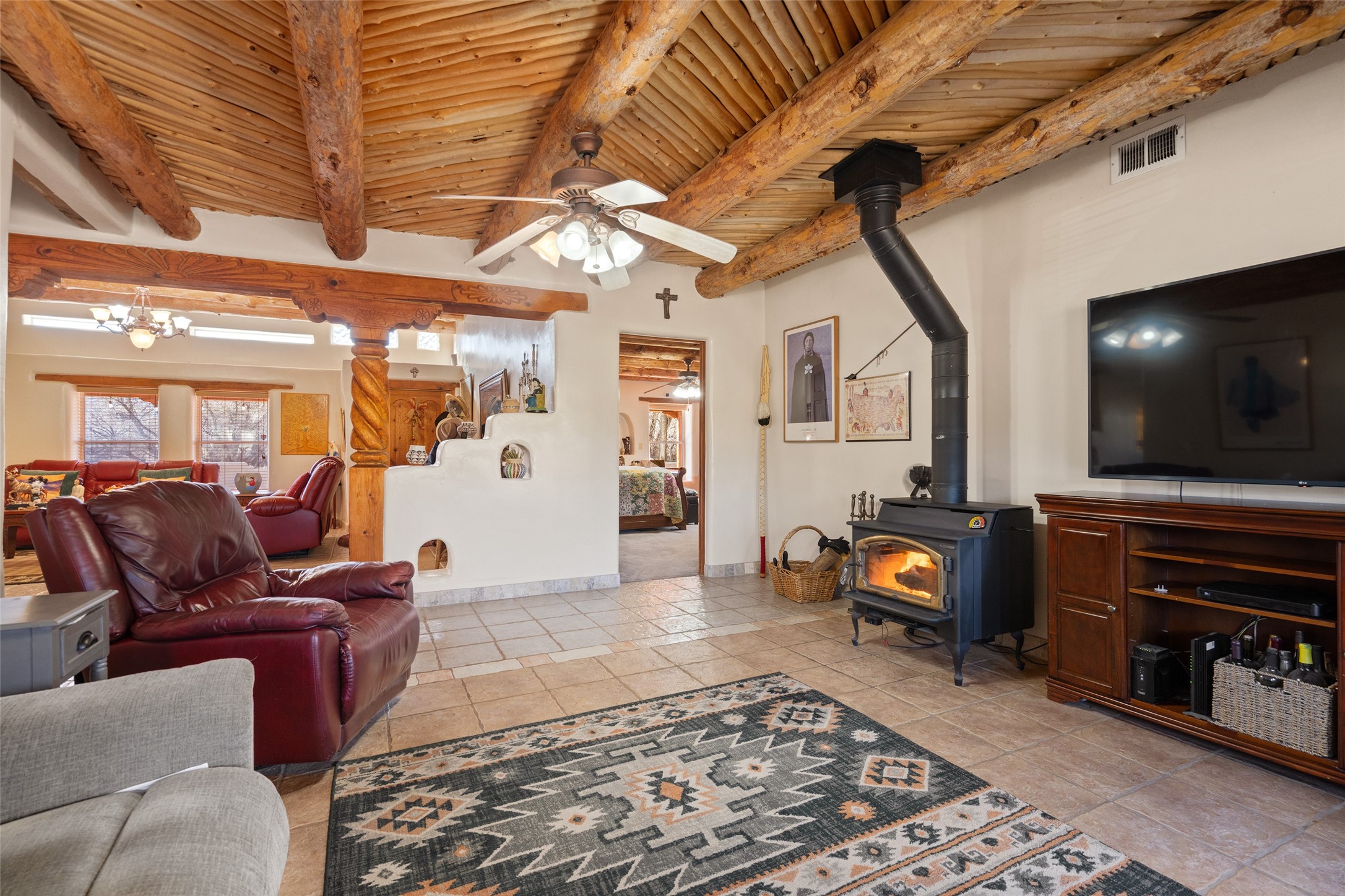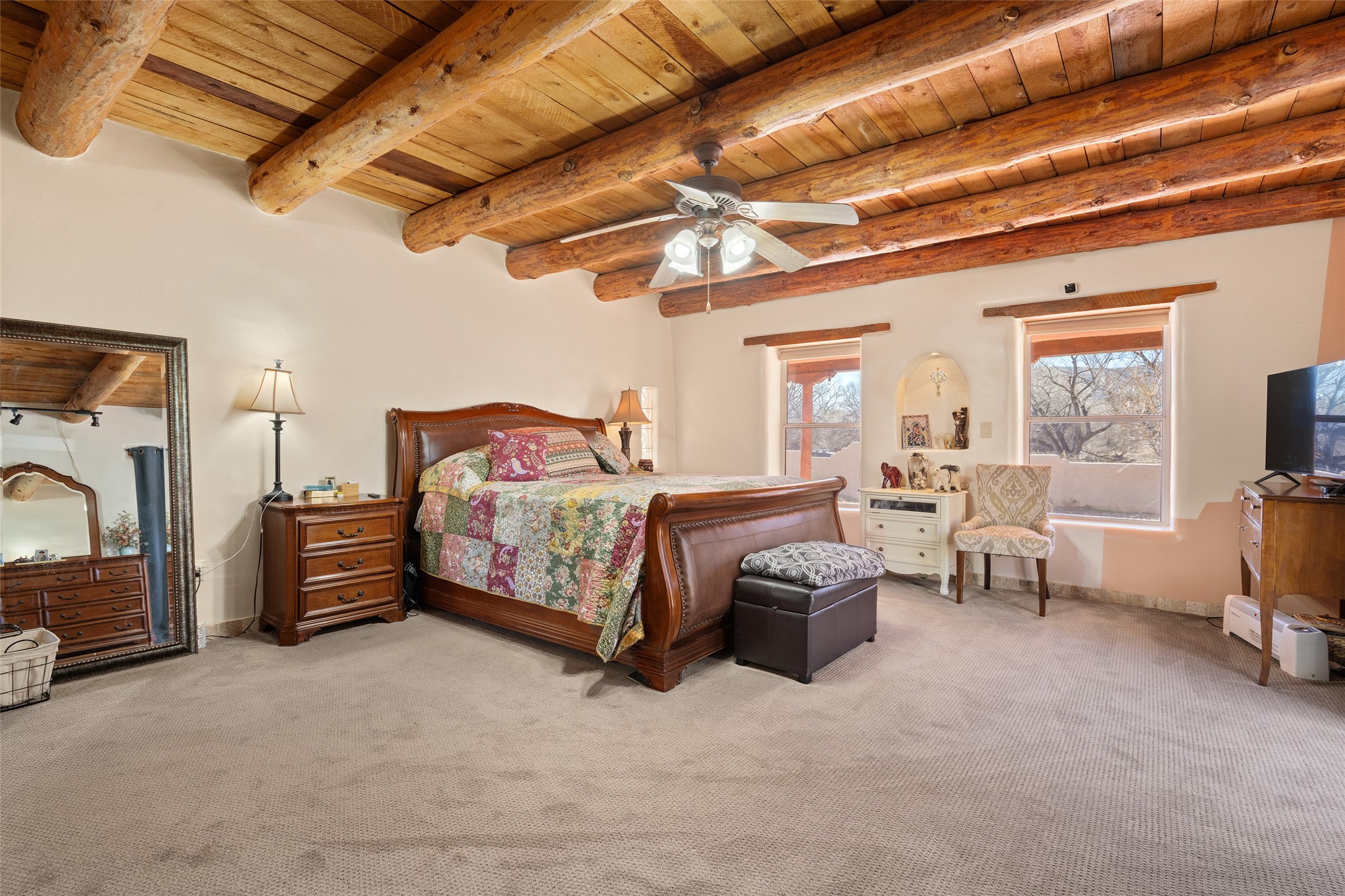Located in Ledoux, this modern two-story Santa Fe-style estate pairs refined living with a true, working agricultural setup. The main residence spans approximately 3,046 square feet and offers 3 bedrooms and 3 baths, a welcoming front courtyard, and a two-car garage. Thoughtful design elements and elevated views create a home that feels private, open, and built for everyday comfort as well as entertaining. Beyond the main house, the property is equipped for serious, year-round operations. A separate manufactured guest home provides 1 bedroom and 1 baths--ideal for extended family, staff housing, or flexible rental use. Two commercial-grade barns one with climate control and one with dedicated administrative areas support efficient production, storage, and management in every season. The land is flat, usable, and well-suited for equipment access, planting, and expansion. A permitted agricultural well anchors the property's long-term utility and makes this more than a beautiful residence-it's a rare opportunity to own a one-of-a-kind agricultural compound with infrastructure already in place. Enjoy wide-open skies, space to grow, and the convenience of being within reach of Northern New Mexico's towns, recreation, and culture. Properties with this combination of home, guest quarters, and commercial AG facilities are exceptionally hard to find.