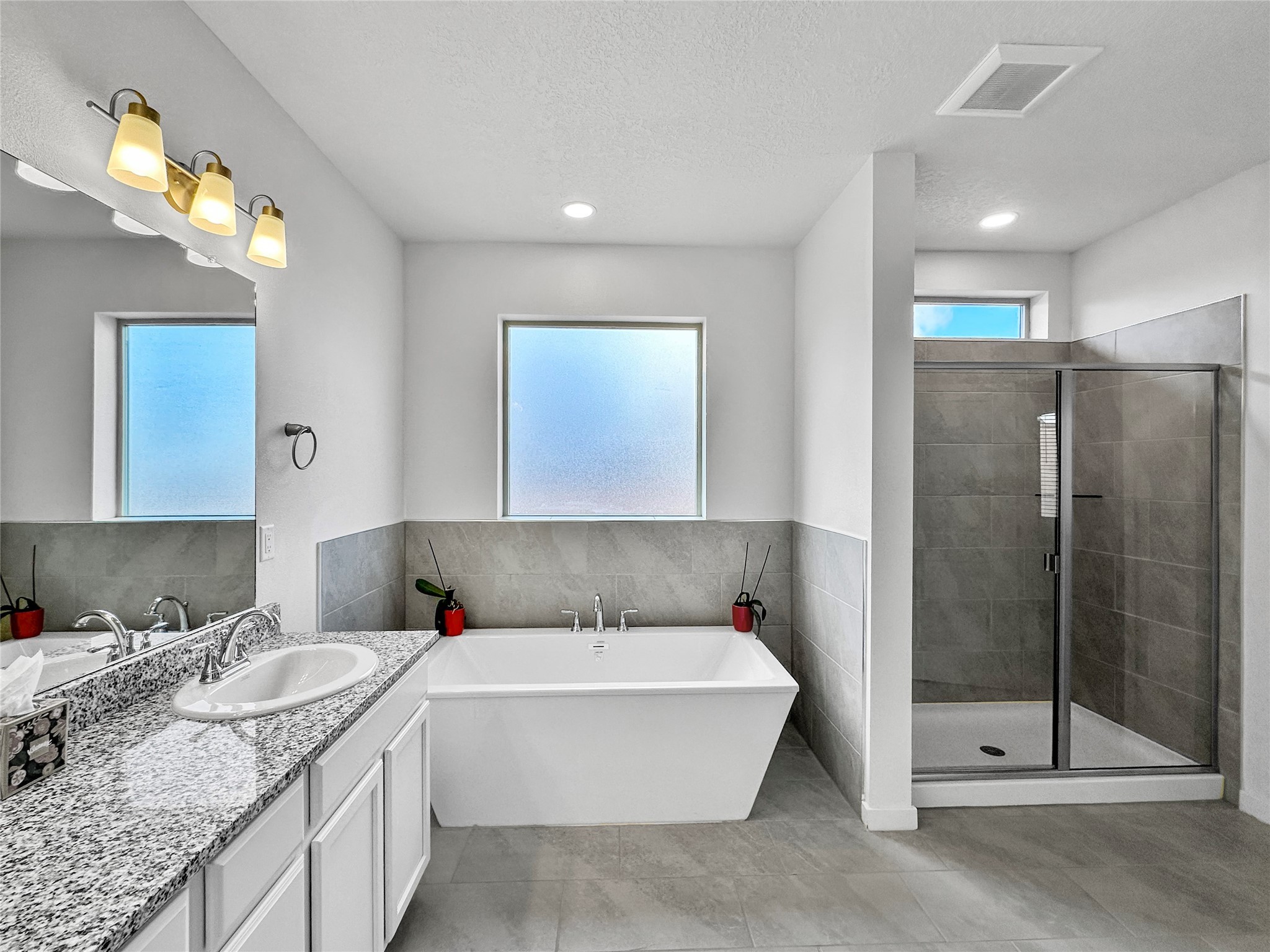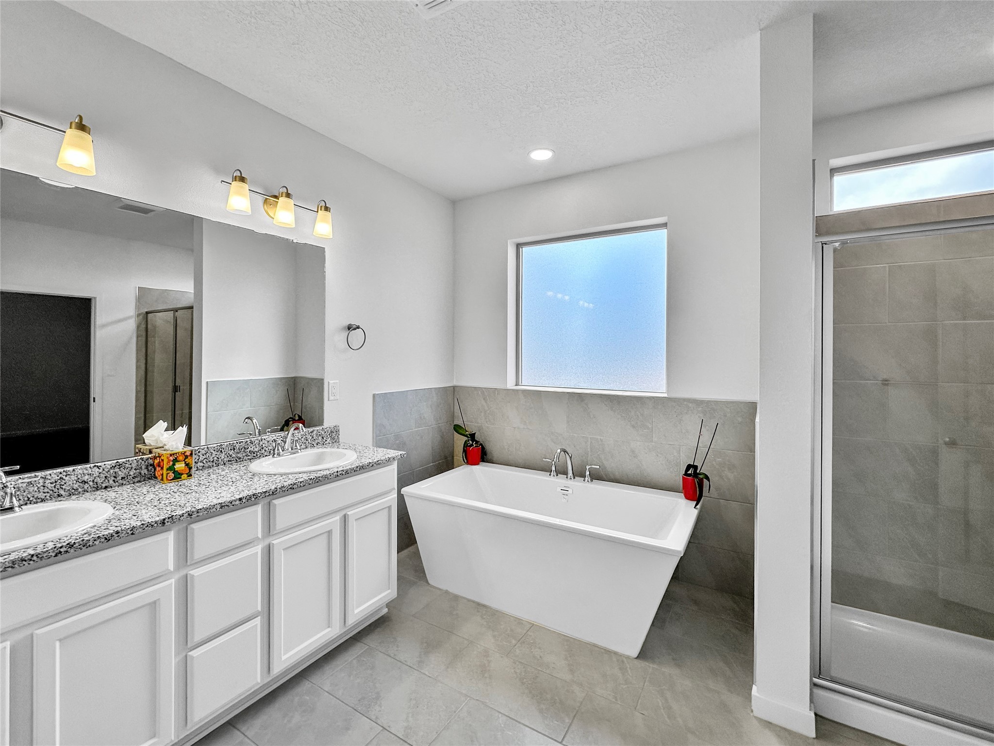 Come see this stunning like-new home with all the space you might need. Step into the large entry hall that provides private separation between the common areas and the front door. Once in the spacious living room, you'll be greeted by some of the numerous touches that make this home special such as the nicho with display light, high ceilings, and large covered portal. The kitchen features an oversized pantry and is conveniently across the the laundry room that has an additional storage closet. The expansive primary suite includes a garden tub as well as a walk in shower and all the bedrooms generously sized in this thoughtfully built home; make it yours before it's gone!