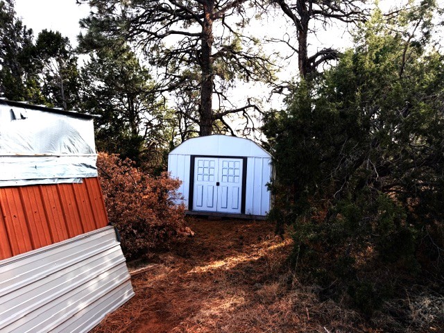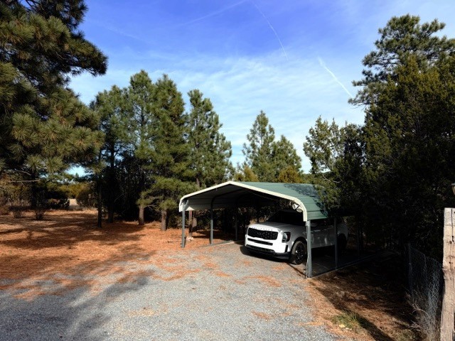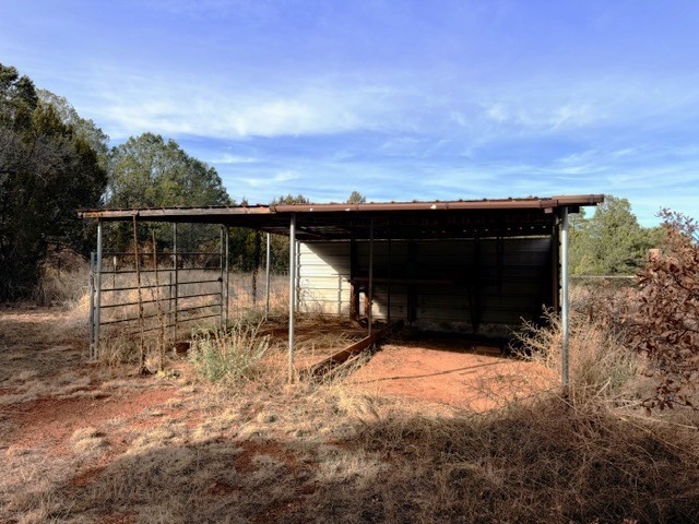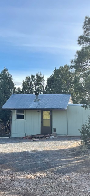 Perched in the wooded area of Ojitos Frios, this rural home with views of the surrounding hills offers tranquility with easy access to Las Vegas, Santa Fe, and beyond. Enter a spacious living area, which leads to an eat-in kitchen. Laundry room off the kitchen has a convenient central location. The primary bedroom suite is on one side of the house, two additional bedrooms with full bath are on the other. Central forced air heat, propane wall heater in primary bath, community water, and propane. A partially enclosed porch runs the length of the front of the home, and there is a flag-stoned patio in the back. A two-car carport services the house. The 5.12 acres also host a large 3-car garage with loft and extra attached storage room and an adorable casita with living area/bedroom, kitchen, and full bath. There are also a storage shed and a partial shelter originally used for horses. Come see it today while it's still available.