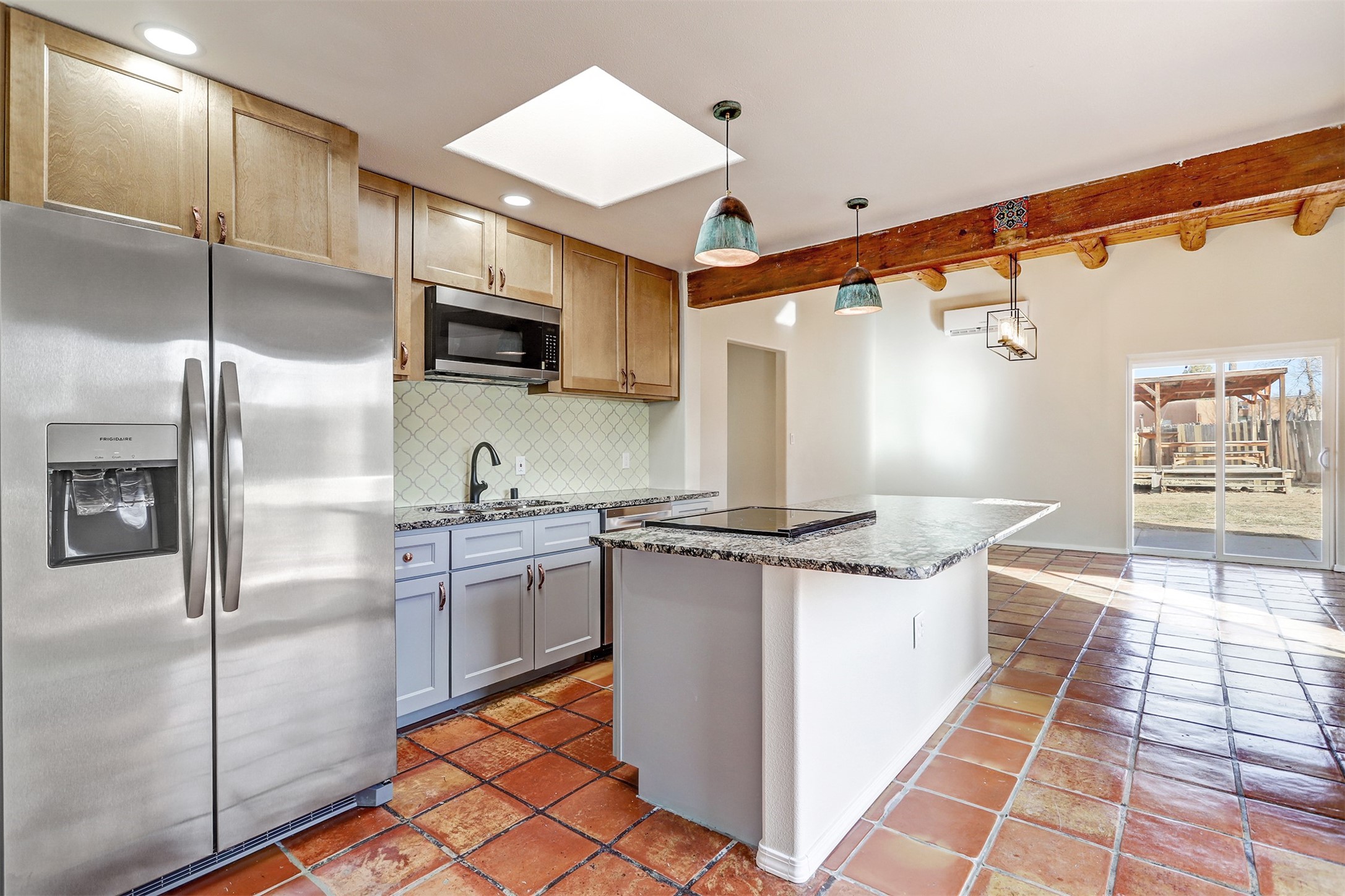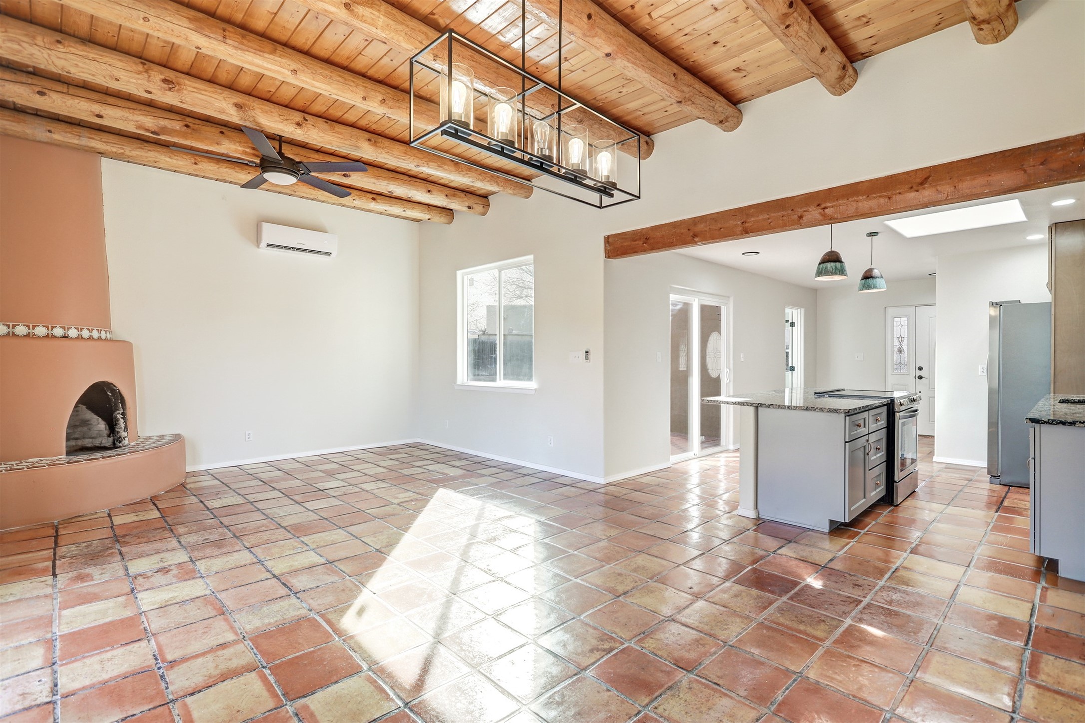 Welcome to this beautifully updated Santa Fe home, where classic Southwestern charm meets modern comfort. Perfectly situated in a central and well-connected area, this property offers easy access to shopping, dining, trails, and everyday amenities while maintaining a peaceful residential feel. A nearby park makes this an ideal setting for evening walks, outdoor enjoyment, and taking in Santa Fe's stunning sunsets. Inside, the thoughtfully designed layout features four spacious bedrooms and inviting living areas ideal for both entertaining and everyday living. The stunning kiva fireplace serves as a warm focal point, adding authentic character and cozy ambiance during cooler months. Saltillo tile flooring in select areas, combined with fresh interior and exterior paint, creates a bright, refreshed atmosphere with timeless Southwestern appeal. The updated kitchen is ready for all your culinary adventures, featuring new countertops, new cabinetry, and new stainless steel appliances. Remodeled bathrooms, updated light fixtures, and new carpet in the bedrooms enhance comfort and livability throughout the home. A new mini-split heating and cooling system installed on 11/2025 provides efficient, year-round climate control, and the home features a newer roof 04/2025. Set on a generously sized lot, the expansive backyard offers convenient backyard access and excellent flexibility--perfect for outdoor entertaining, gardening, additional parking, or creating your own private retreat. With its thoughtful updates, abundant outdoor space, and desirable location near parks and amenities, this move-in-ready Santa Fe home is a wonderful opportunity to enjoy comfort, character, and convenience all in one.