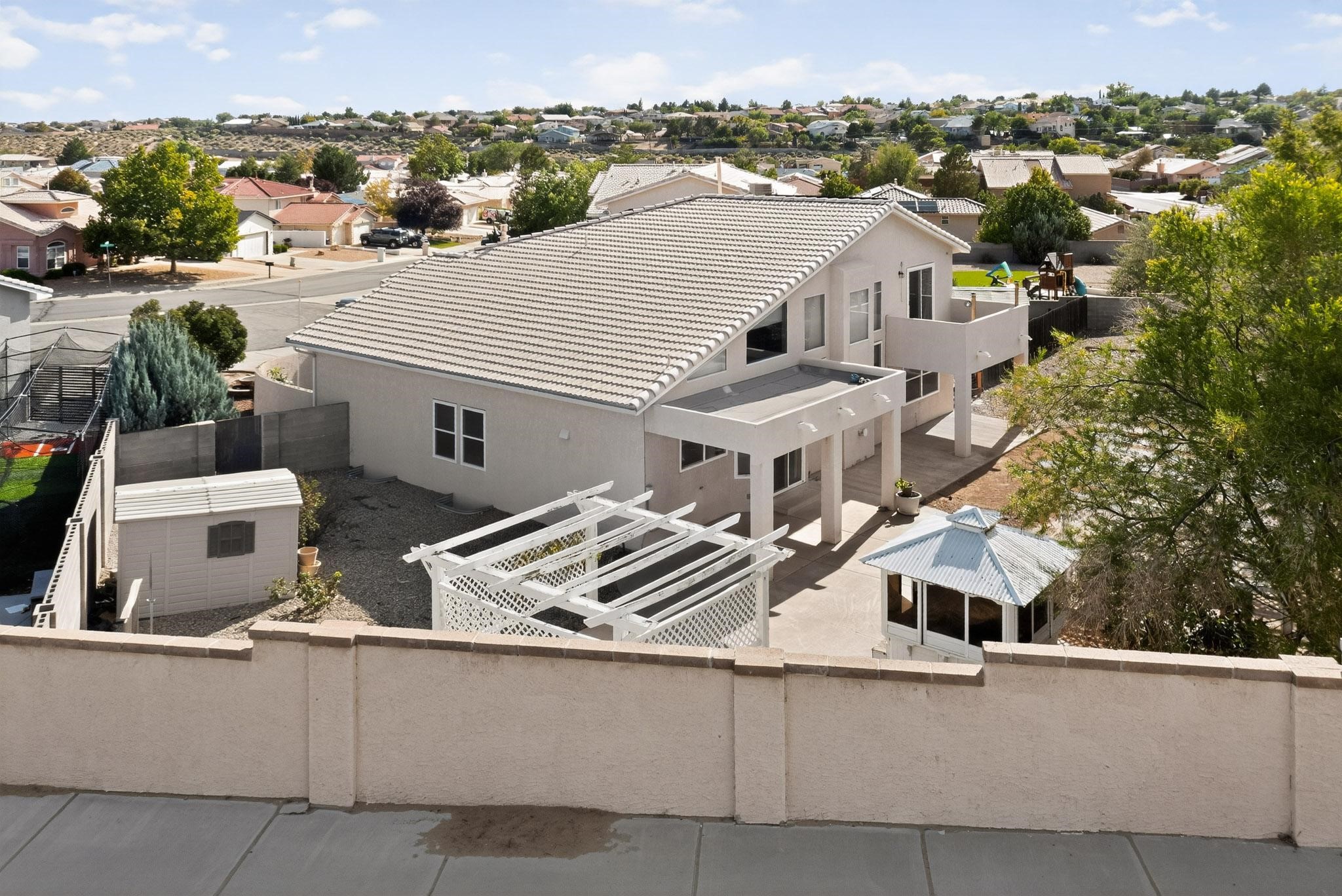 Exclusive 5-bedroom multigenerational Estate on a spacious -acre lot in a prime location! This bright, custom home features 3 living areas, an updated kitchen open to a den with high ceilings , and a large finished basement with a rec room and fifth bedroom. Home has 2 REFRIGERATED AIR UNITS and 2 Water heaters, one of them being brand new. Enjoy the outdoors with mature fruit trees, two pergolas, a covered patio, and RV side-yard access with a dedicated pad. The private primary suite includes a balcony overlooking the lush backyard. Perfect for extended families or those needing flexible space. Walking distance to schools and shopping, and just minutes from malls, restaurants, and the hospital. Assumable VA loan at a 3.75% NON Veterans can assume too! Come see this home!