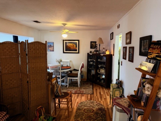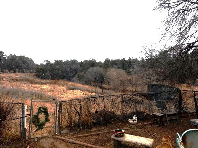 If you are looking for peace and quiet, lovely views that include sunsets, come and look at this house! Enjoy the joys of small-town life in this charmer! Situated east of the center of Pecos and the Pecos River in East Pecos, there are mountain views from the property, and the surrounding properties have beautiful rock formations. Two bedroom, one bath, large living room which is a later addition to the main house. The main house has a second living area with dining area. The country chicken sink is the focal point of the kitchen. The older/smaller living area could potentially be turned into a third bedroom. New laminate flooring in the whole house, new toilet, and new hot water in 2022-23. Partially enclosed front porch. A large building in the back is divided into two spaces, a studio on one side and storage on the other. It has electricity, and heating on the right (larger) side. The property is completely fenced, with an apple tree, dwarf crabapple, and grape vines.