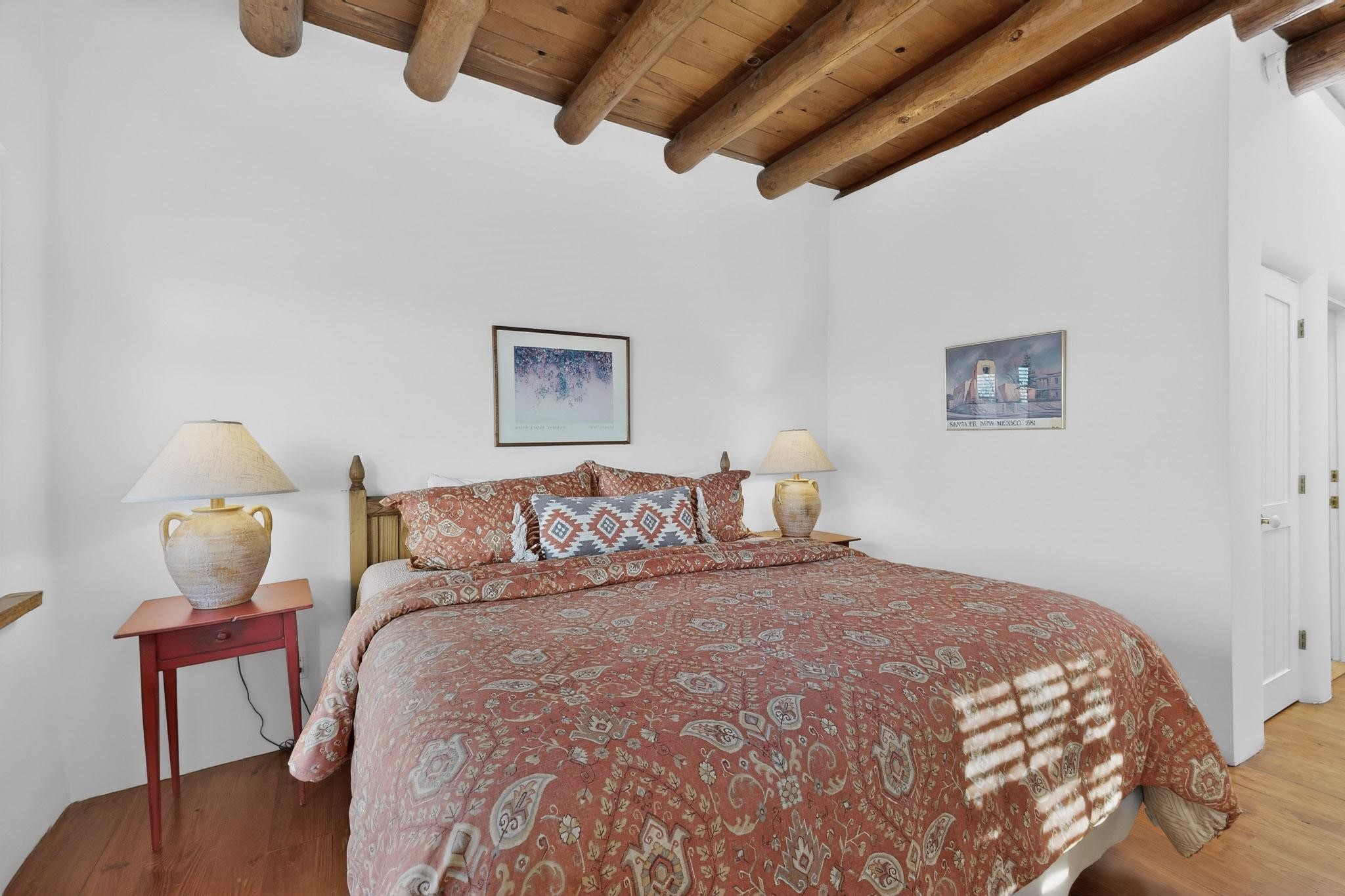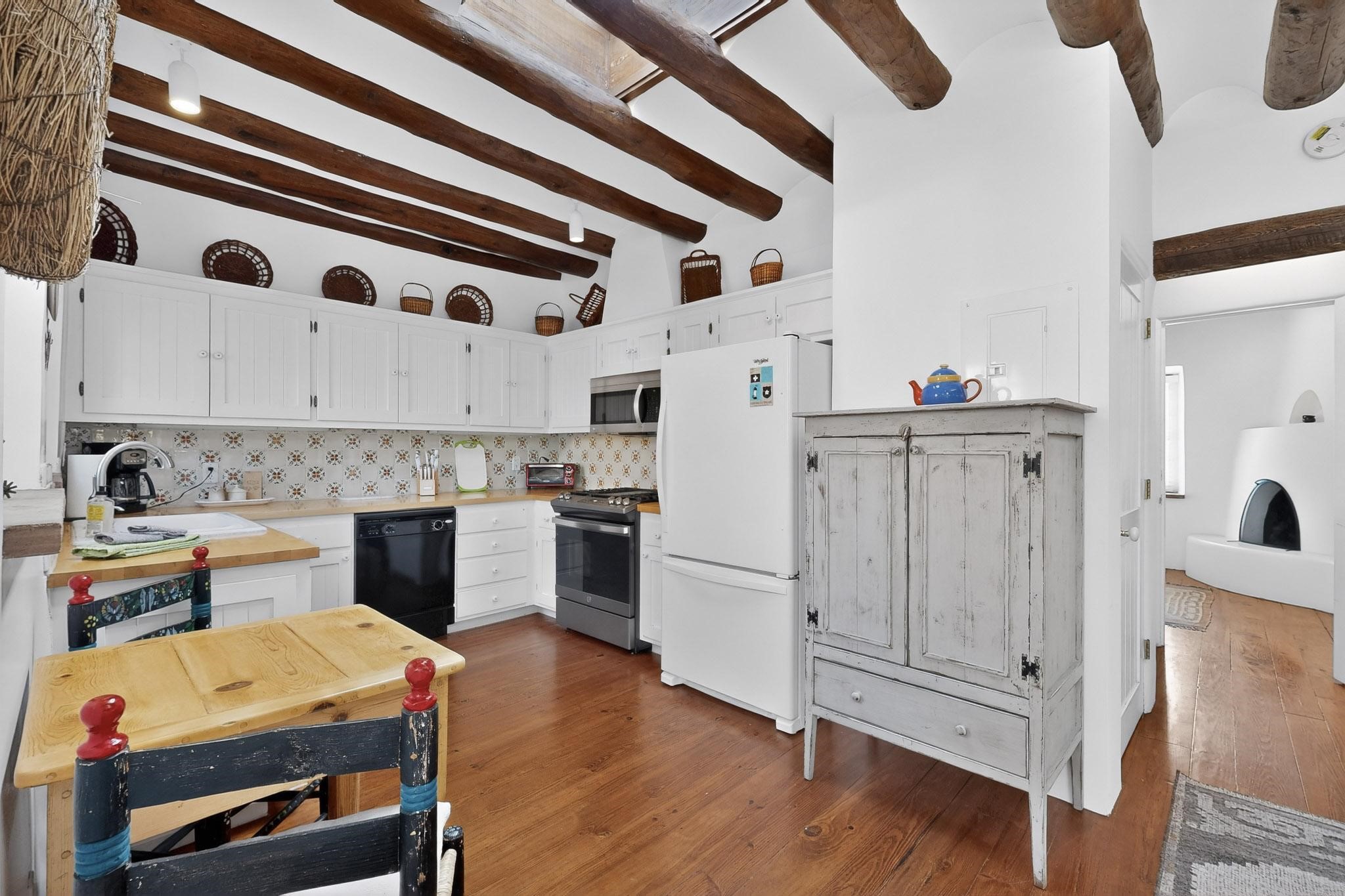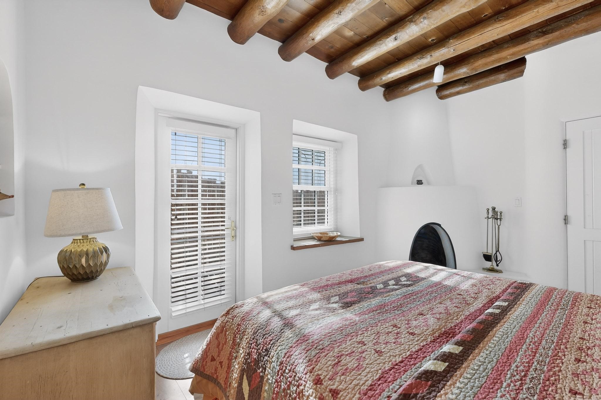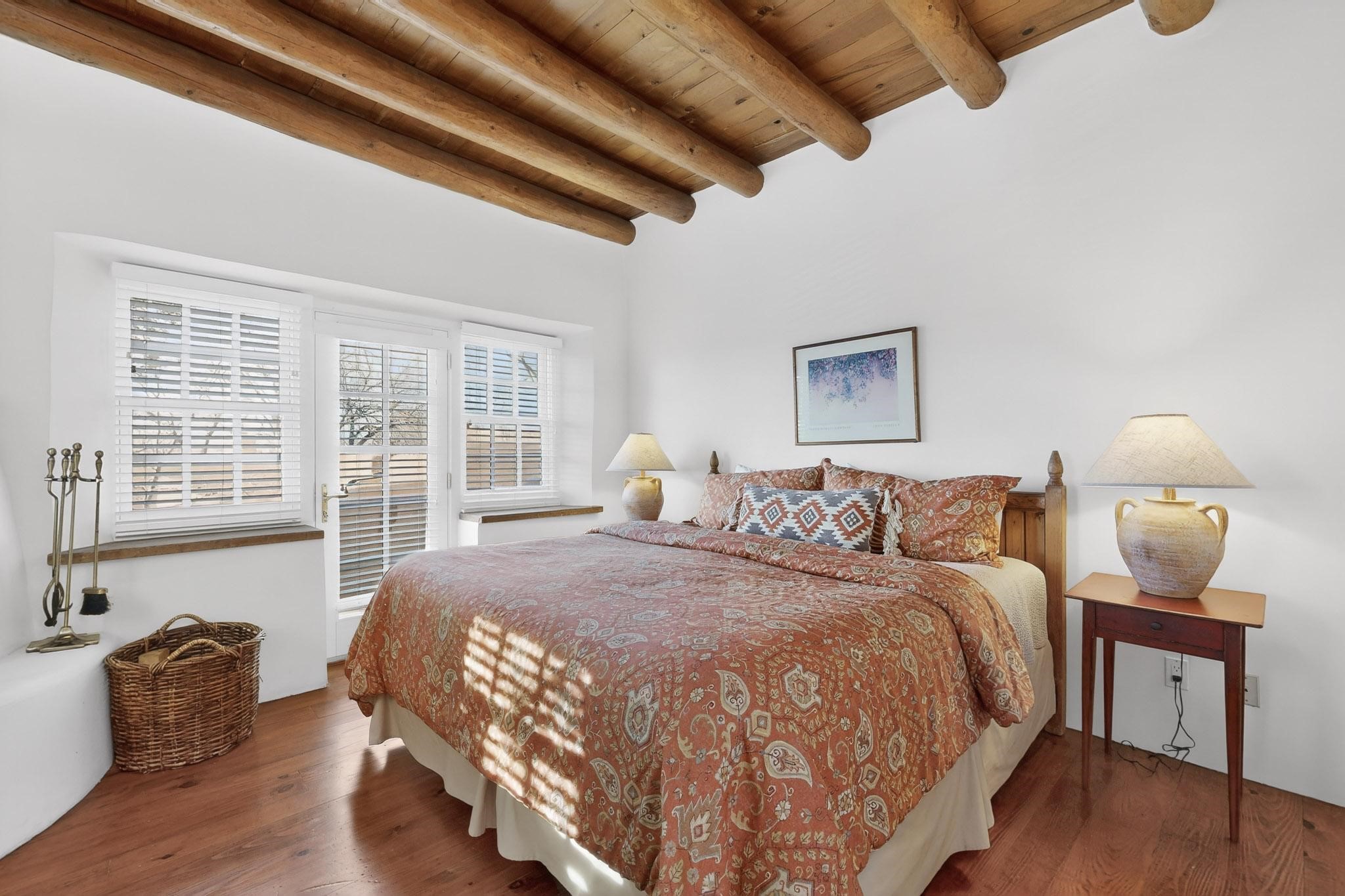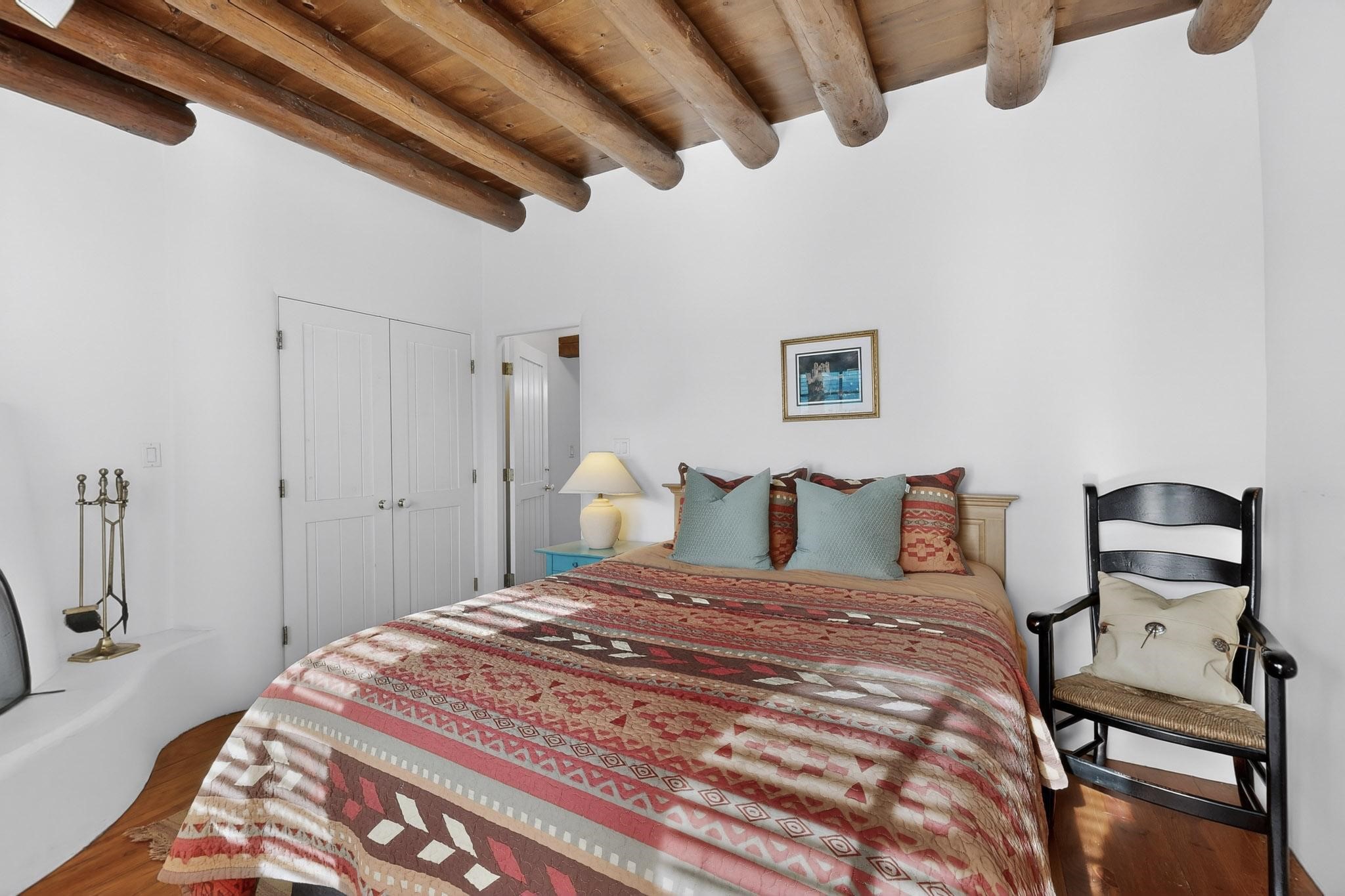 A charming condominium quarter share ownership near the Plaza, just a few blocks away! You'll find beautiful architectural details in the gracious old adobe homes, like vigas, coved plaster ceilings, kiva fireplaces, smooth plaster walls, hand-adzed lintels above windows and doors. Plus, you'll have a Talavera tile kitchen and baths. There are also walled, landscaped patio areas both in front and back of the house. Views of the downtown plaza areas from the living room and patio. The COA takes care of all the furnishings and maintenance, both inside and out. It's fully compliant with the short-term rental program.