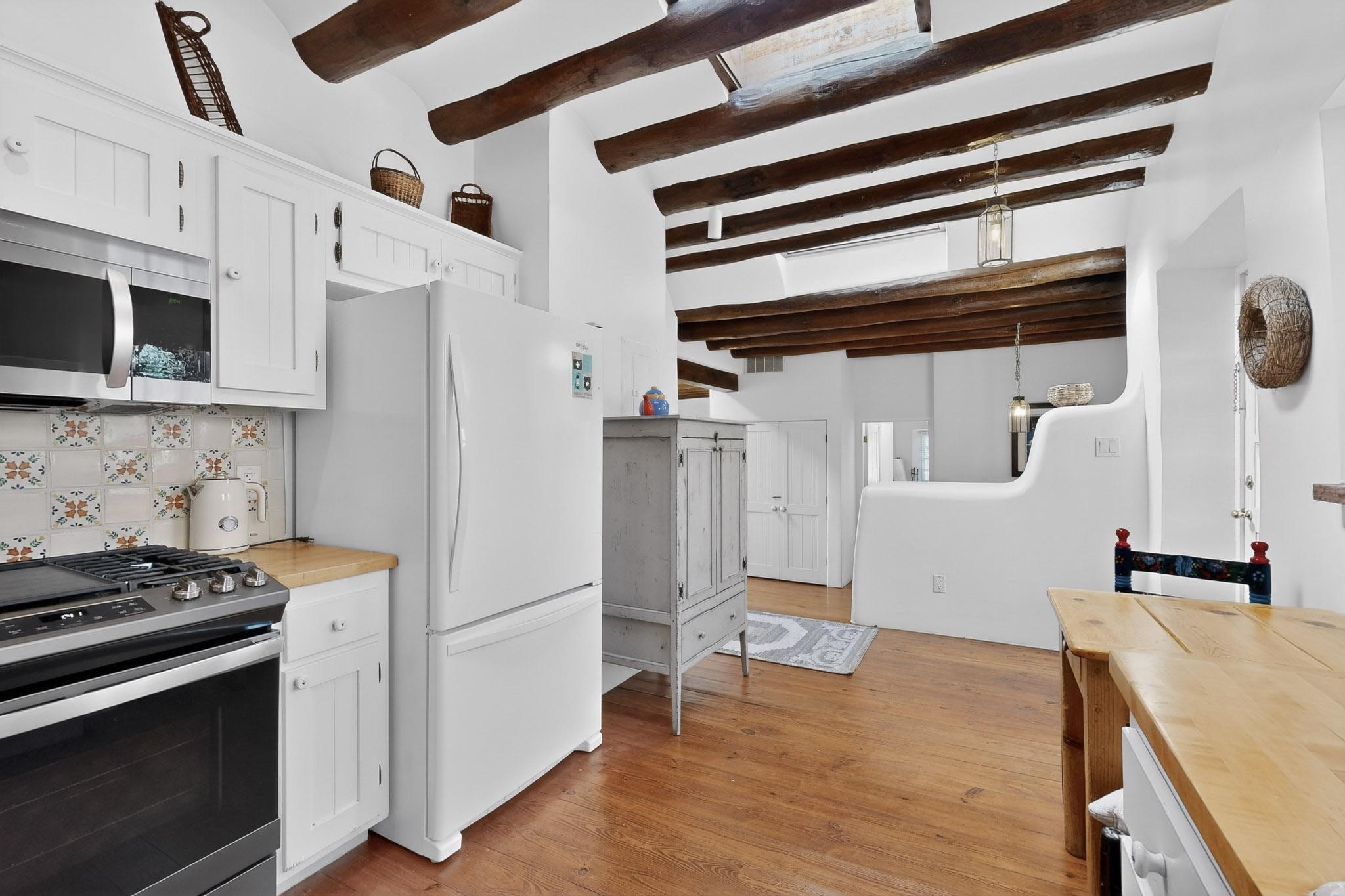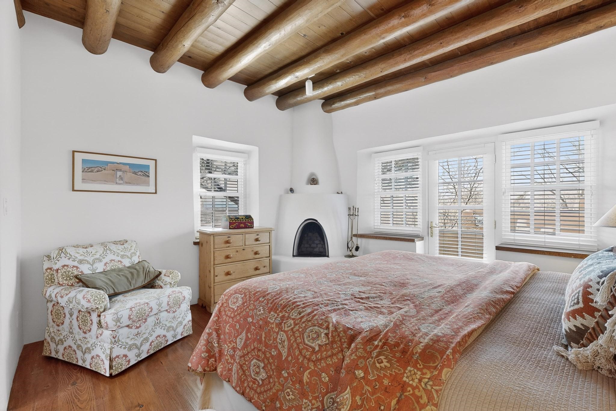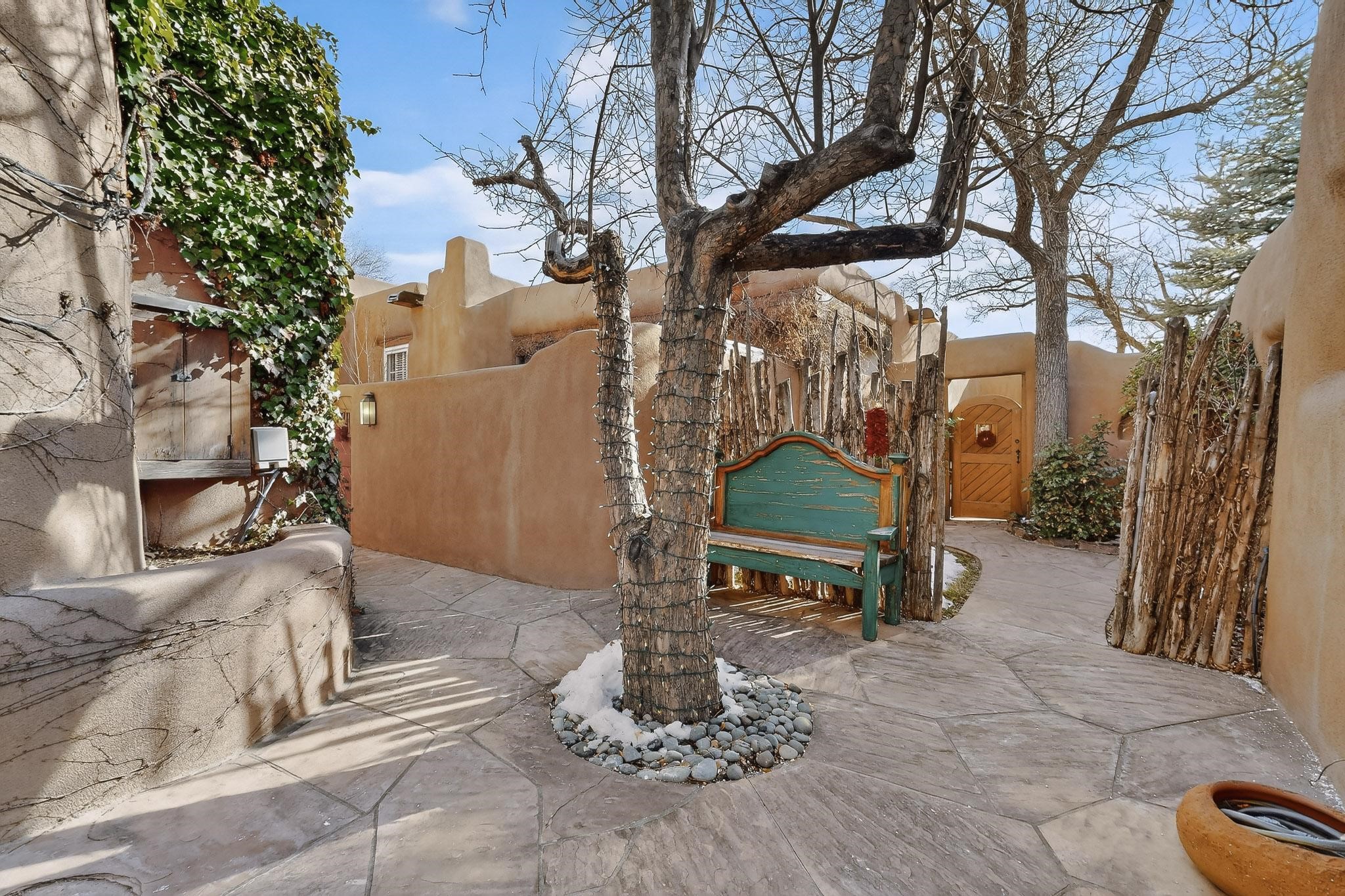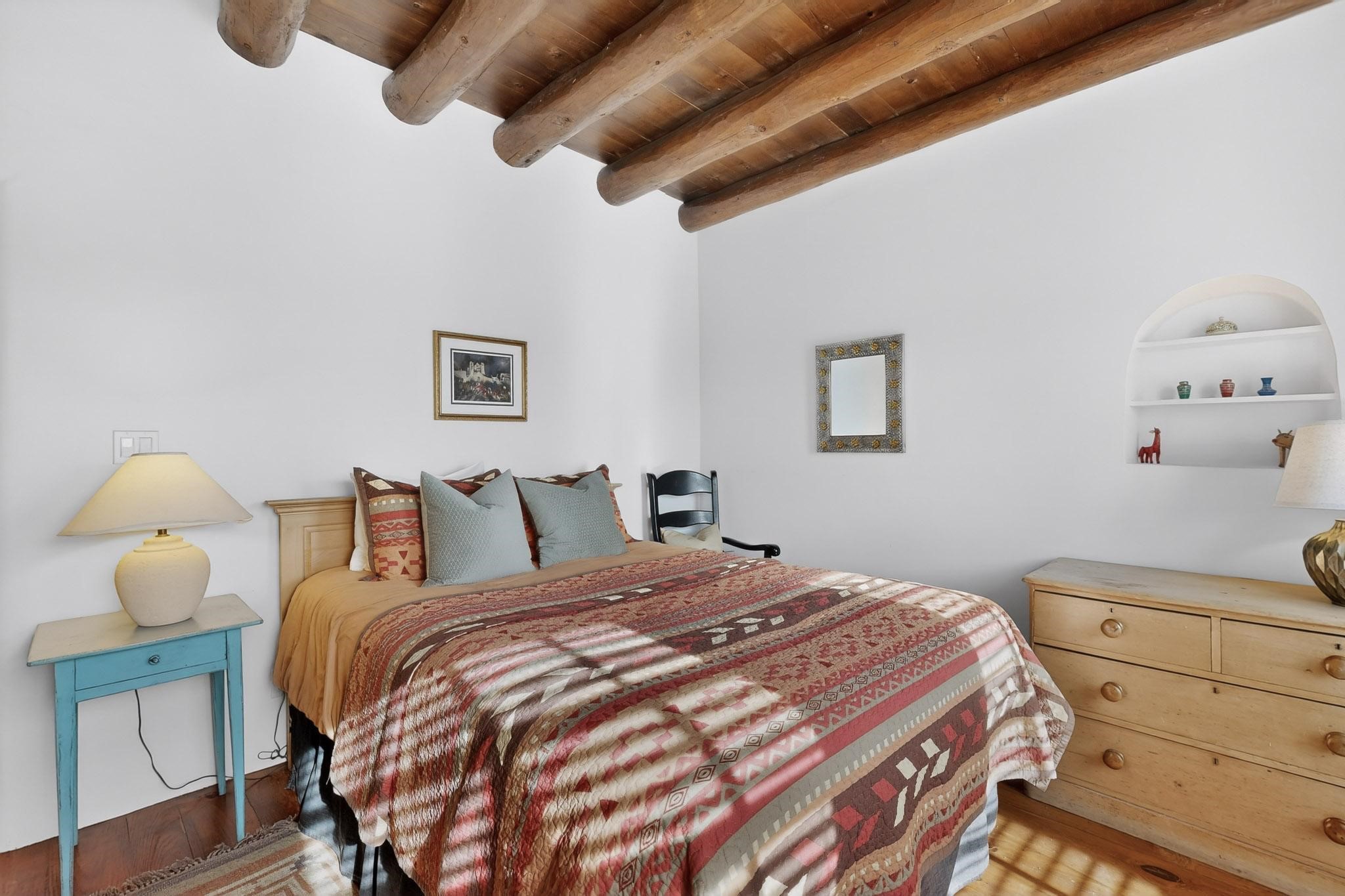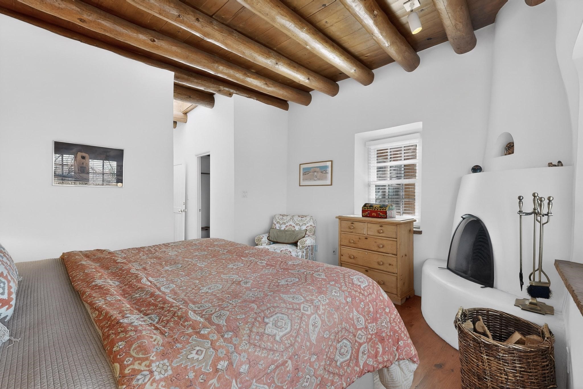 A charming condominium quarter share ownership near the Plaza, just a few blocks away! You'll find beautiful architectural details in the gracious old adobe homes, like vigas, coved plaster ceilings, kiva fireplaces, smooth plaster walls, hand-adzed lintels above windows and doors. Plus, you'll have a Talavera tile kitchen and baths. There are also walled, landscaped patio areas both in front and back of the house. Views of the downtown plaza areas from the living room and patio. The COA takes care of all the furnishings and maintenance, both inside and out. It's fully compliant with the short-term rental program.