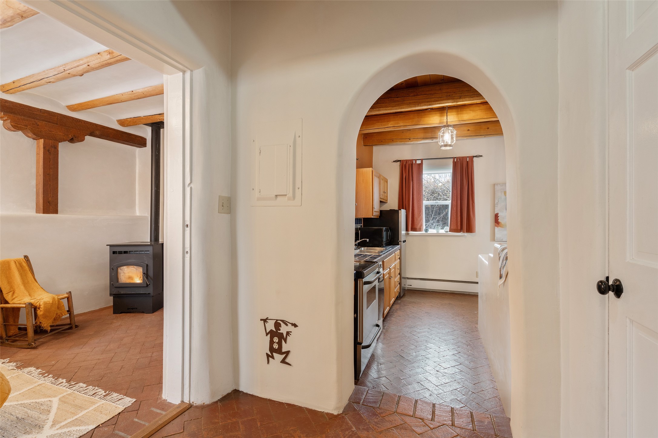 Nestled in the storied community of Chupadero, just outside Santa Fe, this remarkable 1.49-acre property offers an authentic New Mexico lifestyle steeped in history and natural beauty. Chupadero has been a vital agricultural corridor for centuries, with acequia irrigation systems dating back to the Spanish colonial era that continue to nourish the land today.This lovingly owner-built adobe home, crafted in the late 1980s, embodies timeless Southwestern architecture while offering modern comfort. The main residence features 3 bedrooms and 2.5 baths, complemented by flexible living space. Classic brick floors add warmth and character throughout, creating an inviting ambiance.The property's precious acequia water rights provide flood irrigation when available--a rare asset for the established orchard and fruit trees. Mature cottonwoods offer shade and seasonal beauty. A private well ensures year-round water security, and the brand-new septic system provides peace of mind.A charming 1-bedroom guest house offers privacy for visitors or potential rental income. The dedicated workshop with office space is perfect for artisans, hobbyists, or remote professionals. With a barn and corral there is ample room for horses or other livestock, this property is ideal for those seeking a spot for their miniature donkeys or sustainable homestead.Practical amenities include a 1-car garage and carport. The meticulous maintenance throughout reflects the owner's decades-long commitment to preserving this special sanctuary.This is more than a home--it's a connection to New Mexico's agricultural legacy and an opportunity to embrace a slower, more intentional way of life in one of Santa Fe's most historically significant communities.