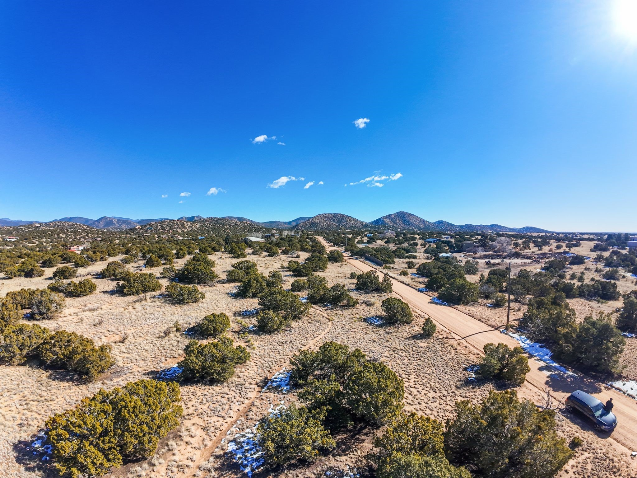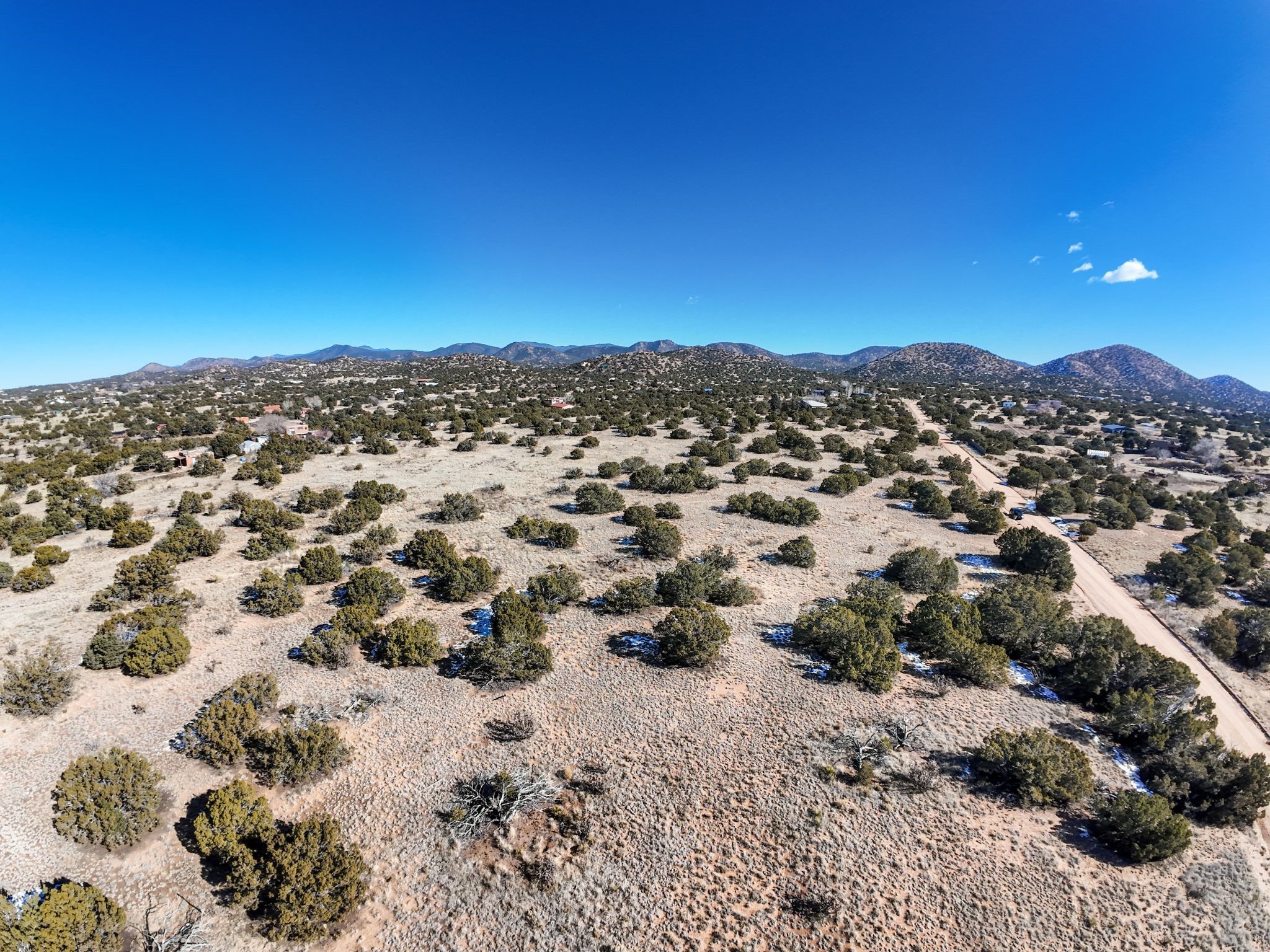 Open mountain views across the property in a quiet, private setting. The land offers an easy build with electricity in place and sits on 5.70 acres in Sunlit Hills, about 10 minutes from the Santa Fe Plaza and near the Rail Trail. A solid opportunity to create a custom site-built home. You do not want to miss this, come view it today.