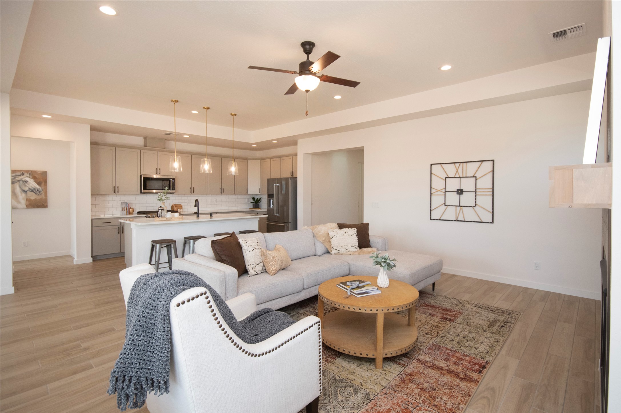 This thoughtfully planned one-story new construction offers a possible 4-bedroom layout with a bright, open-concept design ideal for modern living. The spacious floor plan seamlessly connects the kitchen, dining, and living areas, creating a welcoming space for everyday comfort. The home includes one full bathroom, one 3/4 bathroom, and a convenient powder room, Currently under 2 car garage and ample covered patio space. This home allows buyers the opportunity to envision the finished space while enjoying the confidence of brand-new construction backed by a builder warranty. Available to view by appointment--don't miss the chance to explore this exciting upcoming home. The photos are of a similar home of the same floor. Finishes are different. New photos will be taken upon completion. Promo -Builder/Seller pays ALL allowable closings costs Up to $10,000"