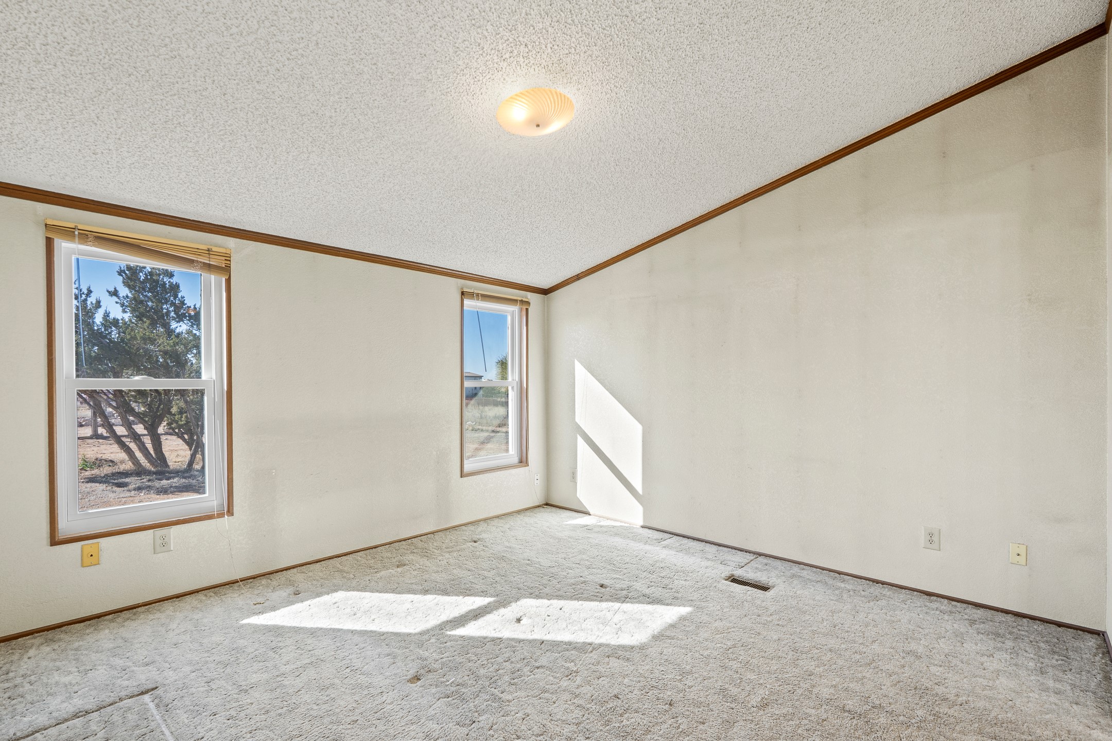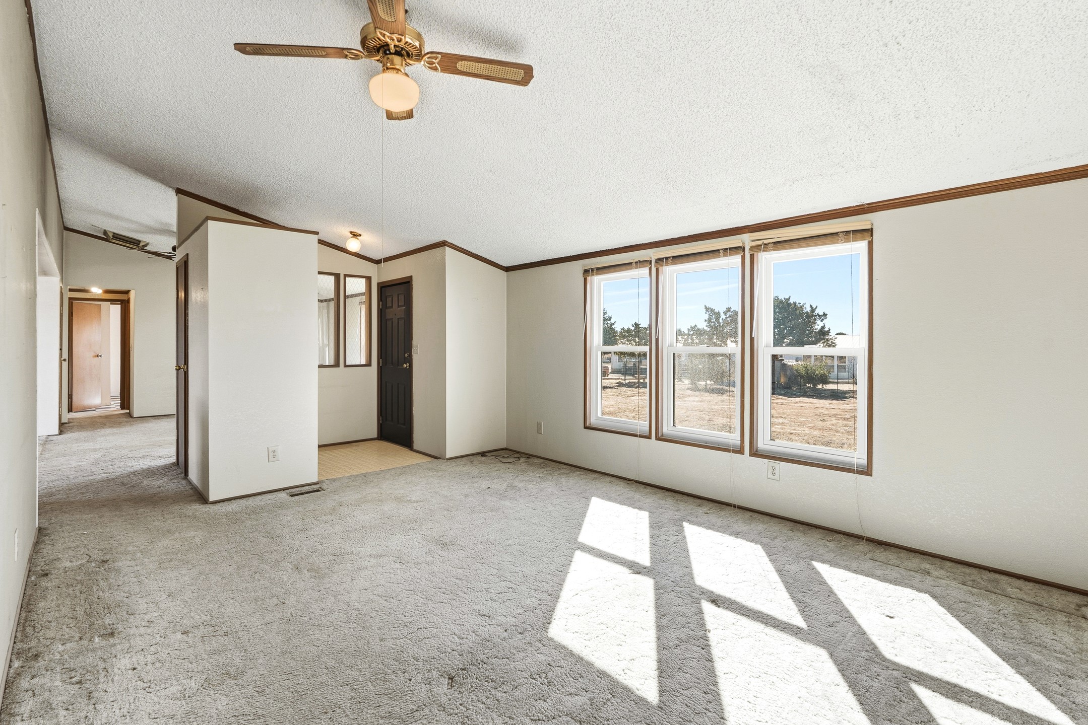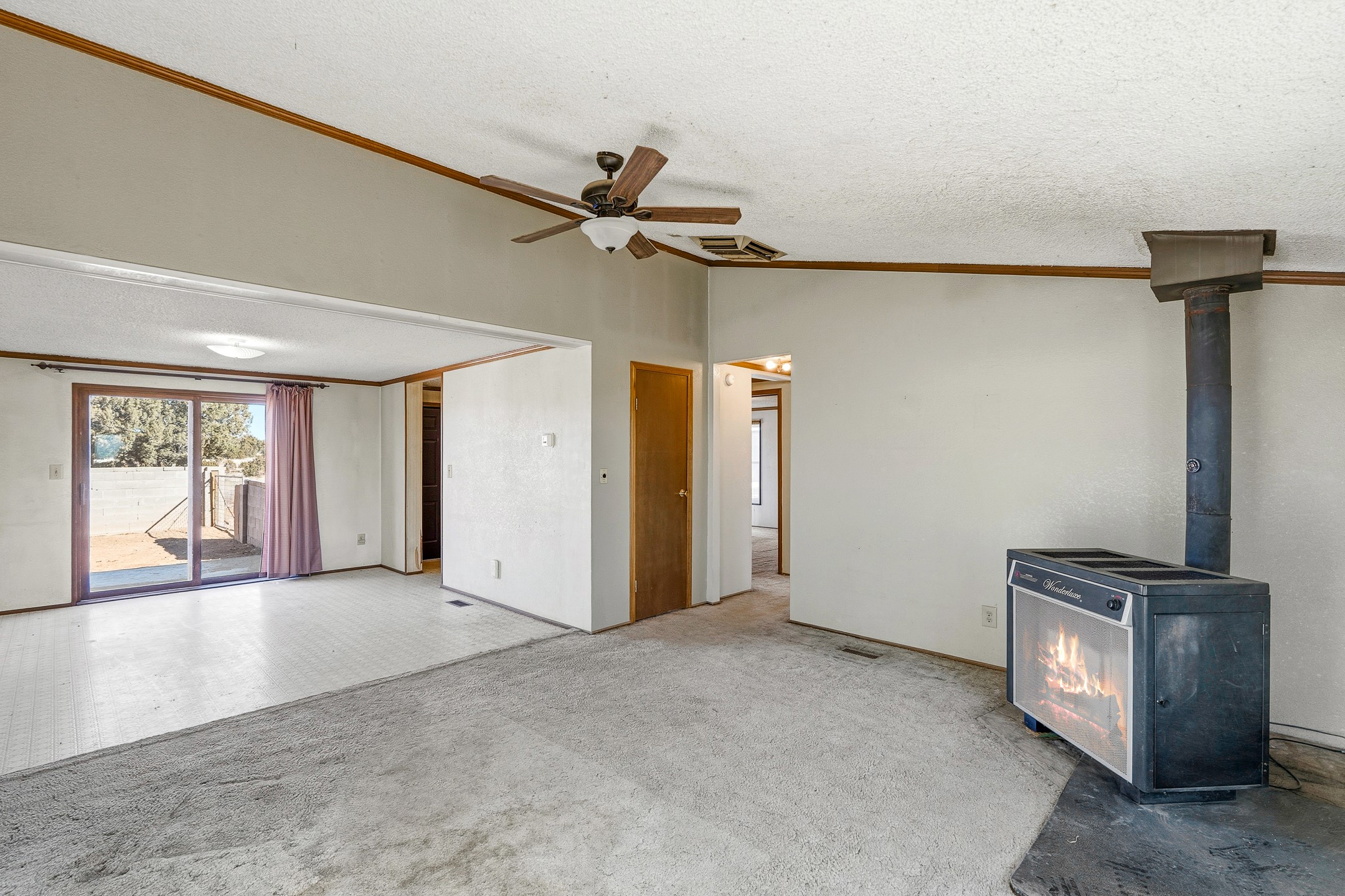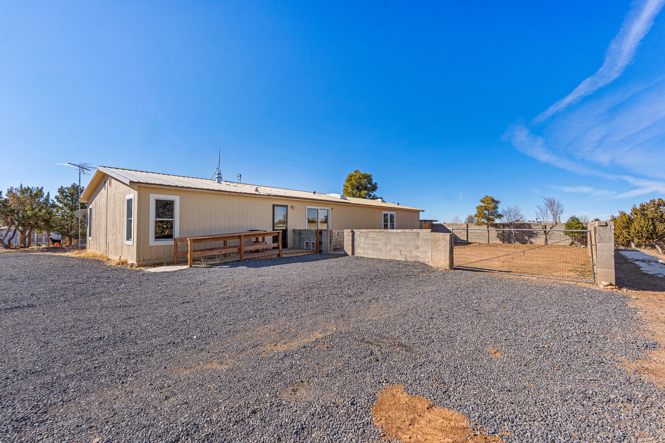 Peaceful private home in a rural setting with easy access to amenities and downtown Santa Fe. Enclosed front yard, metal roofing, newer windows, furnace and refrigerated ac. Theis in need of updating and there is deferred maintenance. Seller has priced it accordingly and does not intend to make repairs or concessions due to the property condition. Large lot is fully fenced for your privacy and enjoyment.