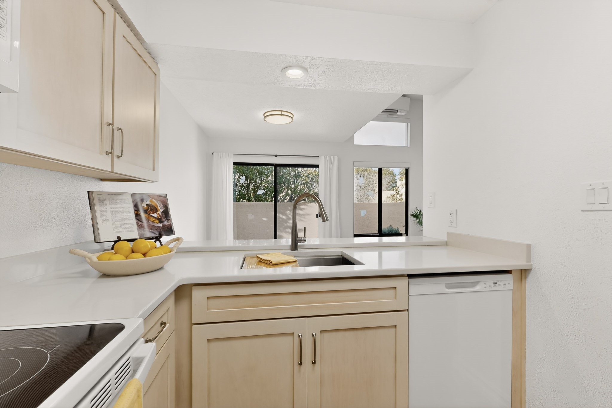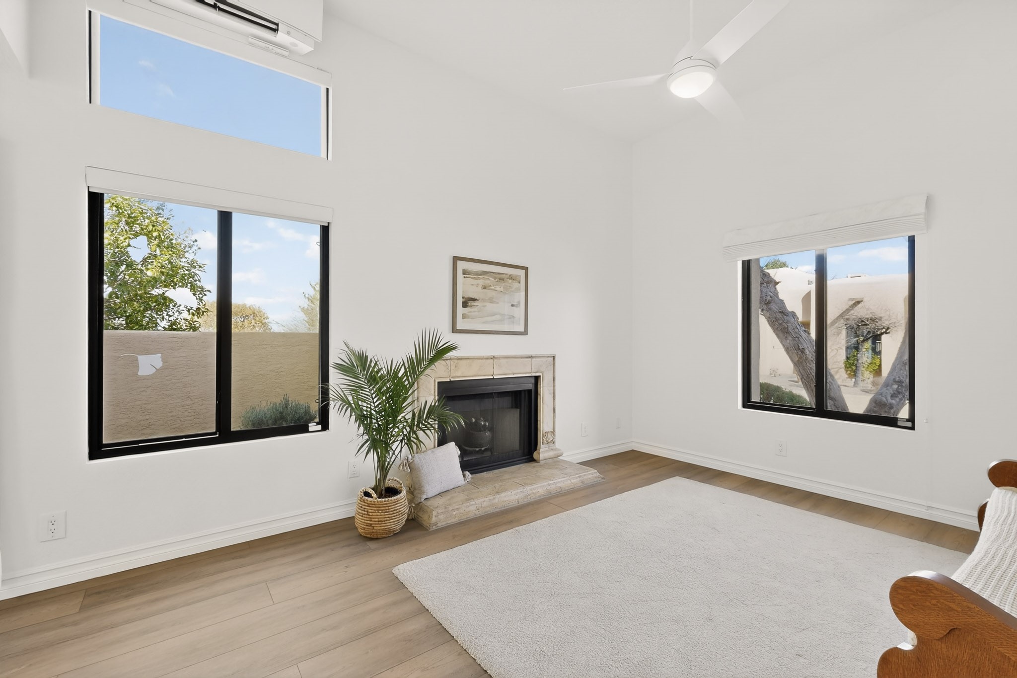 Nestled in Albuquerque's sought-after Far Northeast Heights, 6448 Monte Serrano NE is a beautifully updated Pueblo-styletownhome in the quiet El Paseo community. This move-in-ready residence seamlessly blends contemporary style with classic New Mexican charm.Step inside to discover a refreshed interior with designer-inspired finishes and updated flooring throughout. The spaciousliving area features a custom wood-burning fireplace, perfect for cozy evenings. The modernized kitchen offers sleek cabinetry, updated appliances, a breakfast bar, and a sunny dining nook. The primary bedroom and contemporary bathroom showcase updated fixtures and sophisticated finishes. Refrigerated air and a one-car attached garage add convenience and comfort.Outside, a private walled courtyard provides a low-maintenance sanctuary for outdoor dining and relaxation. El Paseo community amenities include a pool, clubhouse, and beautifully landscaped common areas.Ideally located with easy highway access and stunning Sandia Mountain views nearby, this home is minutes from Academy Hills Park and the Northeast Heights' premier shopping and dining destinations. A rare find for those seeking stylish, low-maintenance living in a prime location.