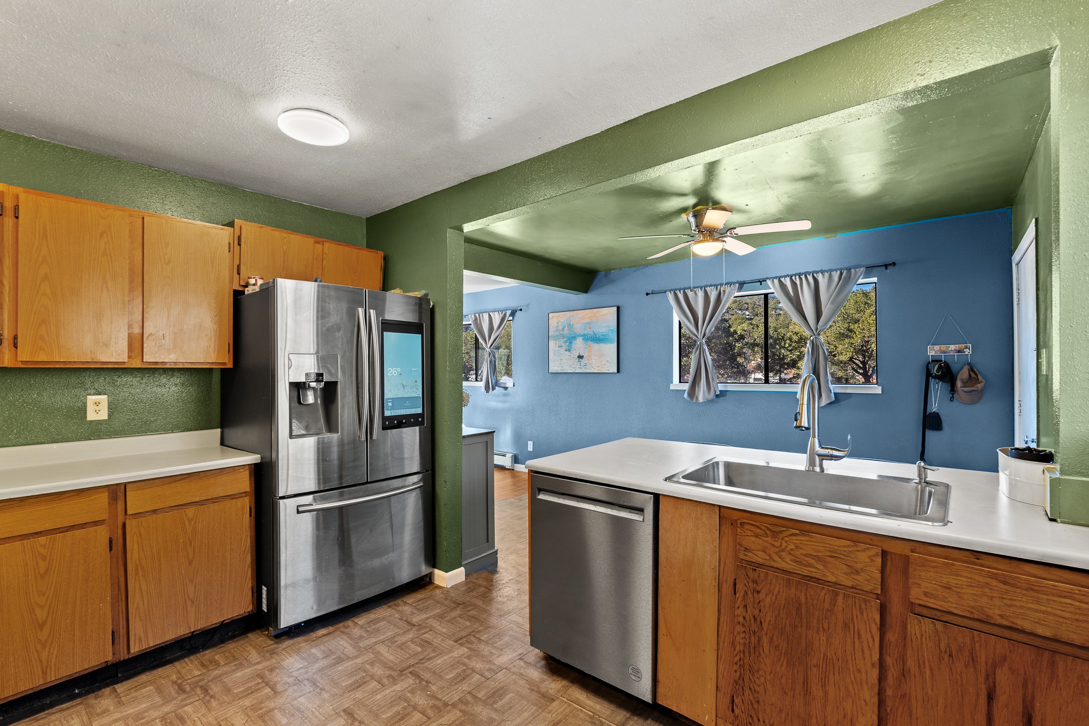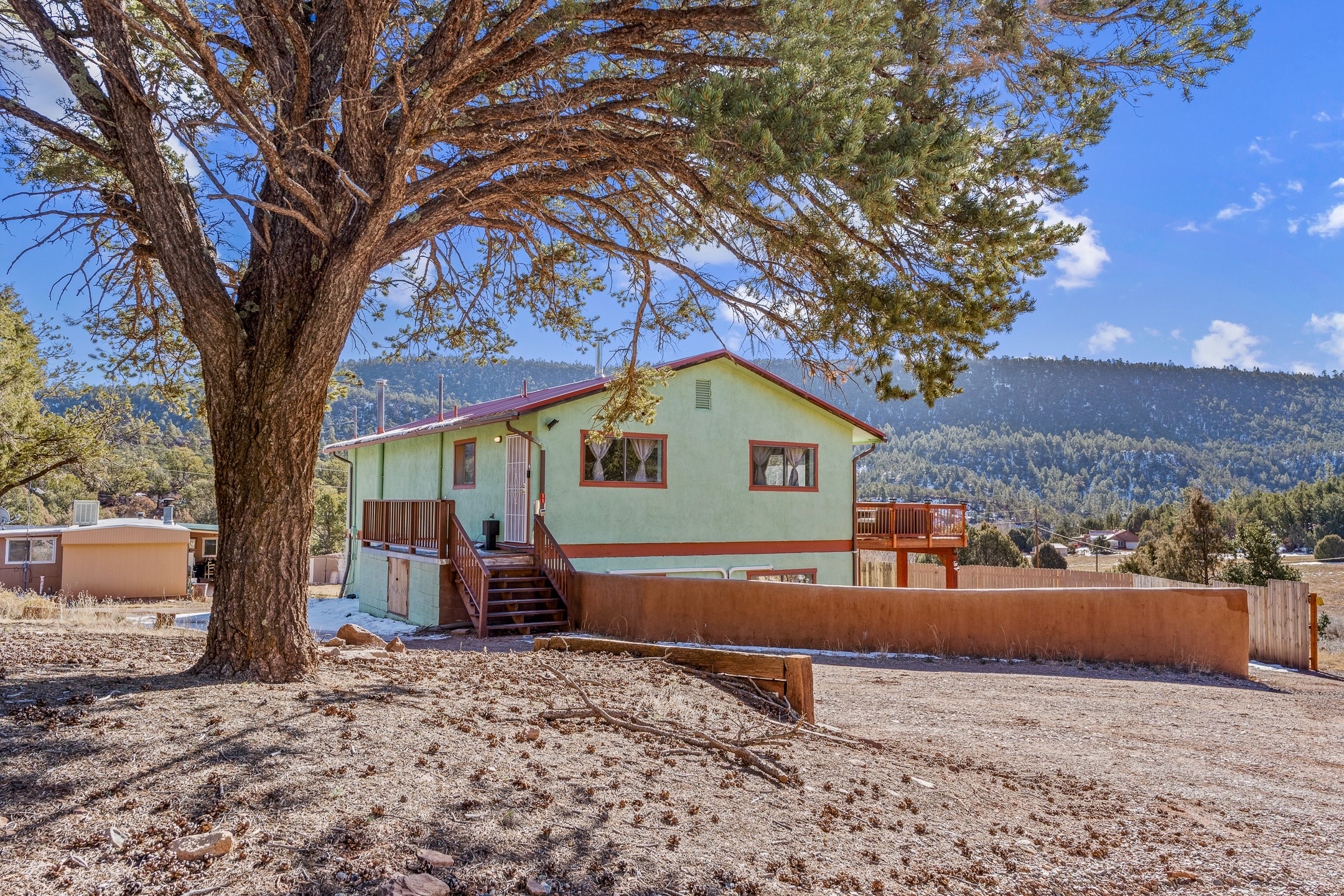Situated on desirable acreage in Glorieta, 11 Eusebio Road offers expansive views and exceptional potential. This 3-bedroom, 2-bath home features a large downstairs great room and an elevated deck ideal for enjoying sweeping mountain and valley vistas. Additional features include a carport and a new garage door. The water heater, boiler, and baseboard heating were installed in 2025. With room to expand or customize, this property presents a unique opportunity to create a retreat or full-time residence in a peaceful, scenic setting.