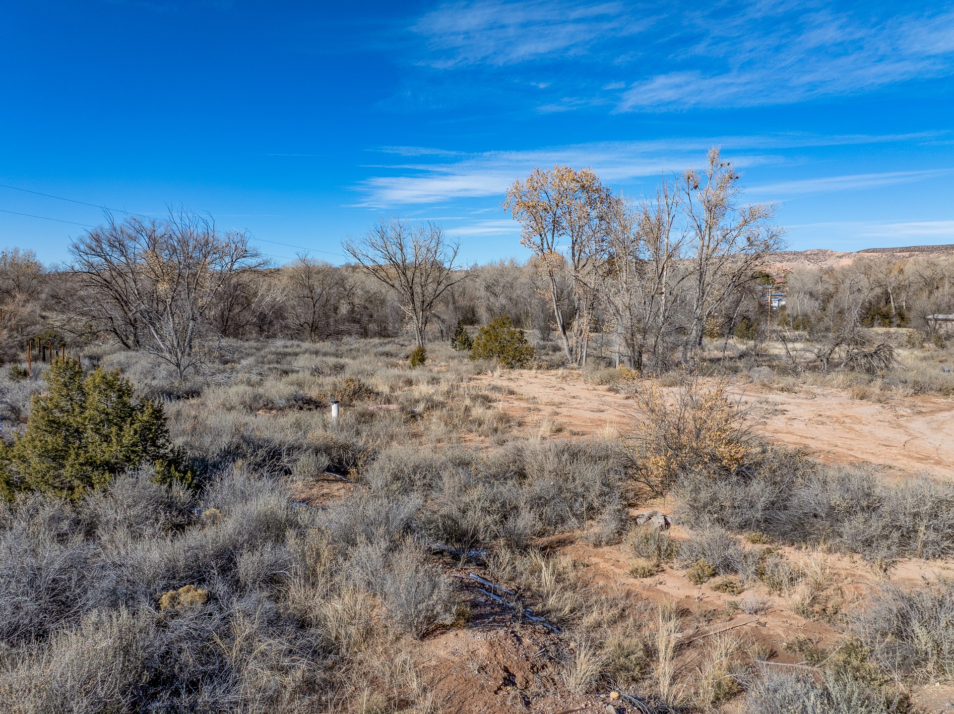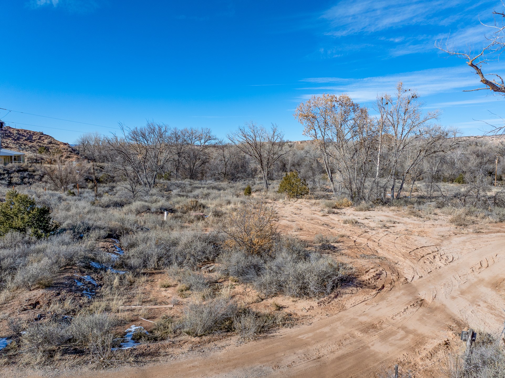 Capture a piece of gorgeous Chimayo land on .95 lush acreage!! Flat land with easy building sites provides for house, guest house and storage buildings! Trees and birds abound! Access to BLM land is available as well. There is a shared well on the property and a gate already provided for access into the property. Water rights also will transfer!! Owner may finance with 20% down at 5% interest, balloon in 5 yrs.