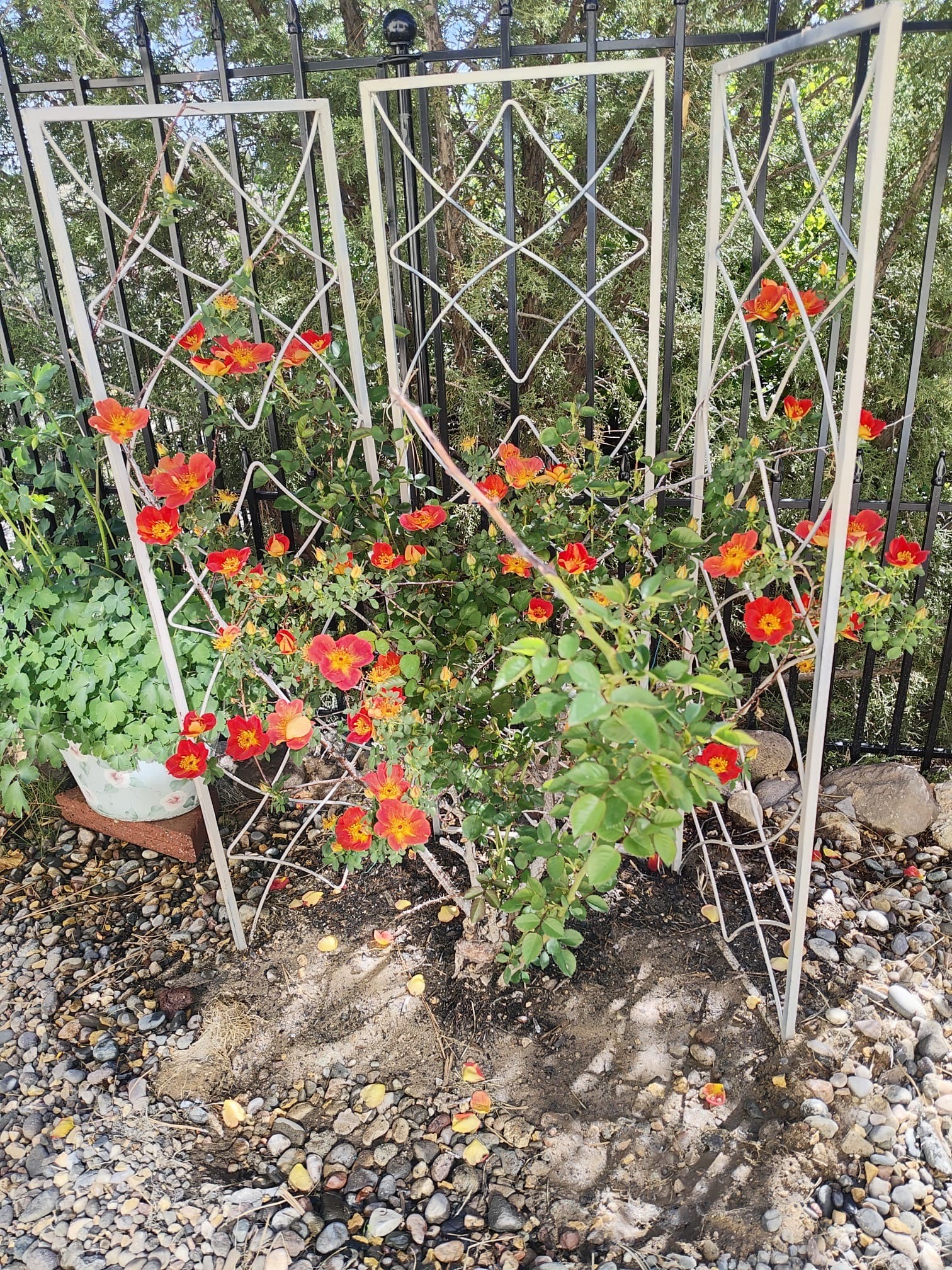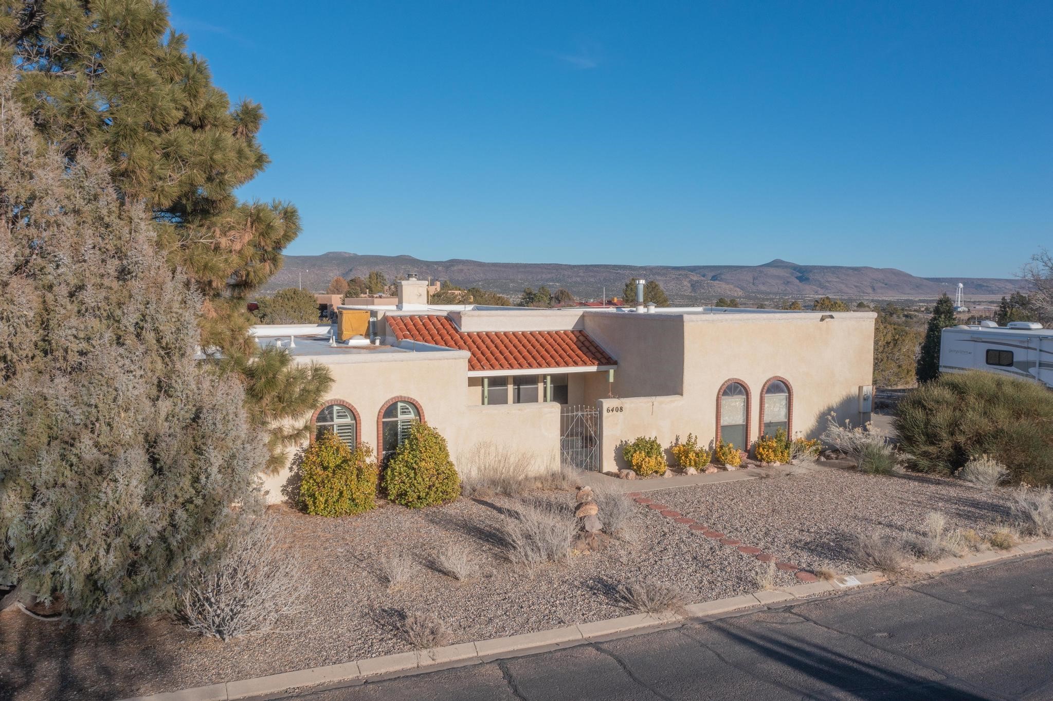 PRICE REDUCED!! Thoughtfully designed approx. 2,500 sq ft, 3-bedroom plus flex room, 3-bath, 2-car garage home on a desirable double lot backing to open space, offering added privacy and beautiful views. The spacious living area, with room for an office or sitting area, features vaulted wood beam ceilings, a stone gas fireplace updated in 2023, and built-in shelving. The well-planned layout includes two primary bedrooms with en-suite baths, one with a walk-in closet, plus a third bedroom and an additional full bath. Bathrooms have been thoughtfully updated, including a remodeled primary bath with a walk-in shower. A sunroom, small office area off the kitchen, direct-access garage, and dedicated laundry room provide excellent flexibility for daily living. Notable improvements include a new furnace and water heater (2019), updated kitchen appliances and lighting, newer washer and dryer, insulated garage door, updated interior and exterior lighting, ceiling fans, window coverings, replaced window pulleys and screens, UV/heat-filtering window film, and new carpet in the living area and bedrooms. Additional amenities include marble flooring, forced air heating, central evaporative cooling, raised garden beds, fruit trees, and recent exterior updates. A wonderful opportunity to enjoy space, privacy, views, and relaxed Cochiti living. Please see the documents section for a complete list of updates and improvements.