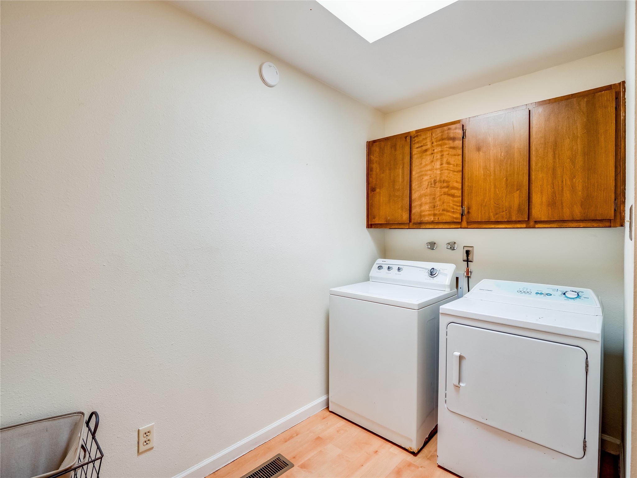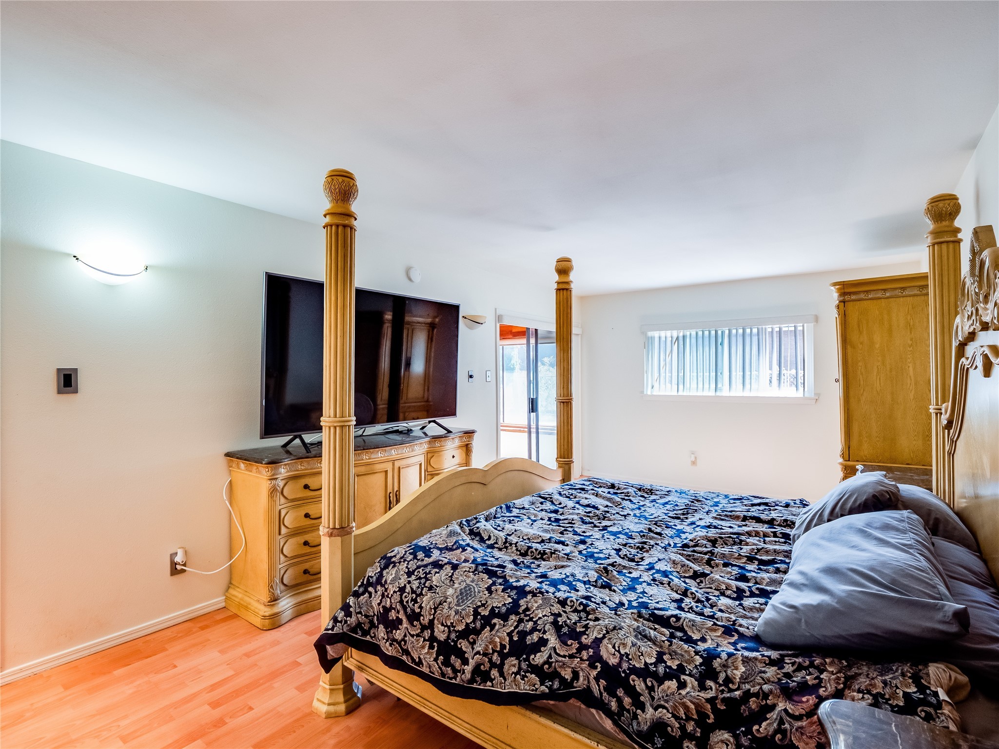 This charming single-story home in White Rock offers beautiful xeriscape landscaping and a welcoming layout. Step through the front entrance onto laminate wood floors that extend through the main living areas. A coat closet and convenient access to the two-car garage greet you at the entry. The spacious living room features a large front-facing window and a skylight, filling the space with natural light. Adjacent to the living room is a dining space with sliders leading to a bright sunroom with new laminate wood flooring. The bonus room, with the same new floors, offers additional space and leads to the backyard, with another access point to the garage for convenience. The galley-style kitchen boasts wood cabinets with glass inlays, hard surface countertops, tile flooring, stainless steel appliances, and a gas oven/range. Another skylight brightens up this functional space. Down the hallway, you'll find a large guest room with a double-door walk-in closet and sliders leading to the sunroom, a guest bathroom with a single sink vanity and a tiled shower/tub, and an open laundry space with upper cabinets that could easily be enclosed. The spacious primary en-suite includes a walk-in closet and sliders to the sunroom, while the primary bathroom has a single sink vanity and tiled shower/tub. The sunroom is surrounded by windows, offering a perfect view of the fenced-in backyard with its low-maintenance landscaping, mature trees, and room to create your dream garden or outdoor living area. With parks, trails, shopping, and restaurants just a short distance away, this home is in an ideal location. Come take a tour today!