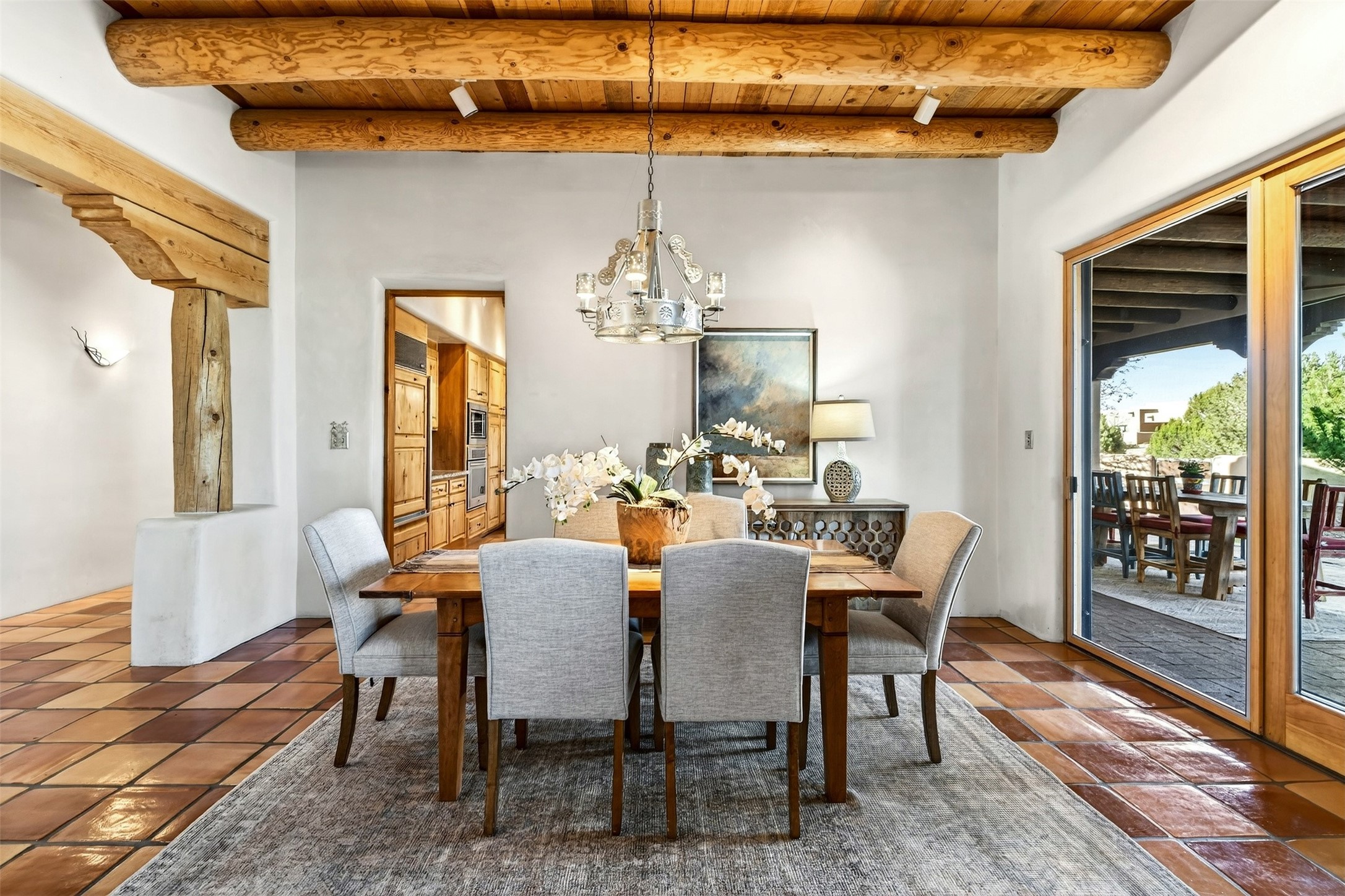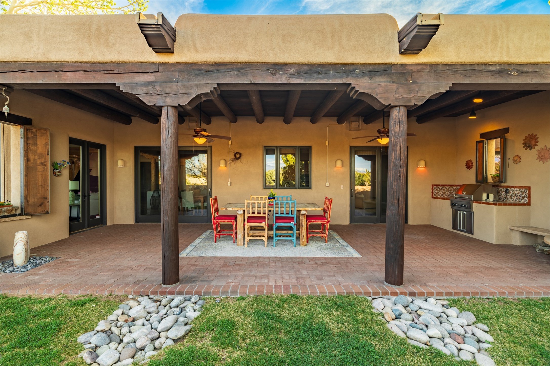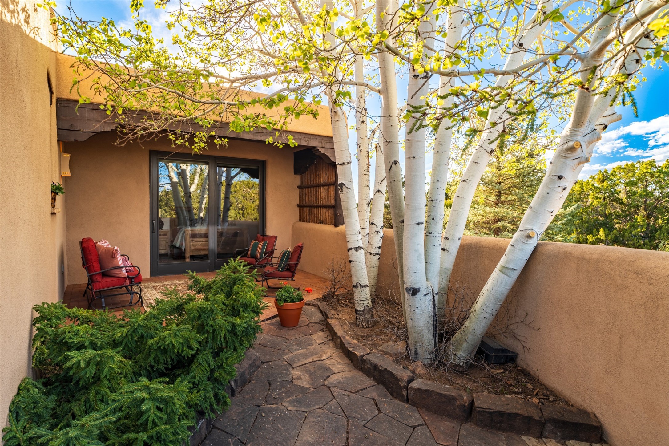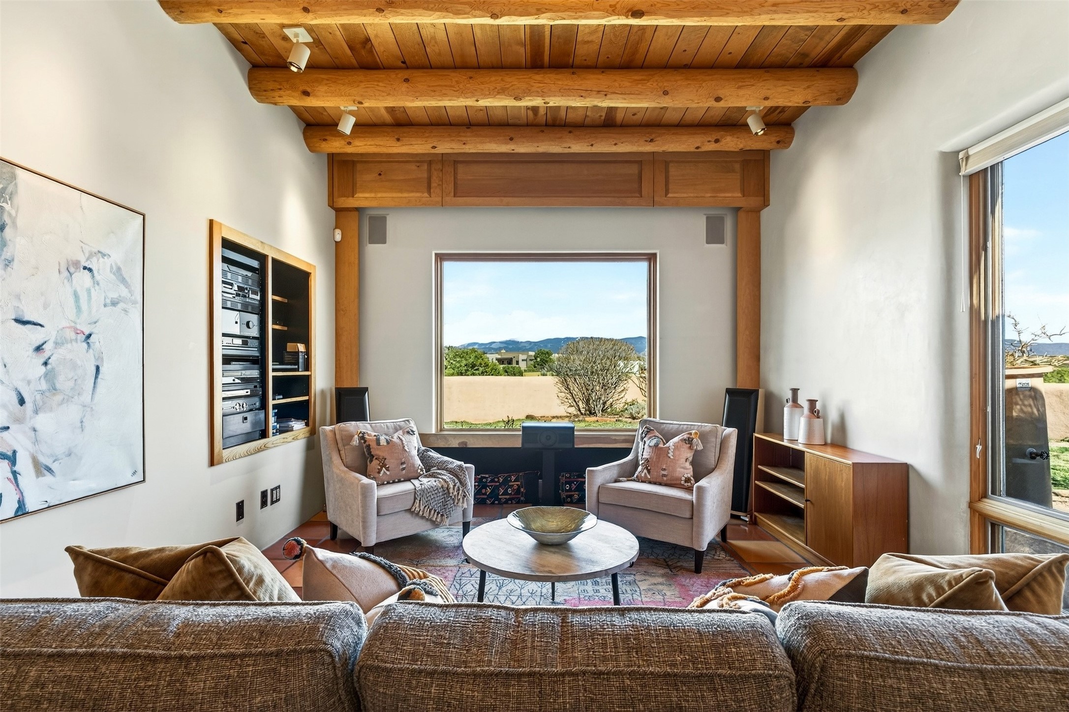 In the high desert of Sata Fe, where light and landscape shape daily life, a quietly exceptional residence offers a refined interpretation of modern Southwestern living - one defined not by excess, but by ease.Set on 1.65 acres within the prestigious community of Las Campanas, where light and landscape shape daily life, a timeless Pueblo-style residence, crafted by esteemed Master Builder Tierra Concepts, embodies a rare level of intention in which architecture, landscape, and lifestyle exist in complete harmony.Spanning approximately 3,730 square feet, the home offers three bedrooms and 3.5 baths, each space thoughtfully designed to balance privacy with connection. From the moment you enter, the absence of steps creates a sense of ease and fluidity--an environment equally suited for elegant entertaining or quiet daily living.Expansive windows frame uninterrupted views of the Sangre de Cristo Mountains, bringing a sense of stillness and natural grandeur into every room. Light shifts throughout the day, casting a quiet rhythm across the interiors and reinforcing the home's deep connection to its surroundings.At the heart of the residence, a professionally designed media and theatre room offers a refined retreat--ideal for immersive evenings or private escape.The primary suite is its own sanctuary. Just beyond, a secluded portal reveals a built-in spa, thoughtfully positioned to capture the surrounding beauty while offering complete privacy--an experience that feels both indulgent and restorative.Multiple intimate outdoor living spaces invite you to follow the sun, the shade, or the stars, each one offering a distinct perspective of the landscape and the sweeping mountain views beyond.This is a home defined not by excess, but by precision--where every detail reflects the craftsmanship of Tierra Concepts and a commitment to enduring quality.A rare offering in Las Campanas--where luxury is not simply seen, but quietly experienced.
