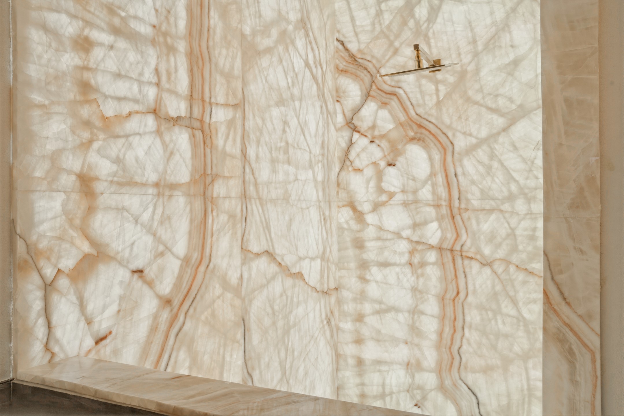Old world craftsmanship blends seamlessly with modern luxury at the Estancia Collection, a unique compound located in the Baca Railyard District, minutes away from Santa Fe's top galleries and restaurants. This latest vision of renowned developer Mitch Menaker, is where every room becomes a work of living art. Curated by artisans from around the world, using hand cut semi-precious stone, tiles, iron, and rare wood finishes creates a truly immersive and peaceful experience, as if being hugged by nature. As you walk through the sanctuary, a warm greeting by a hand painted dancing Kachina panel inspiring abundance, health and balance meets you. Inside are hand carved teak doors, kitchen cabinets and ceiling treatments, along with petrified wood countertops. The stunning fireplace is crafted with hand cut sandstone in a bamboo pattern. The main level office/bedroom features antique stained glass doors opening to the ensuite bathroom's pink jasper stone sink and mirror sitting atop a beautiful hand carved teak vanity. A magical backlit white onyx staircase creates a dreamlike effect as you ascend to the bedroom suites above. The primary bedroom greets you through a charming speak easy door and a whimsical teak puzzle floor creates a sophisticated, yet playful tone. This light-filled sanctuary features a fireplace, wet bar and a one of a kind spa-like bathroom. The sinks, mirrors and bathtub are made of semi-precious tigers' eyes and the shower is made of back-lit onyx panels, creating a luxurious and luminous retreat. The second light-filled bedroom features a private balcony and bath with hand carved vanity and a mother of pearl stone sink and backsplash. The laundry room, located on the 2nd floor includes a dog shower covered with "happy dog" faces on each hand cut tile. Blending ancient techniques with the expert hands that brought them to life, the developer's vision has created the most unique visual and artistic sanctuary Santa Fe has seen in years.
