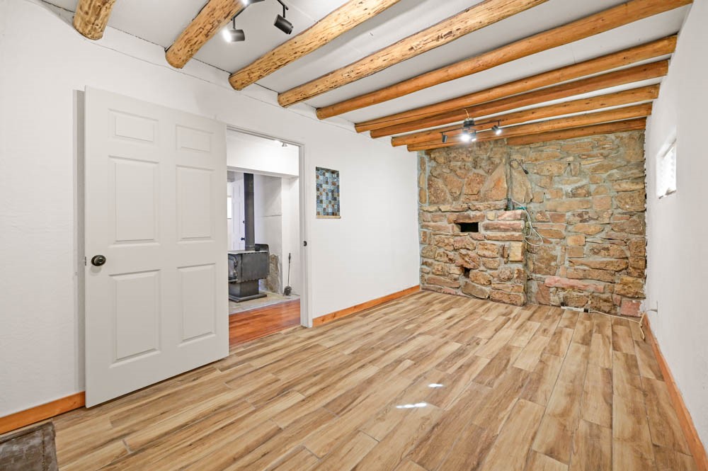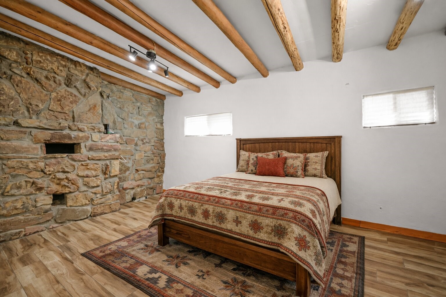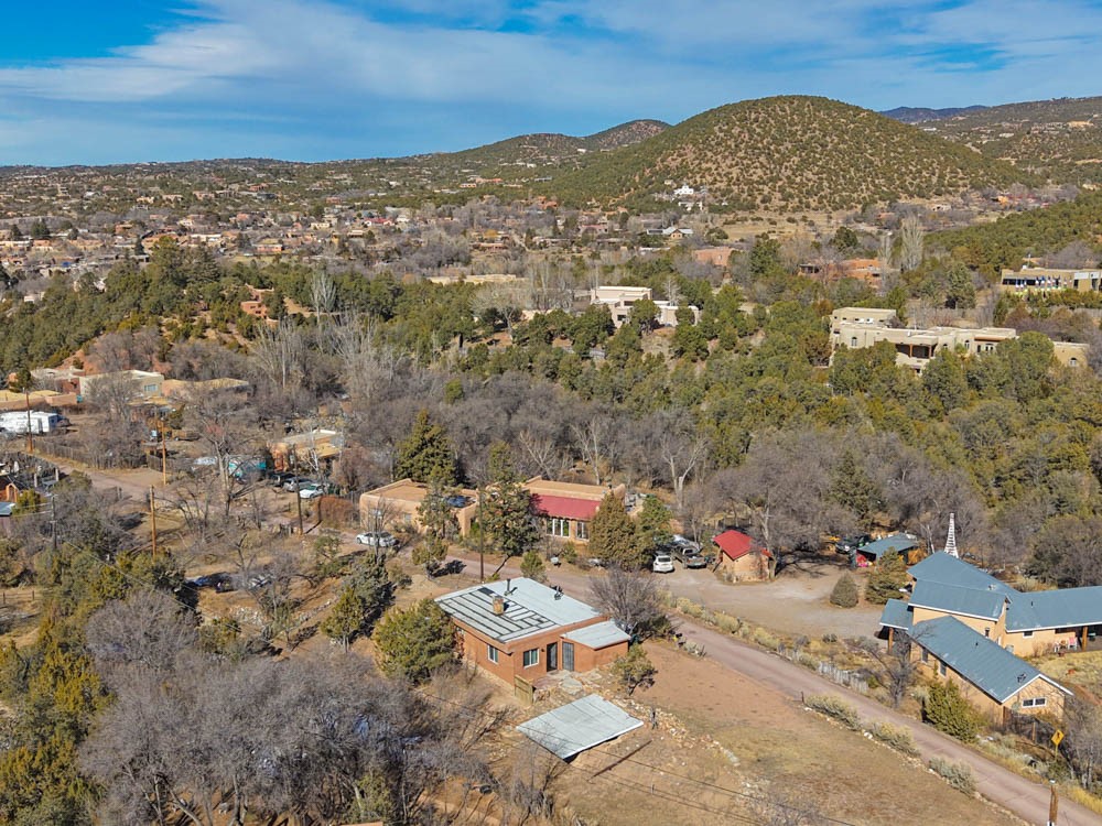 Nestled in one of Santa Fe's most desirable neighborhoods, this 2-bedroom, 1-bath home sits on an exceptional 0.4-acre lot. The property offers a rare opportunity for expansion or reimagining: add a casita, build a garage, create additional living space, or design outdoor areas that fully embrace the hillside setting. The existing home features classic Santa Fe touches, including viga ceilings and a cozy rock fireplace, and is filled with natural light. The layout offers a unique footprint that invites thoughtful updates or redesign to suit modern living. Outdoors, terraced grounds provide ample room to expand while taking in beautiful views of the Sangre de Cristo Mountains and surrounding hills, and even the Jemez Mountains. Ideally located near St. John's College, the Santa Fe Watershed, the Ski Basin, Santa Fe Preparatory School, Cristo Rey Church, and several elementary schools, with Canyon Road, galleries, shops, and the Santa Fe Plaza just minutes away.