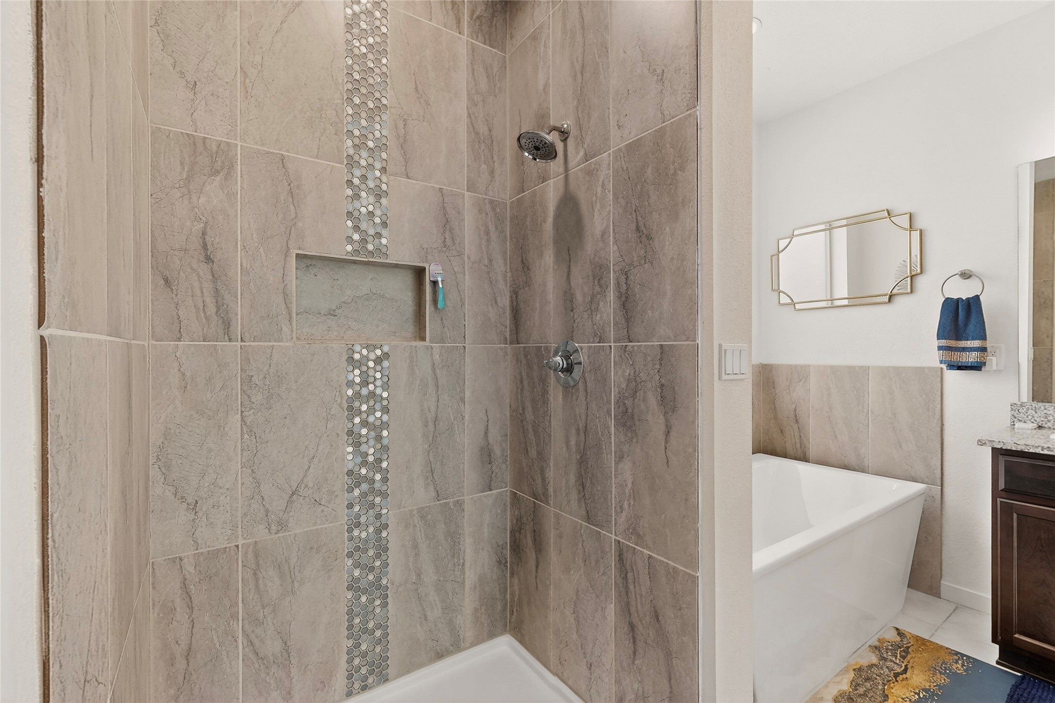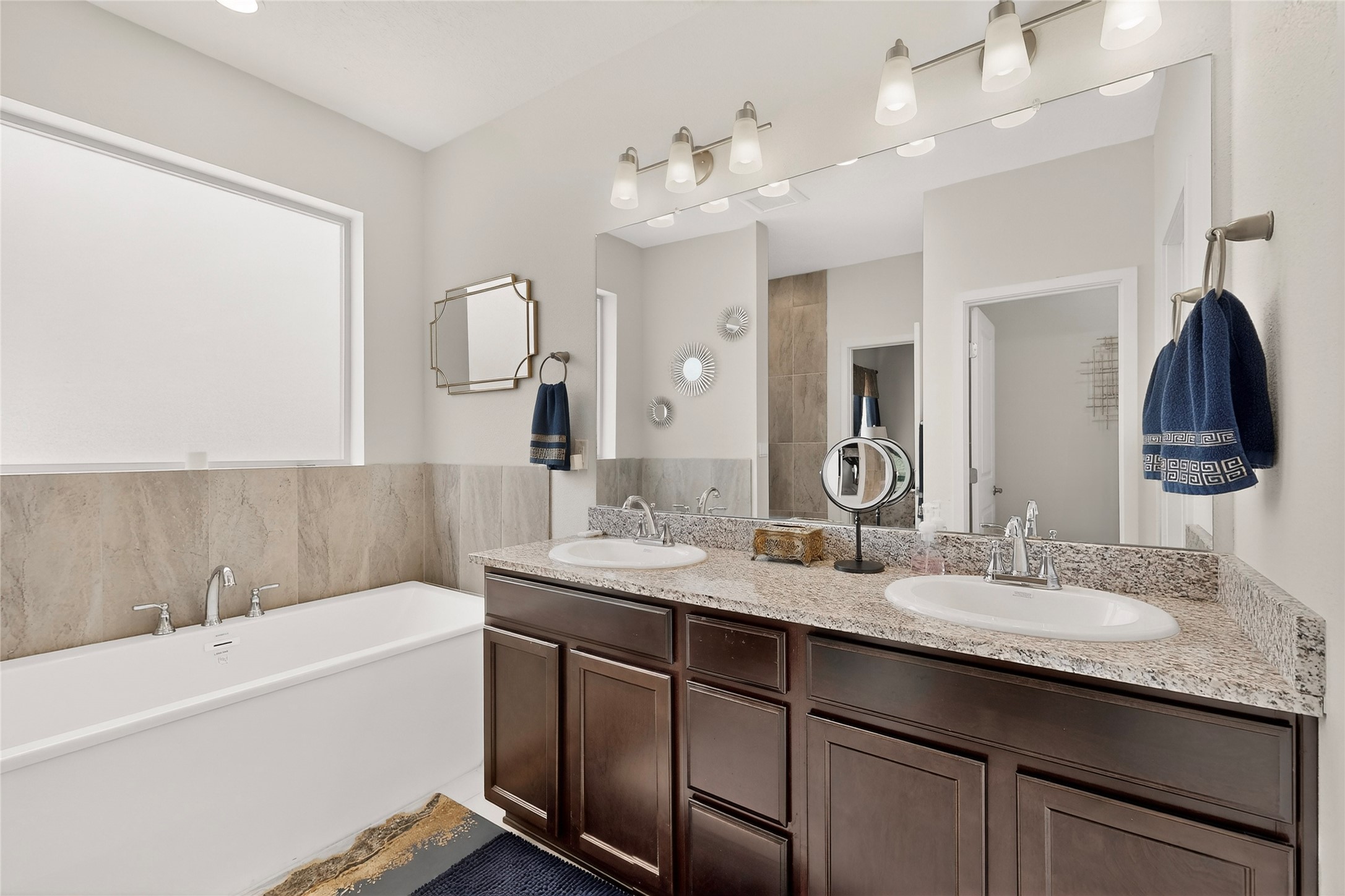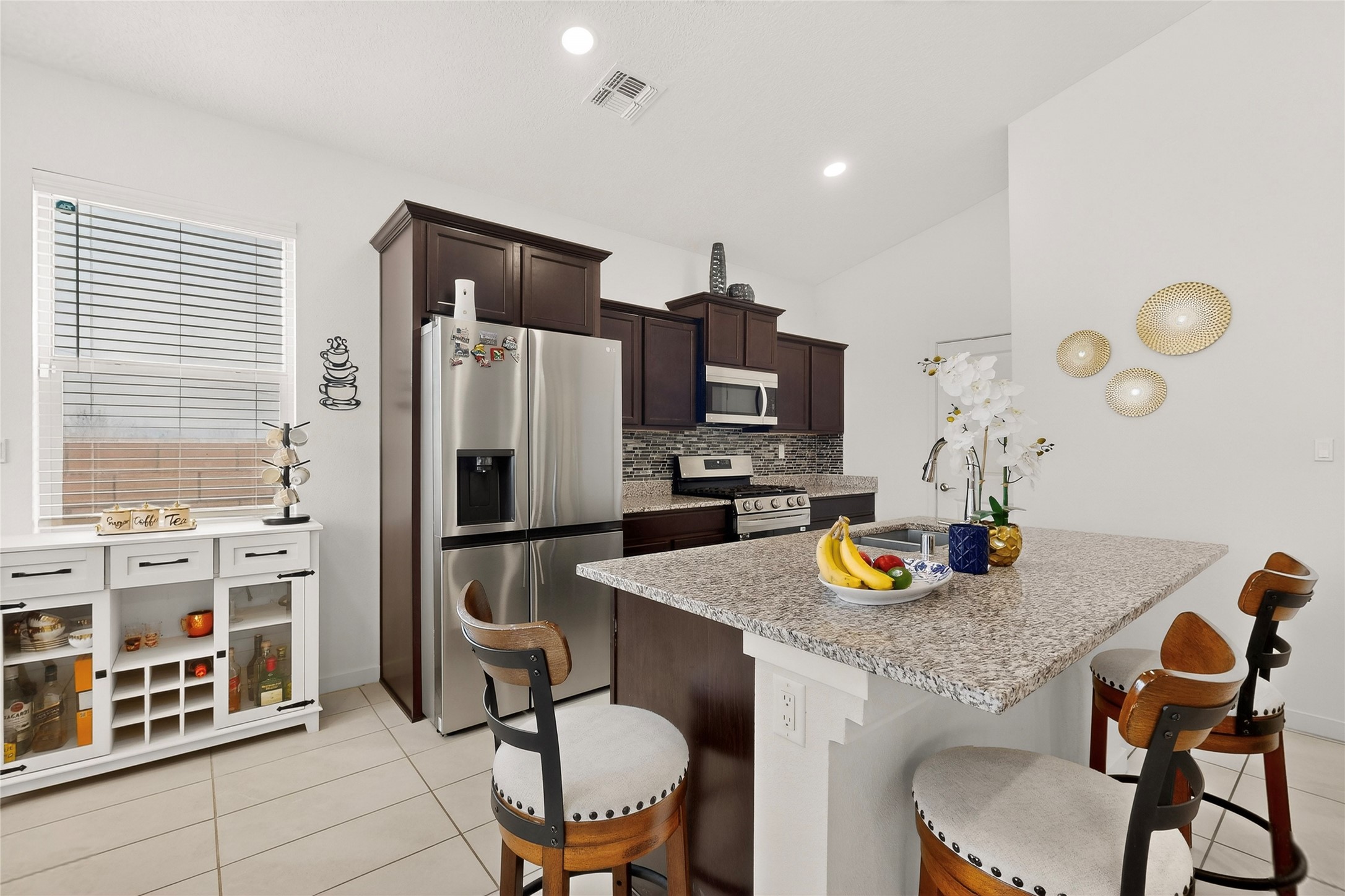 Almost-new, beautiful three-bedroom, two full-bath home featuring a gorgeous kitchen with an eye-catching backsplash and a spacious dining area perfect for gatherings. The primary suite offers a luxurious bathroom with both a soaking tub and a separate shower.This inviting home is tucked away on a cul-de-sac, making it an ideal family retreat. The living room showcases stunning stacked stone, ambient lighting, and a cozy fireplace, creating a warm and welcoming atmosphere. Enjoy a large laundry room and an open floor plan designed for modern living.Step outside to a concrete patio with gazebo and low-maintenance zero-scaped yard, perfect for relaxing or entertaining. Additional features include a tankless water heater and a finished garage.