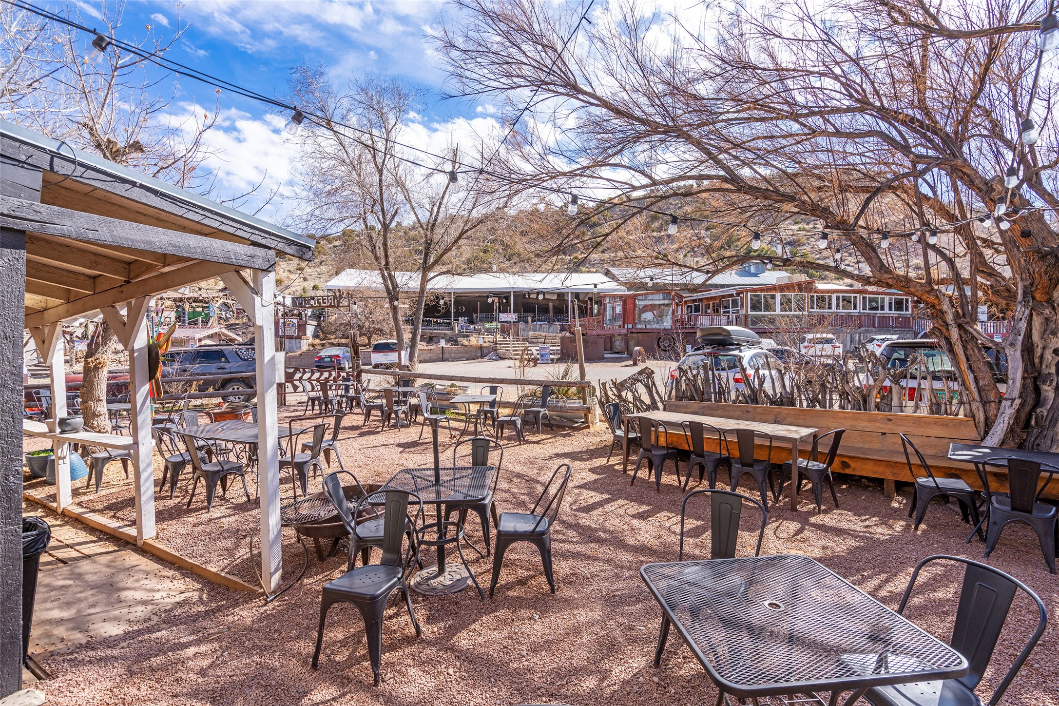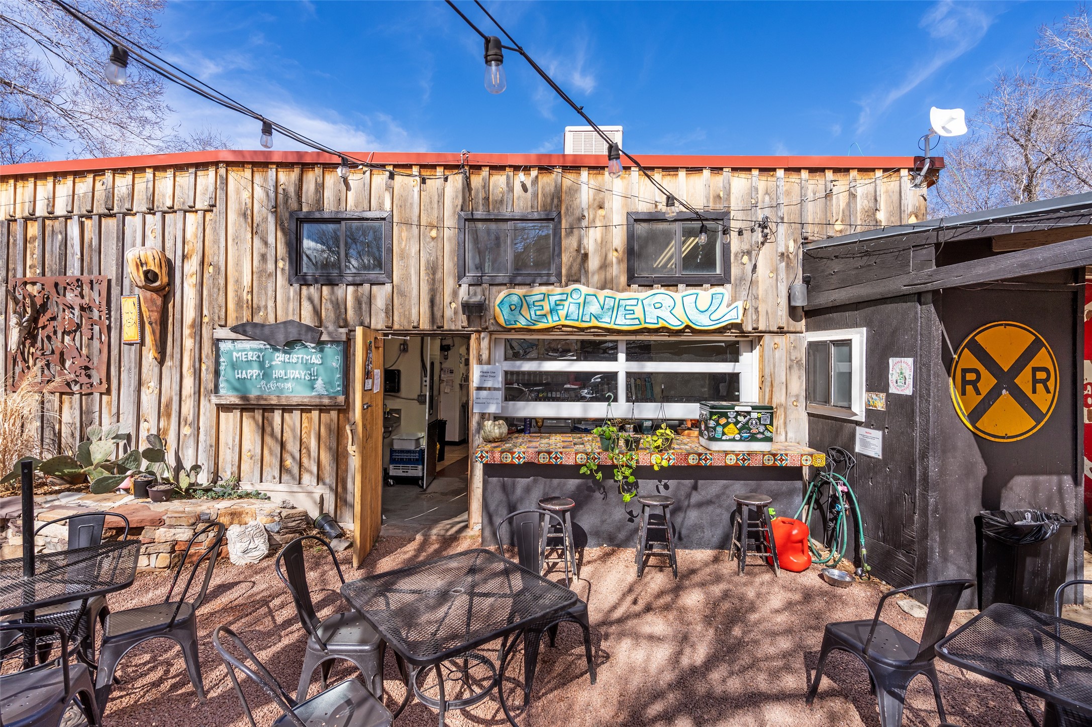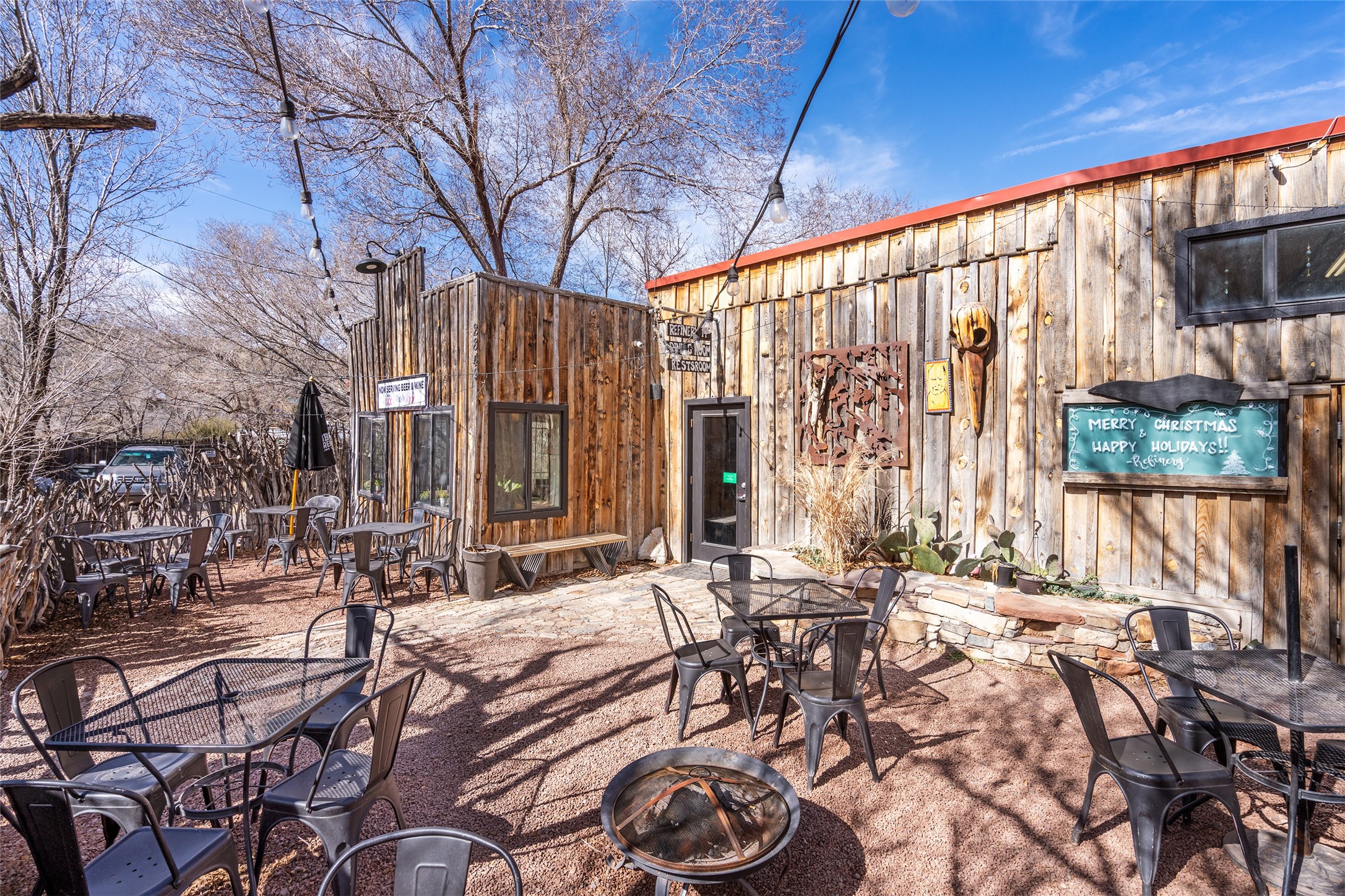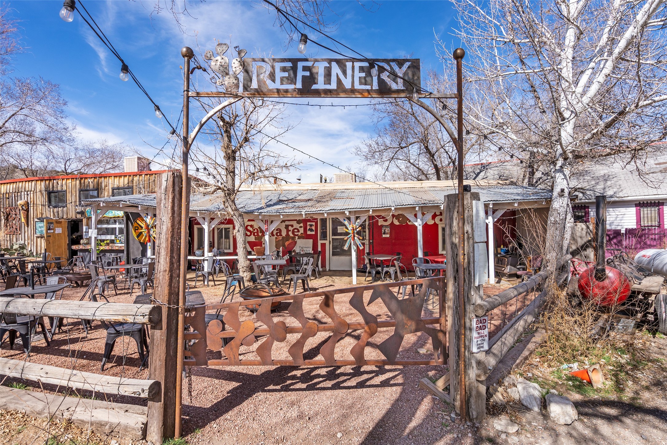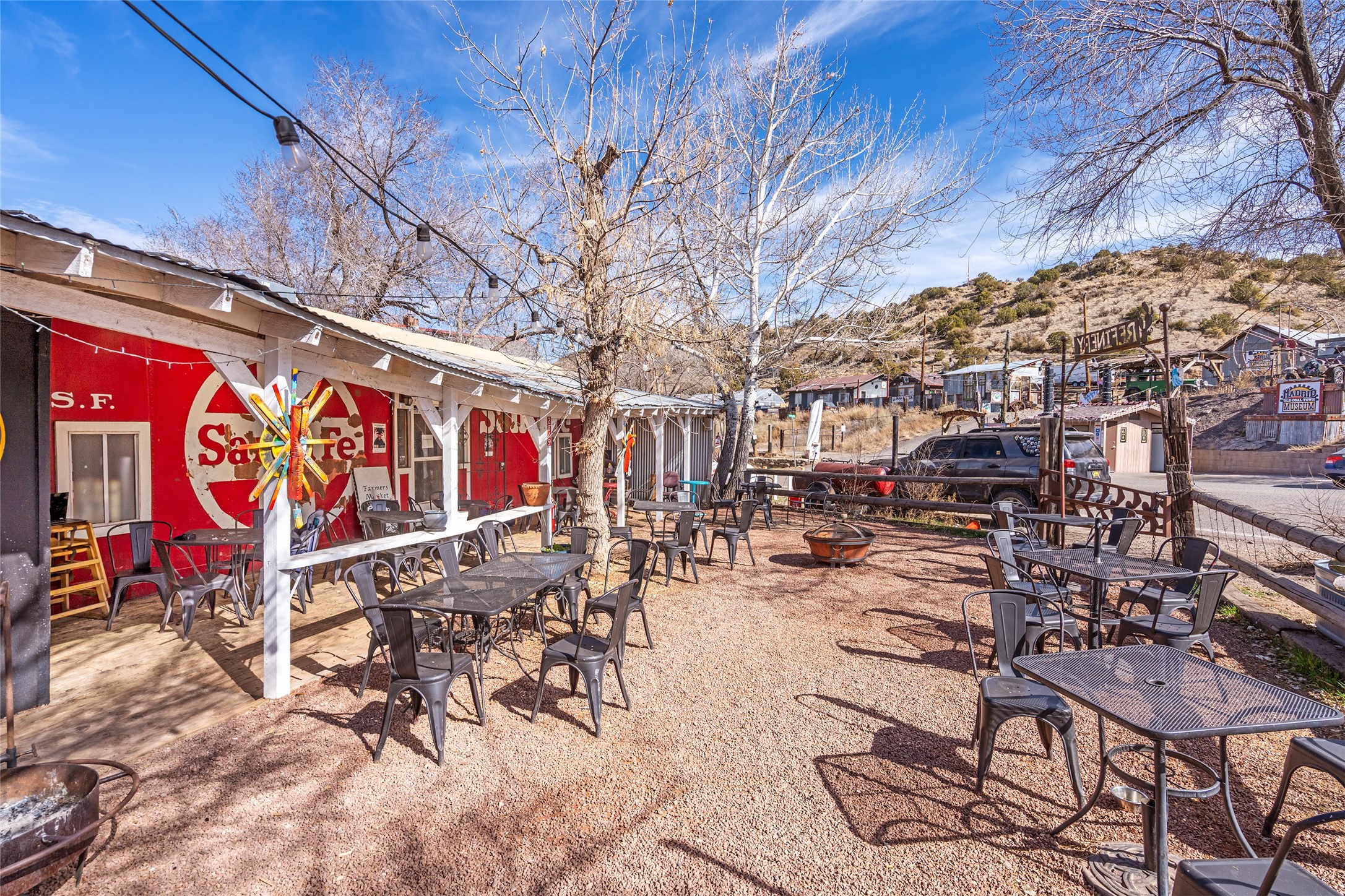 Commercially zoned property in the heart of the quintessential historic town of Madrid, perfectly located on vibrant Main Street in a highly desirable location to capture business from tourists and locals alike. Madrid is a fun and colorful community just outside of Santa Fe and is the most popular visitor stop along the National Scenic Byway, the Turquoise Trail, making it an ideal day trip linking Santa Fe and Albuquerque. The Trail attracts visitors from all over the world who come to experience the rich culture and history of this picturesque Western town. The property features a fully equipped commercial kitchen and is being sold fully furnished and equipped to operate a successful restaurant. It also boasts a state-of-the-art fire alarm system. Currently leased to The Refinery, offering a solid investment opportunity with a high cap rate and return. At one time, the property operated as two businesses, a retail space in the Santa Fe Railroad railcar situated on site; the railcar is now configured as additional indoor dining. The property offers both indoor and outdoor dining experiences, with the outdoor space overlooking the Madrid Museum and long serving as a dynamic setting for dining and live music. Designated parking is conveniently located along State Highway 14 directly in front of the restaurant.
