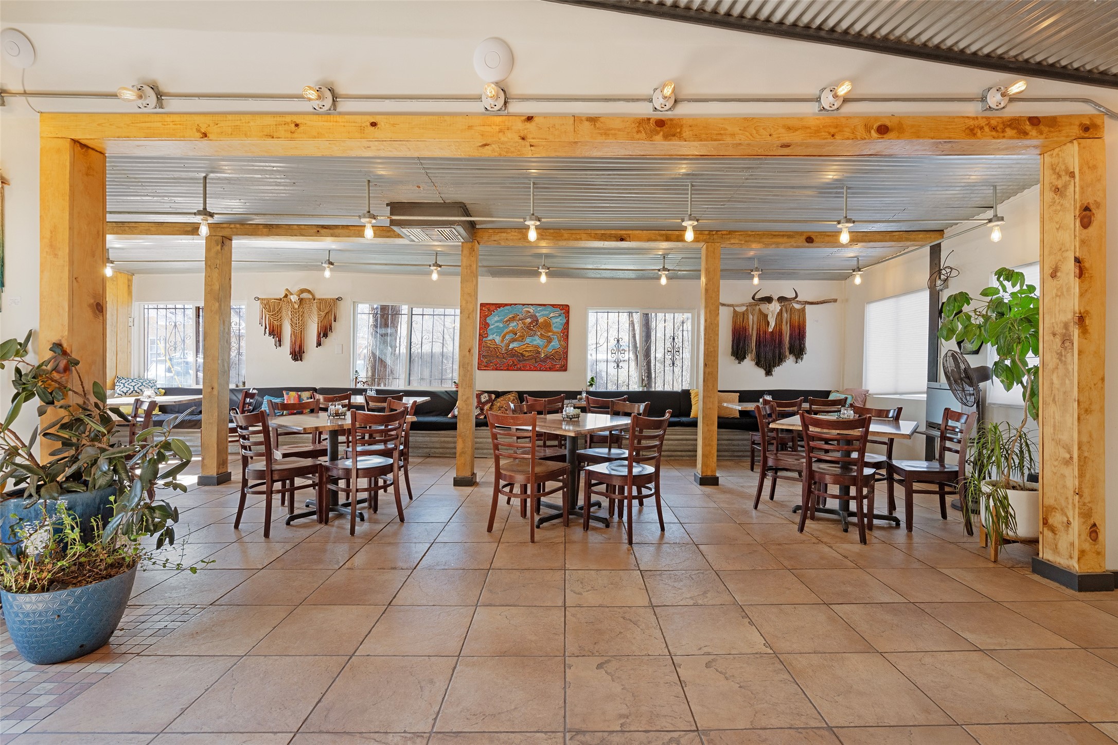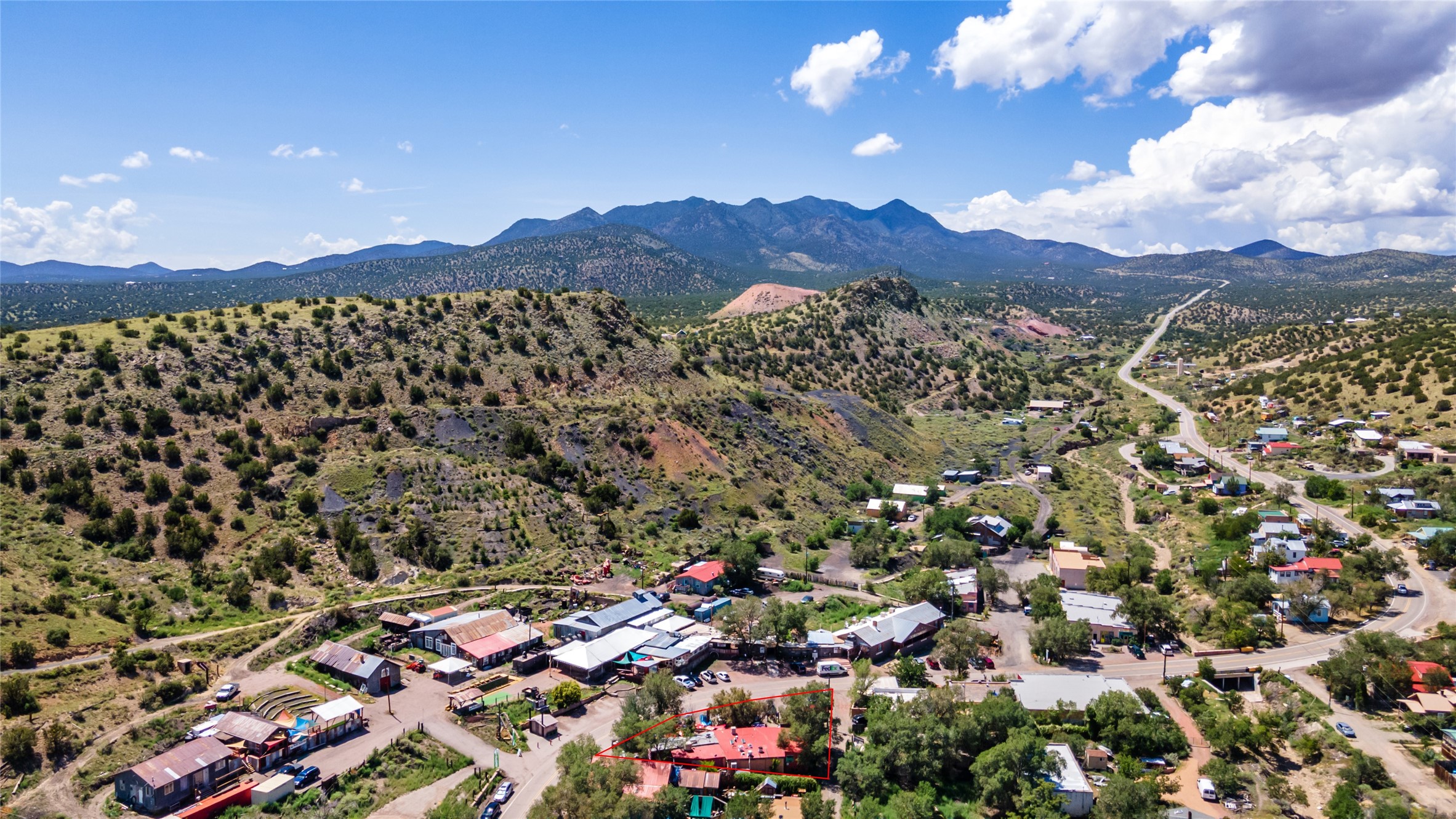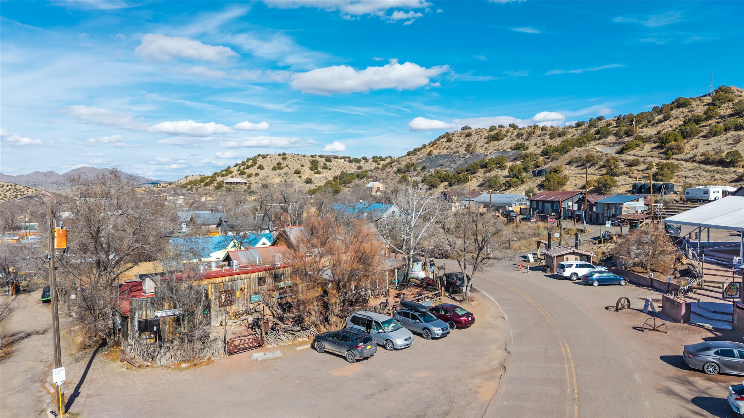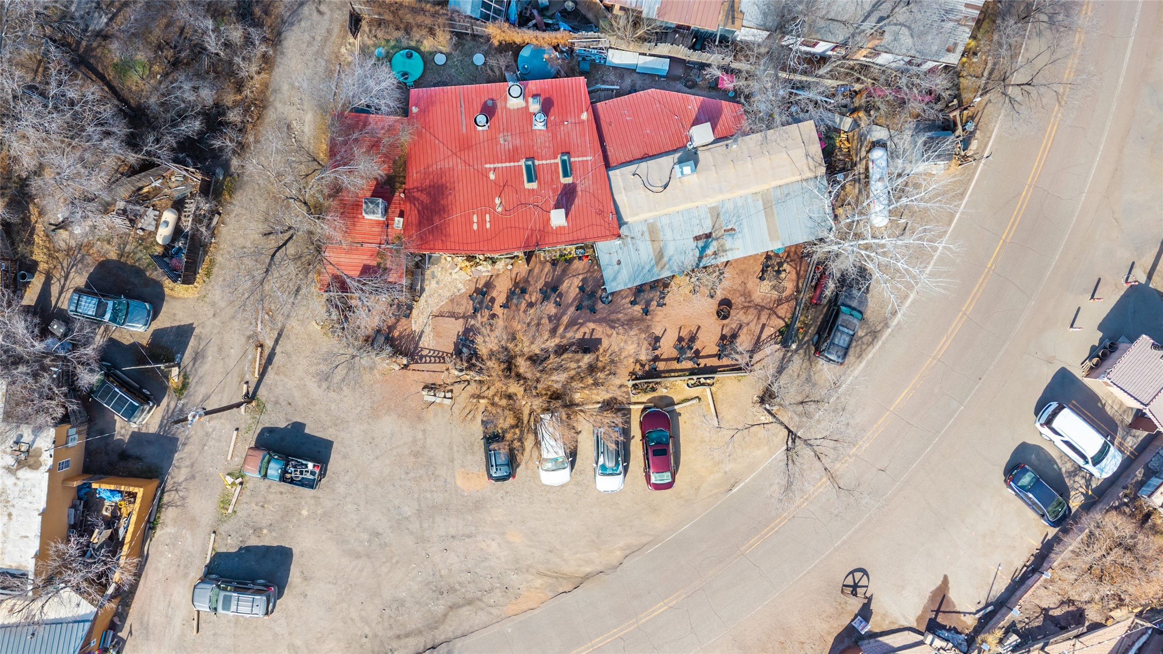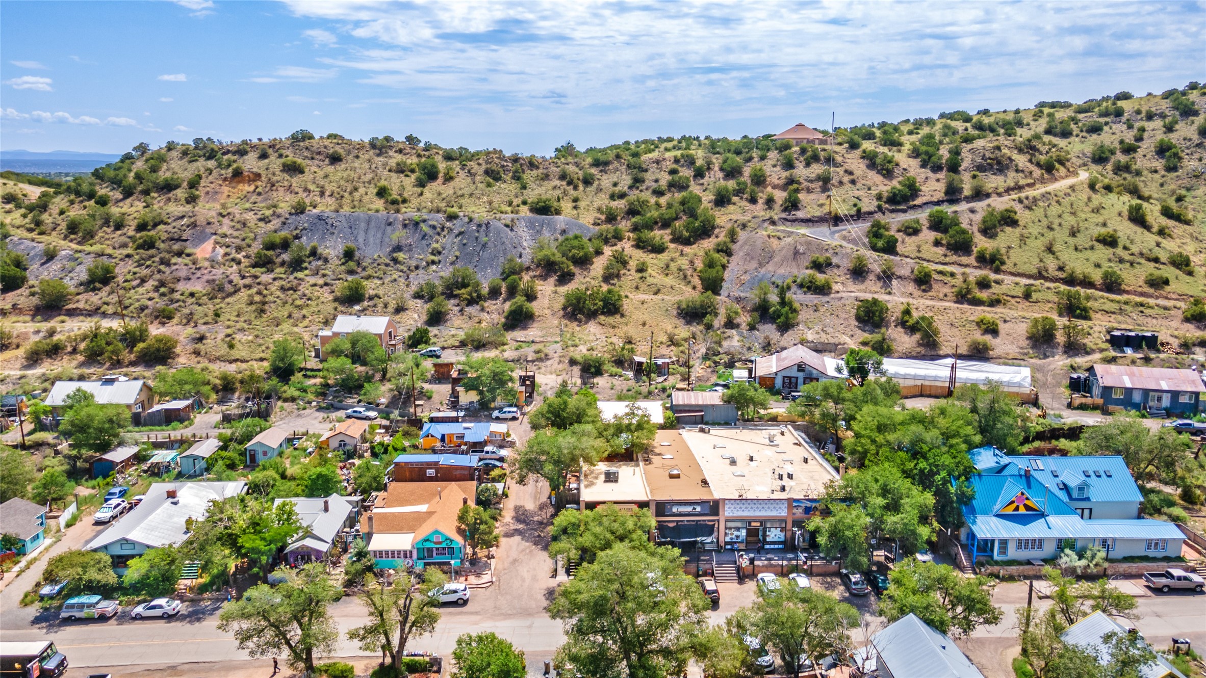 Commercially zoned property in the heart of the quintessential historic town of Madrid, perfectly located on vibrant Main Street in a highly desirable location to capture business from tourists and locals alike. Madrid is a fun and colorful community just outside of Santa Fe and is the most popular visitor stop along the National Scenic Byway, the Turquoise Trail, making it an ideal day trip linking Santa Fe and Albuquerque. The Trail attracts visitors from all over the world who come to experience the rich culture and history of this picturesque Western town. The property features a fully equipped commercial kitchen and is being sold fully furnished and equipped to operate a successful restaurant. It also boasts a state-of-the-art fire alarm system. Currently leased to The Refinery, offering a solid investment opportunity with a high cap rate and return. At one time, the property operated as two businesses, a retail space in the Santa Fe Railroad railcar situated on site; the railcar is now configured as additional indoor dining. The property offers both indoor and outdoor dining experiences, with the outdoor space overlooking the Madrid Museum and long serving as a dynamic setting for dining and live music. Designated parking is conveniently located along State Highway 14 directly in front of the restaurant.