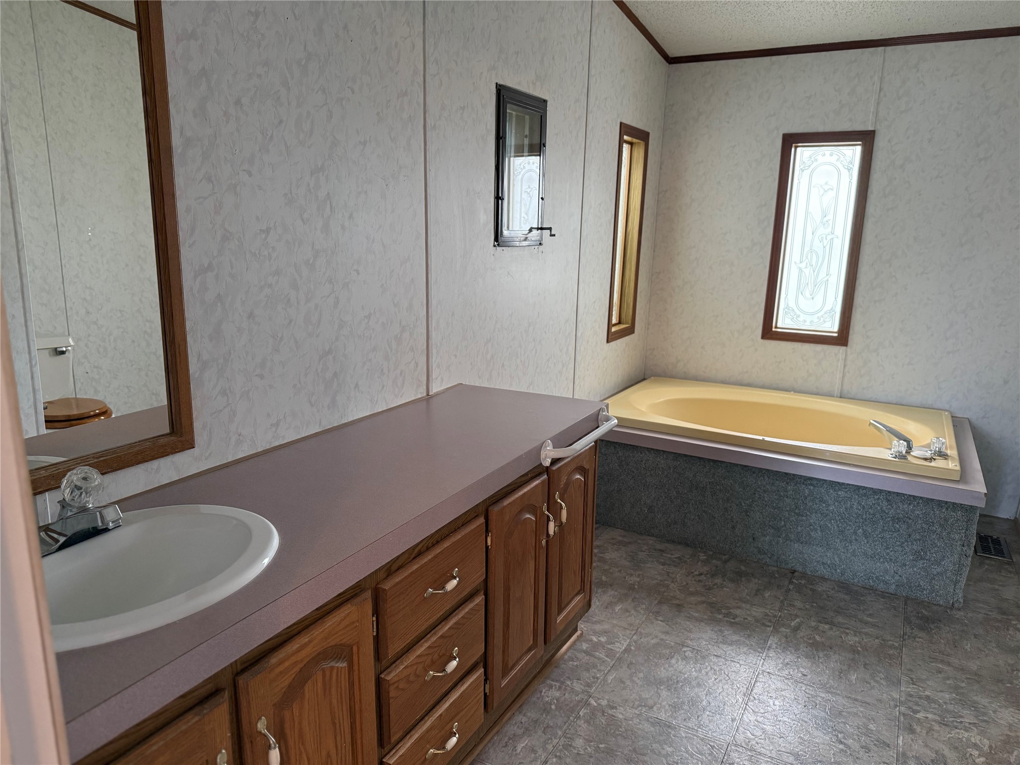 Spacious Ranch Style Manufactured home situated on a .61/acre lot! Covered deck entry welcomes you in to the bright living room, eat-in kitchen with an abundance of wood cabinets, den with fireplace and lovely built-in bookcases. The main bedroom with ensuite bath is a perfect space to unwind, relax, and rejuvenate. The addition of the large den offers many possibilities for family gatherings. The oversized 2 car garage provides plenty of room for those vehicles and added storage. This home has a new roof! The rock and chain link fencing nicely secure this property located close to everything!
