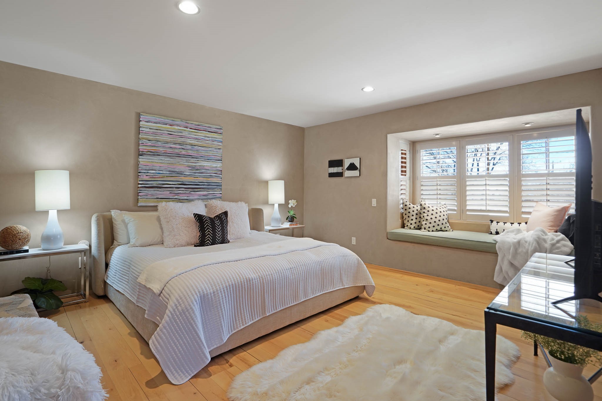 Perfectly located just steps from Kaune's Neighborhood Market and within walking distance of many of Santa Fe's most beloved destinations, this stylish and light-filled condo blends modern comfort with timeless Southwest charm.A private gated front courtyard shaded by graceful Aspen trees creates a peaceful entry and a perfect place to enjoy morning coffee or unwind in the evening. Inside, the main level opens to an airy living space with soaring ceilings, expansive windows, and American clay walls that beautifully reflect the natural light. A gas log fireplace adds warmth and ambiance, while the chef's kitchen features high-end appliances, a spacious island ideal for entertaining, a generous pantry, and a separate laundry room for added convenience. Also on the first floor, a guest bedroom and full bathroom provide comfort and privacy for visitors, while a stylish powder room sits just off the entry. A graceful staircase leads to the upper level, where a bright landing offers a perfect space for a home office or cozy reading nook. The primary suite serves as a tranquil retreat, complete with dual closets, a sleek ensuite bathroom, and beautiful views. Designed for easy living and low maintenance, this home is an ideal lock-and-leave property. Additional features include radiant heat, central air conditioning, and a two-car garage for year-round comfort. Zoned RAC for multi-purpose use, the property offers exceptional flexibility in one of Santa Fe's most desirable locations. Schedule your showing today and experience the very best of Santa Fe living.