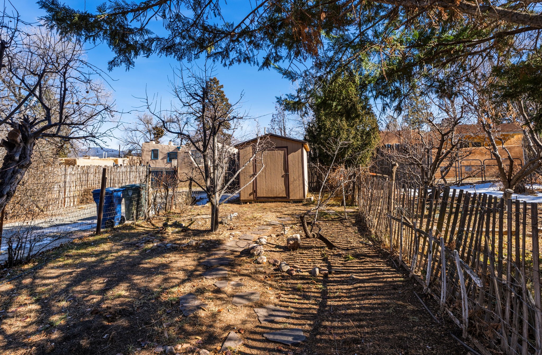 South Capitol Historic Neighborhood - check. Apple Orchard with a private well - check. Charming 1920's Santa Fe Pueblo-Style Home - check.Step into a piece of history with this stunningly unique 1920's Pueblo-style property, gracefully embodying the essence of Santa Fe's architectural heritage. Featuring dark wood trim and doors, this residence exudes warmth and character that invites you to experience the charm of bygone days. As you enter, you will be captivated by the elegant hardwood flooring and special one of a kind touches like a hand-painted mural with figurines that adorn the wall of the bathroom, showcasing the artistry of the era. The inviting wooden vigas and fireplaces add a touch of ambiance, creating cozy gathering spots for family and friends. Throughout the home, you will find distinctive built-in wooden bookcases and shelving, perfect for displaying your literary treasures or personal mementos. Each bedroom is illuminated by antique light sconces that transport you to another era, extending its historical charm.This property also boasts a large apple orchard, offering opportunities for outdoor enjoyment and a touch of rural tranquility all within the heart of Santa Fe. The presence of a private well enhances its uniqueness, making it one of the more remarkable properties in South Capitol. This historic home is not just a residence; it is a sanctuary that captures the spirit of Santa Fe living, inviting you to appreciate its rich history and culture that is Santa Fe. Lastly, this home is located within the highly sought-after Wood Gormley school district, making it an ideal choice for those who appreciate community spirit. Be sure to book your private showing today!