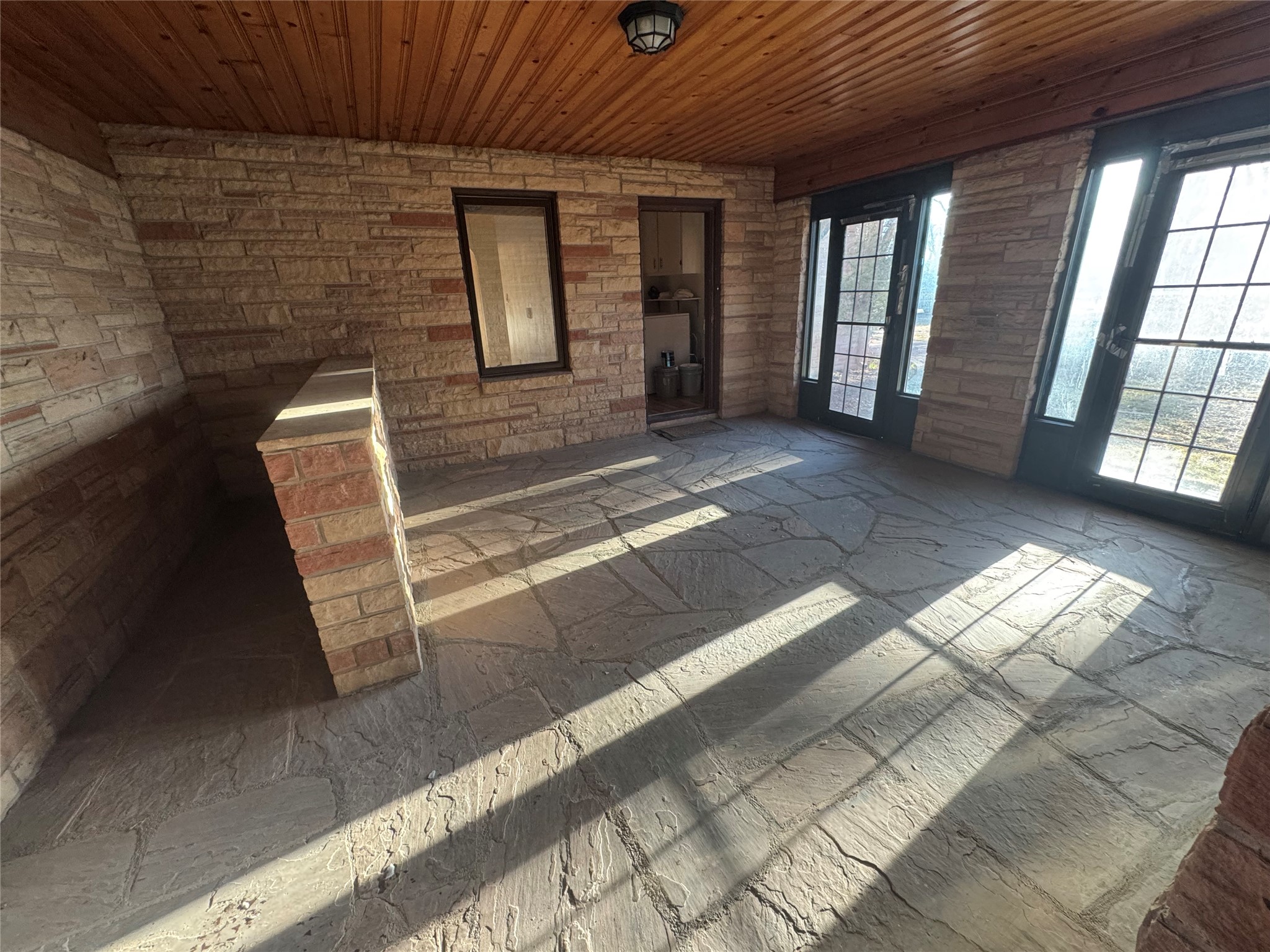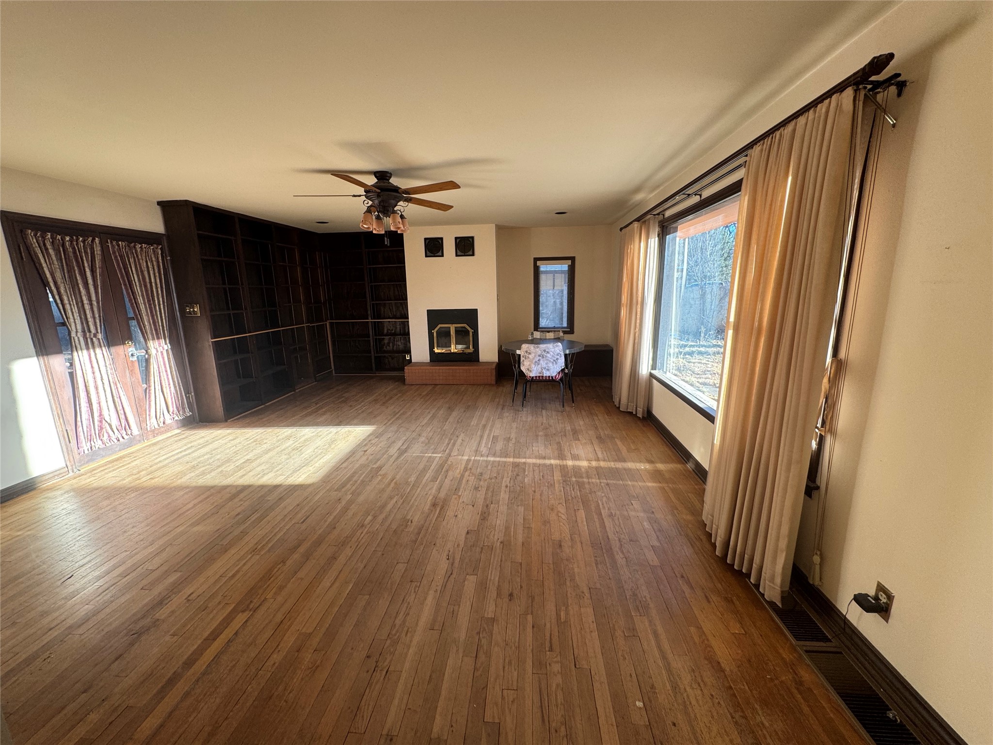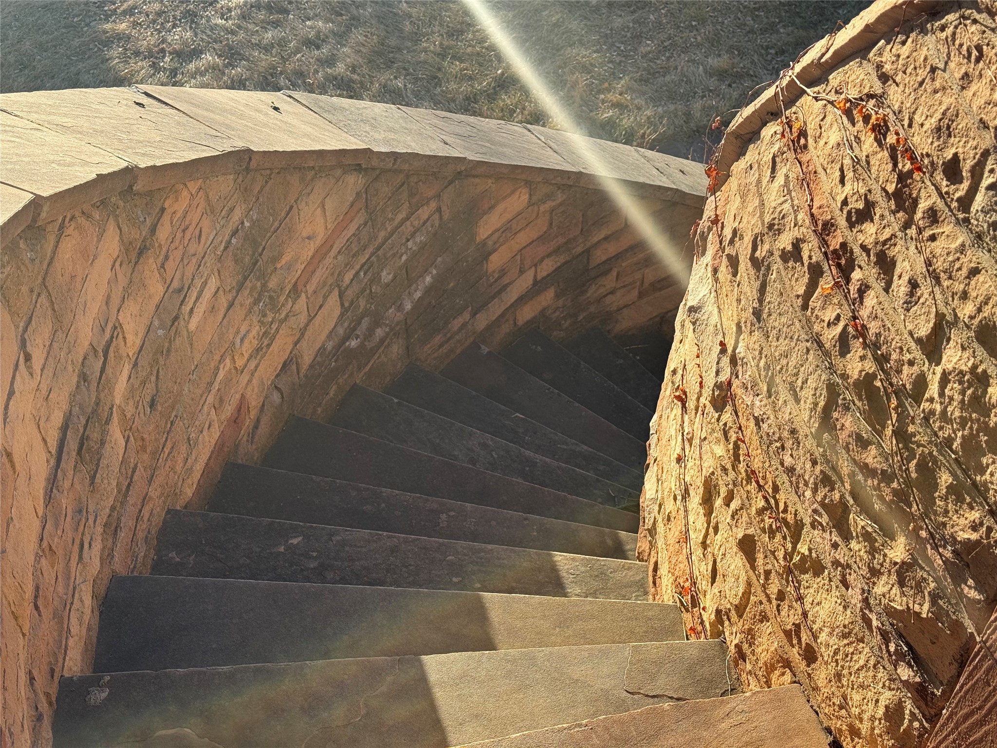 Welcome to this mid-century home with timeless architecture and comfort. Exterior is stone with accents of brick. Large front and back yard with big mature trees and semicircle entry and exit driveway. Inviting and spacious living room with fireplace, wall bookshelf and large picture window facing the west. From living room enter into a green or sun room facing the east and backyard. A dining room sized to host gatherings or a growing family, near a lovely kitchen. Four large bedrooms with great closet space in each. Three bedrooms are upstairs with two bedrooms sharing an enclosed window patio with door to stunning outdoor spiral stone and concrete staircase to the front yard. 2 bathrooms, one on main floor and one upstairs. A large breezeway room with beautiful wood ceilings attached to a one car garage. Well taken care of hardwood floors throughout majority of the home, large windows in each room allowing natural light from east to west. Basement allows for great storage, den or entertainment room. This house sits in an established and quiet neighborhood. City water, well water on property and surface water rights. Come take a look!