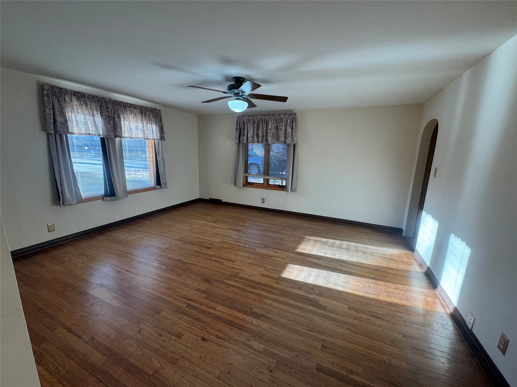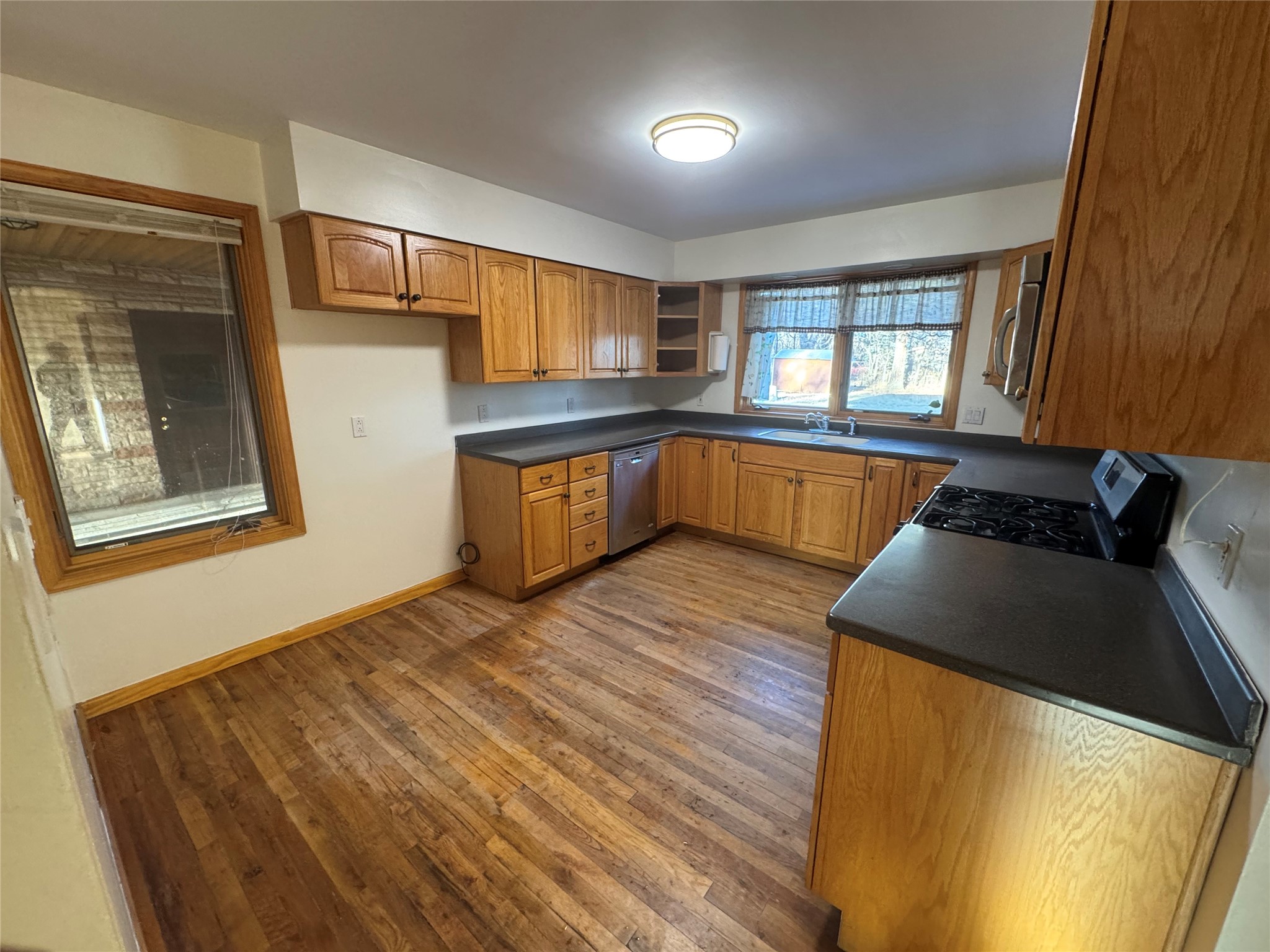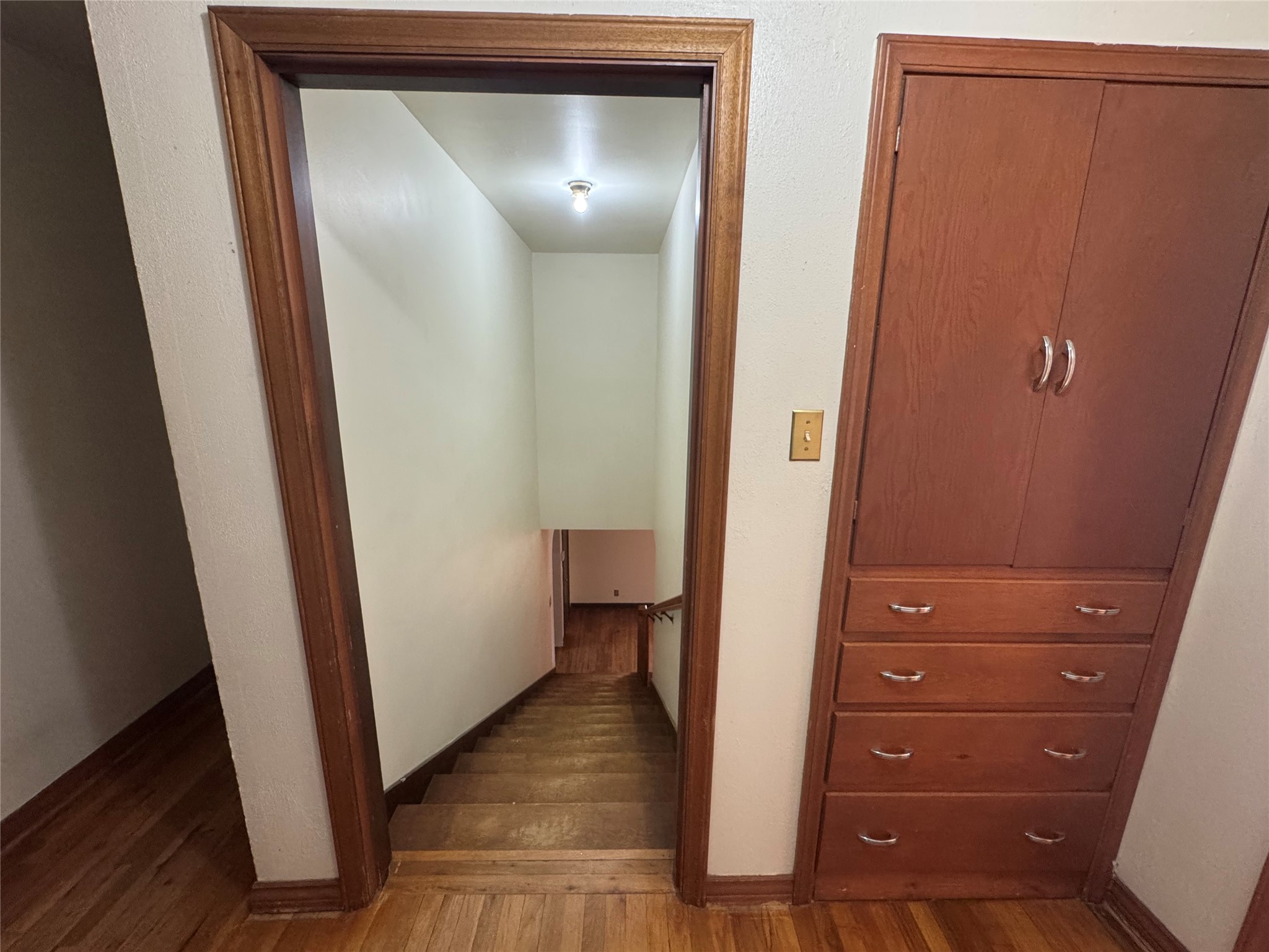 Welcome to this mid-century home with timeless architecture and comfort. Exterior is stone with accents of brick. Large front and back yard with big mature trees and semicircle entry and exit driveway. Inviting and spacious living room with fireplace, wall bookshelf and large picture window facing the west. From living room enter into a green or sun room facing the east and backyard. A dining room sized to host gatherings or a growing family, near a lovely kitchen. Four large bedrooms with great closet space in each. Three bedrooms are upstairs with two bedrooms sharing an enclosed window patio with door to stunning outdoor spiral stone and concrete staircase to the front yard. 2 bathrooms, one on main floor and one upstairs. A large breezeway room with beautiful wood ceilings attached to a one car garage. Well taken care of hardwood floors throughout majority of the home, large windows in each room allowing natural light from east to west. Basement allows for great storage, den or entertainment room. This house sits in an established and quiet neighborhood. City water, well water on property and surface water rights. Come take a look!