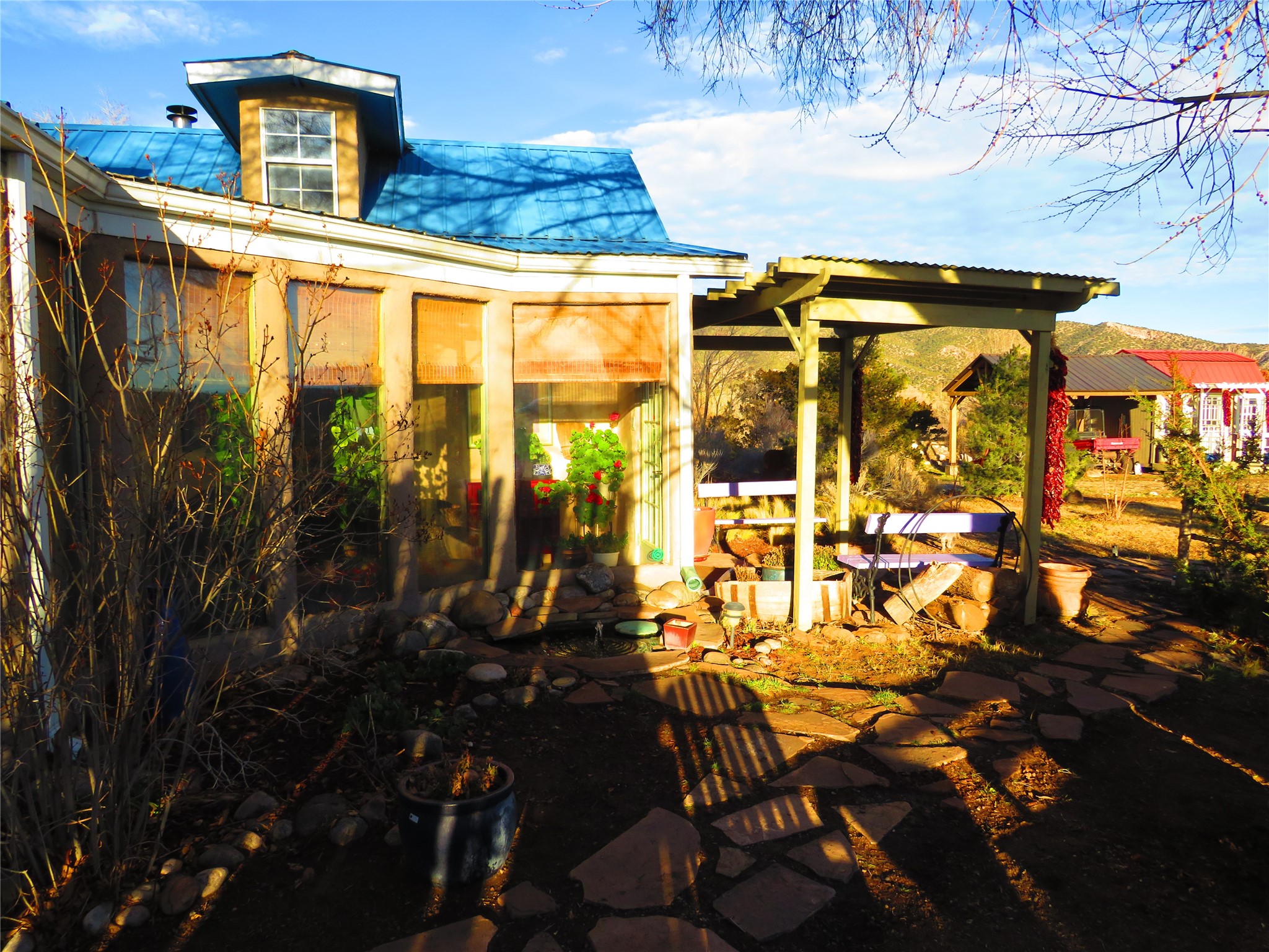 This is quintessential Northern New Mexico. The location, on the outskirts of the historic village of El Rito, boasts creek frontage and easy access to beautiful forest land just down the road. The home was originally built in 1880 and was updated and restored in 2006. There are wonderful architectural details everywhere with lots of light, spacious rooms, and ample storage. The floors are tile and wood with extra tile included in the sale. There is even a cellar, though it is currently floored over with no access. The outdoor spaces offer stunning views, privacy, and a pond/fountain. There is a 660 sq ft studio/shop space with 220 service but no heat right now. Adjacent are some old sheds that could be put to use in many ways. The chain link dog fencing will be removed. The guesthouse is charming and currently has a composting toilet but can be hooked up to the septic system. Closer to the river there is a two horse barn with a pipe fenced turnout.The location is rural with dark night skies, quiet, privacy, and wildlife. El Rito offers a medical/dental clinic, community library, local elementary school, annual art tours, and the famous Farolito Restaurant. Please do not attempt to enter the property without a confirmed appointment. The dogs are dangerous.